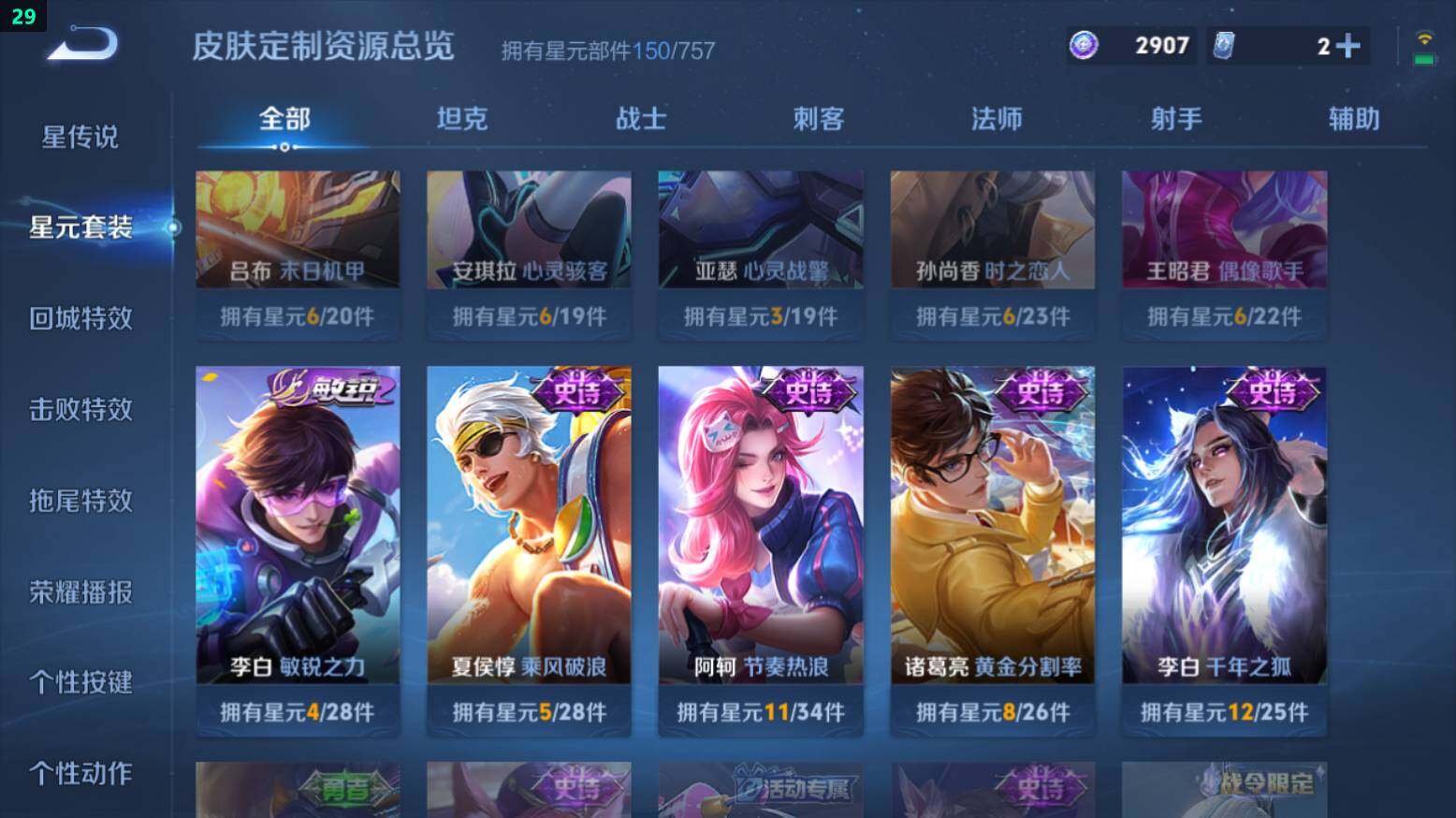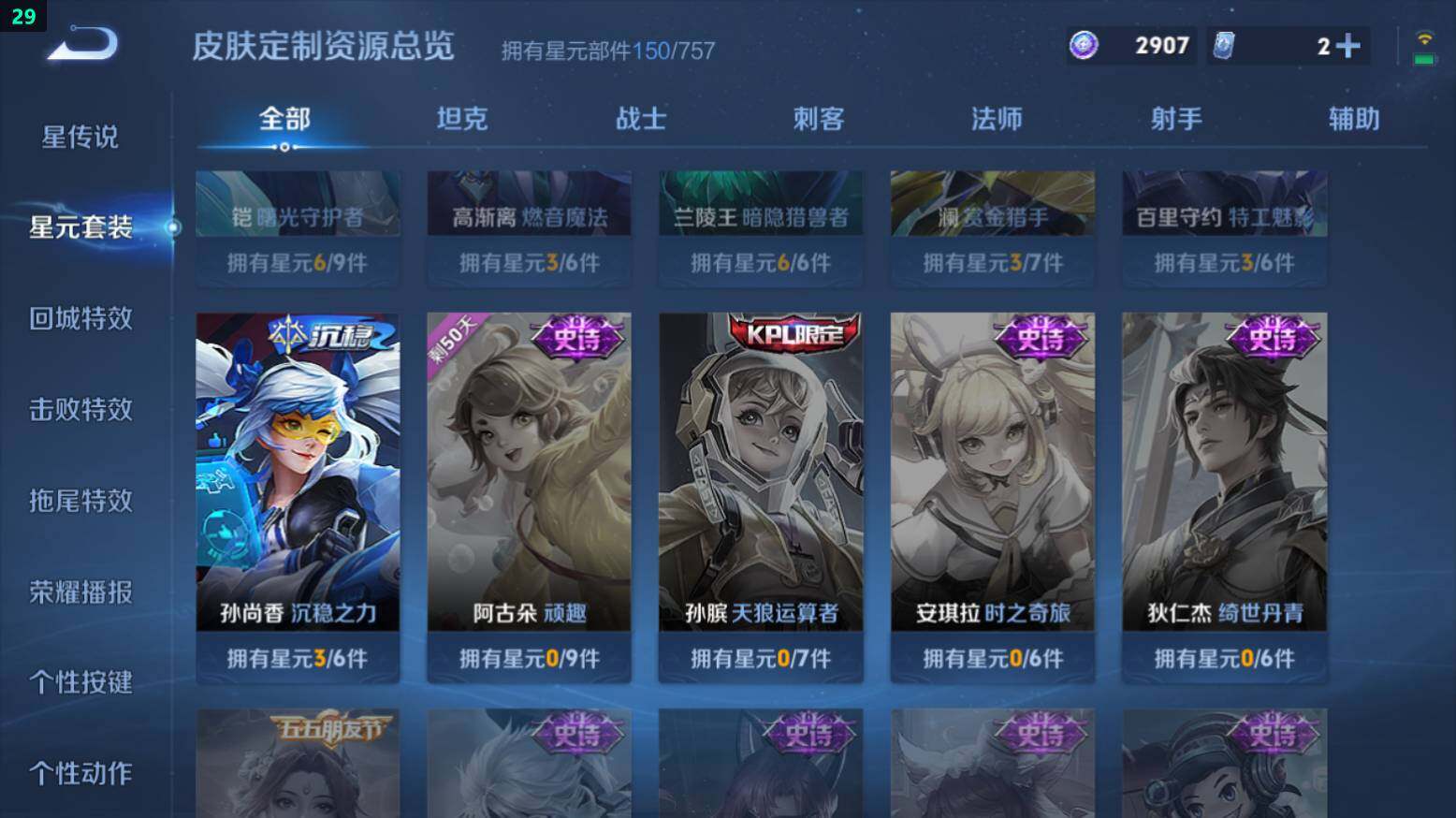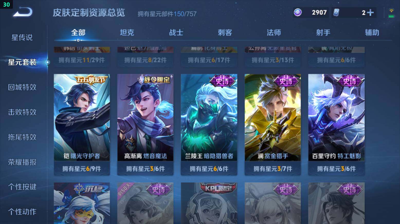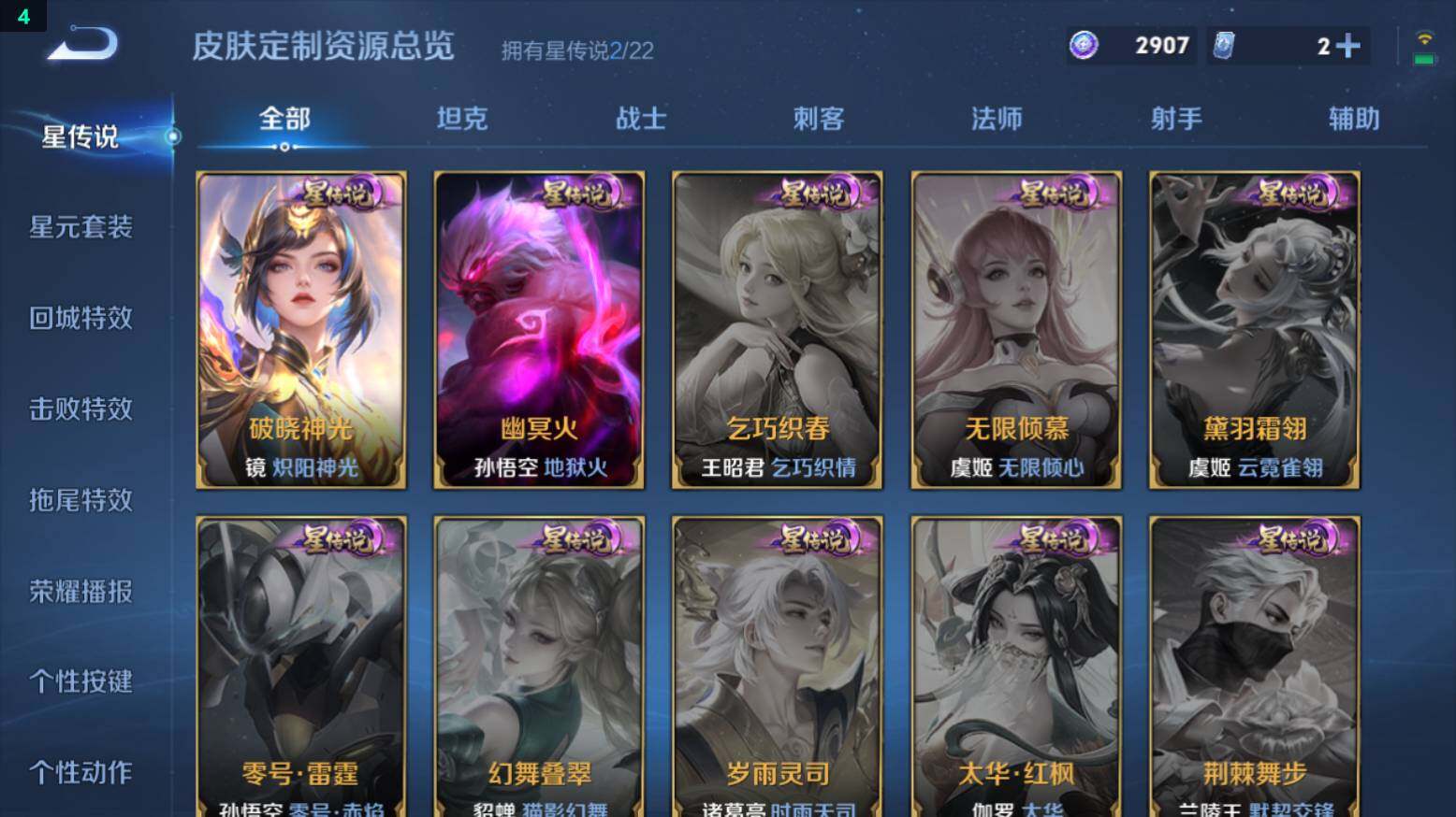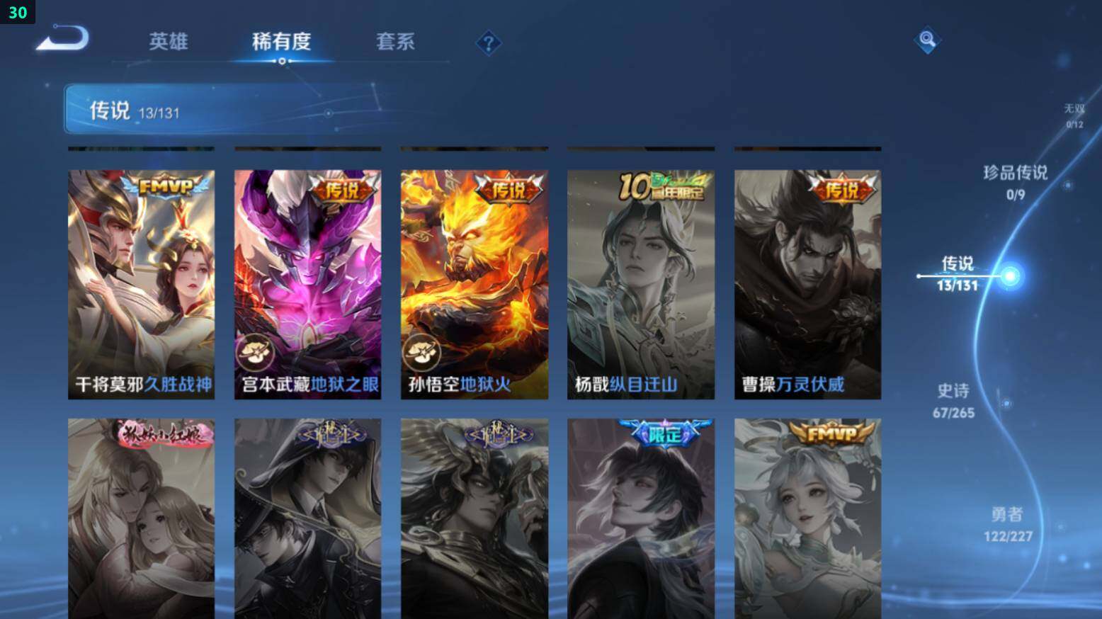 安卓Q-V6-最强王者段位-127英雄-250皮肤-1典藏皮肤-13传说-67史诗-8按键-2星传说