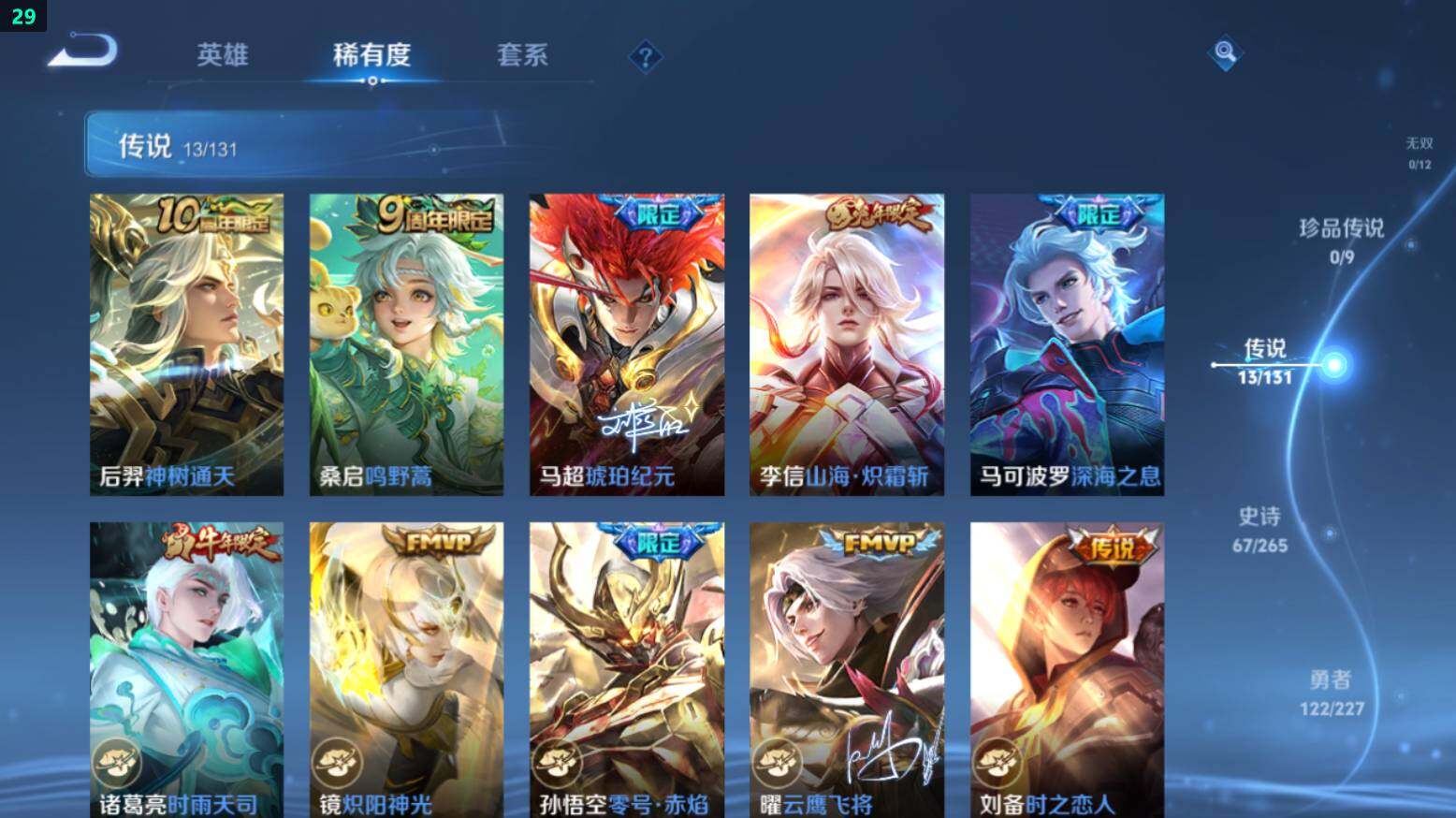 安卓Q-V6-最强王者段位-127英雄-250皮肤-1典藏皮肤-13传说-67