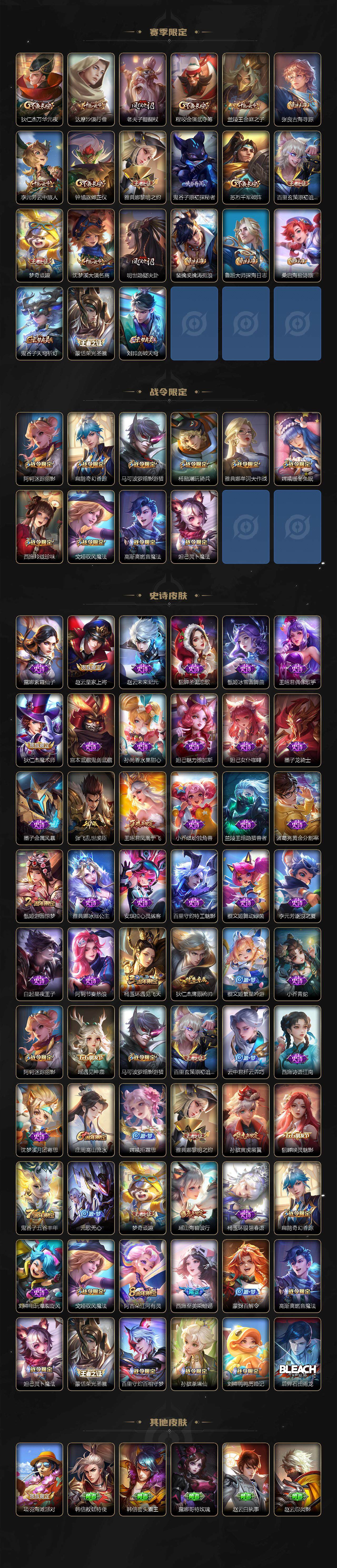 苹果Q-V7-尊贵铂金III段位-126英雄-204皮肤-2典藏皮肤-1无双-1珍品传说-10传说-59史诗