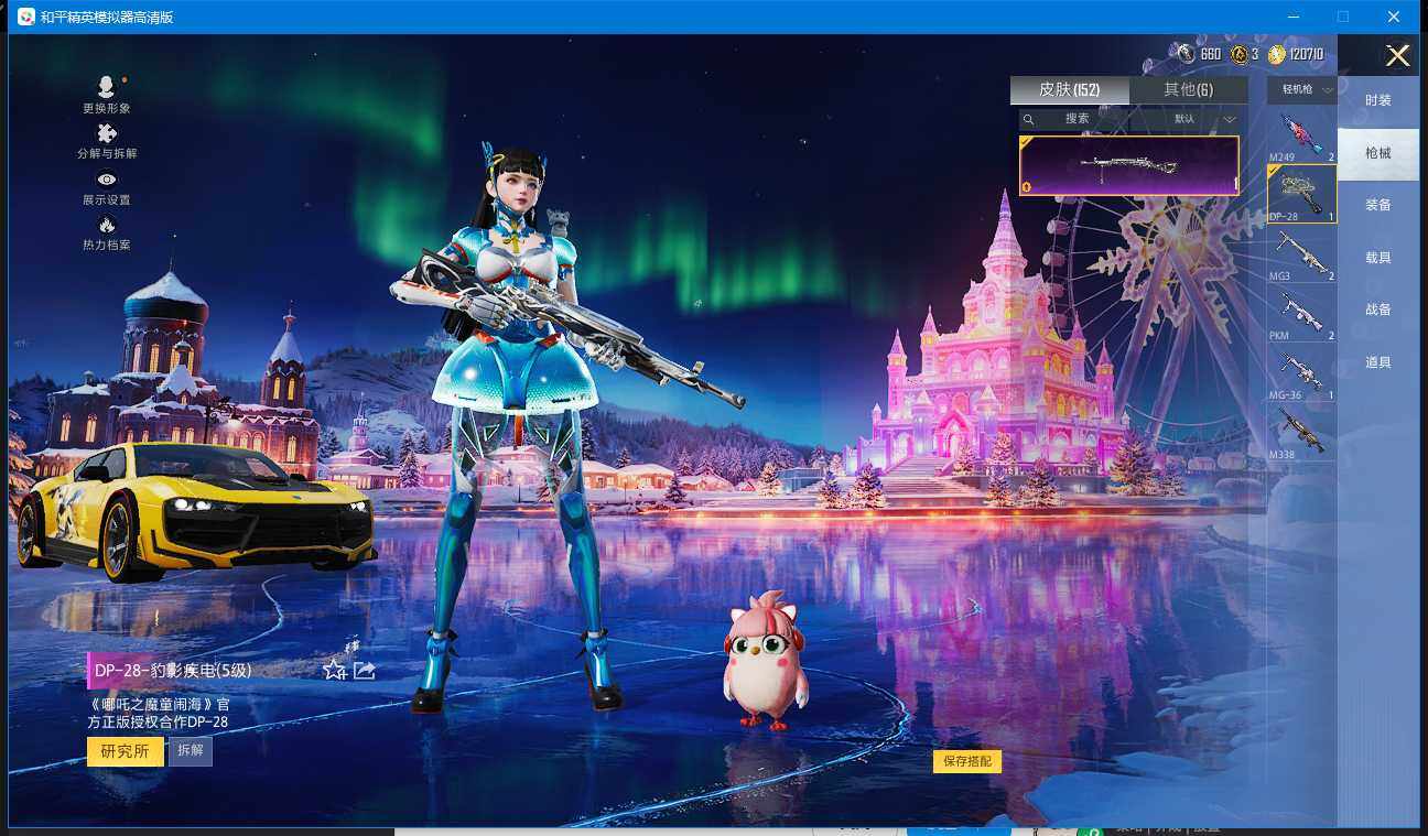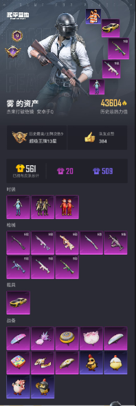 实名: 可修改 时装数: 117 载具数: 1 枪械数: 151 战备数: 114 热门装扮: 猪猪侠,创世·救赎,异瞳寒姬 载具: 永恒黄蜂 稀有枪皮: AKM-绿萝繁花(五级),SCAR-L-锦绣绵绵(五级),GROZA-镜光银凌(五级),AUG-暖羊咩咩(五级),UMP45-量子极限(五级),Kar98K-巳巳如意(五级),Mk14-甜梦熊击(五级),DP-28-豹影疾电(五级)