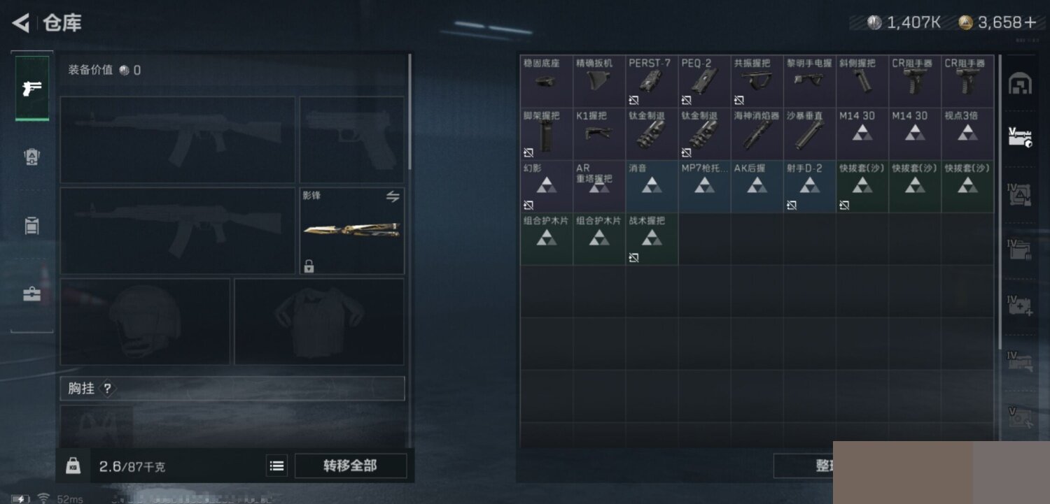 烽火地带段位: 铂金 全面战场段位: 军士长 哈夫币: 1407000