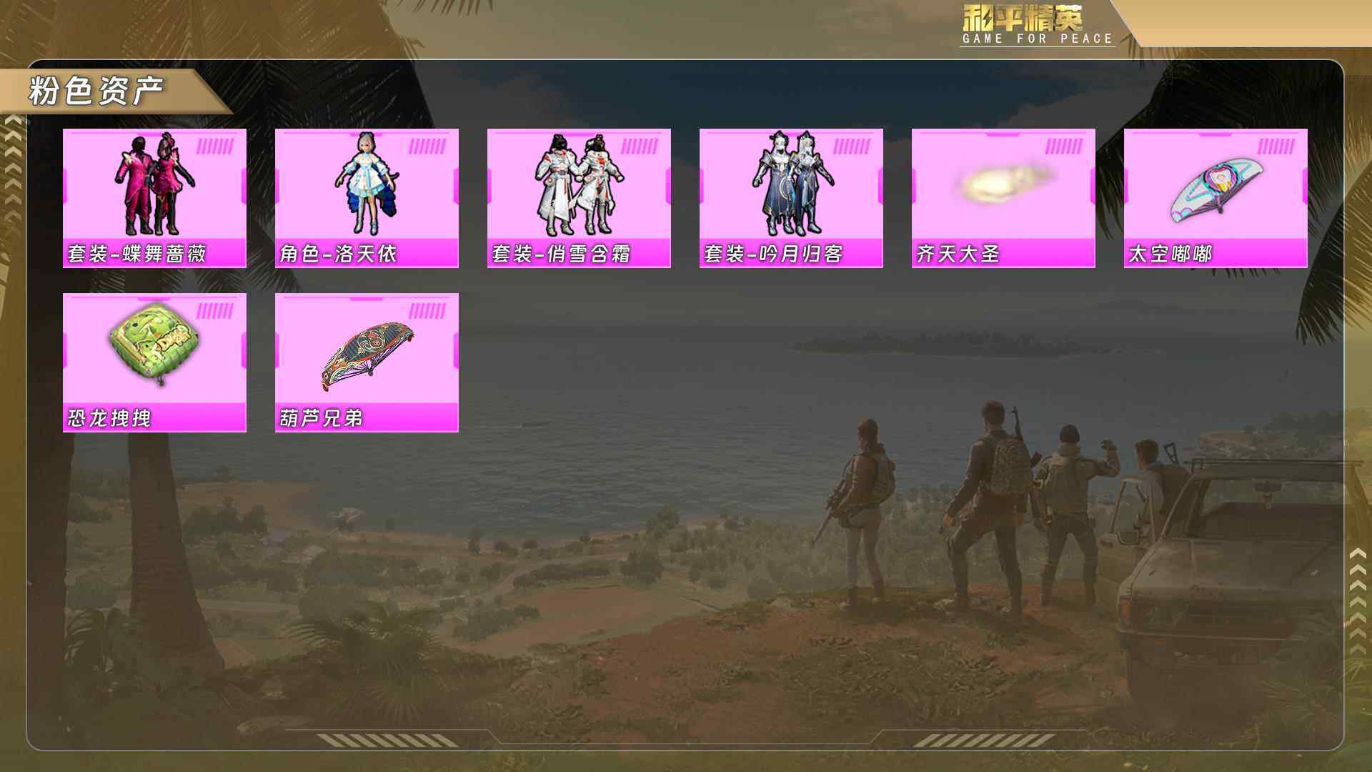 (4粉套)蝶舞蔷薇/洛天依/俏雪含霜/吟月归客 没战神框 HP4232-1粉色飞行器-25654热力值-6王牌印记-89套装-84枪皮