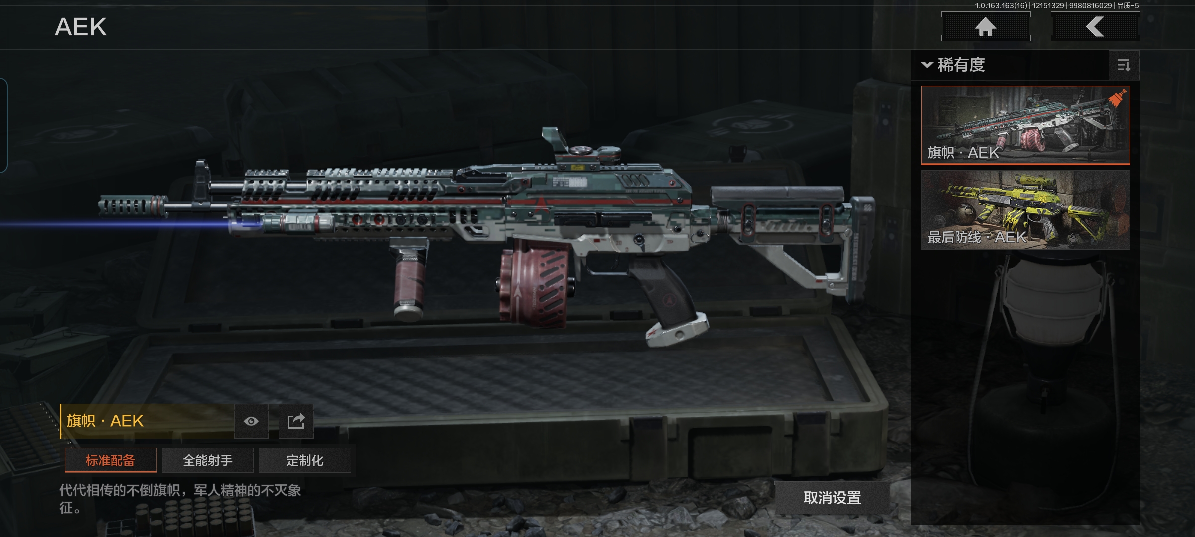 MWT4022【暗区传说】安卓Q-等级30-仓库价值686.2k-科恩币214k-【枪皮】 旗帜·AEK 浮鳞影青·QBZ192 【近战武器】 野战折刀 开山刀 工兵铲