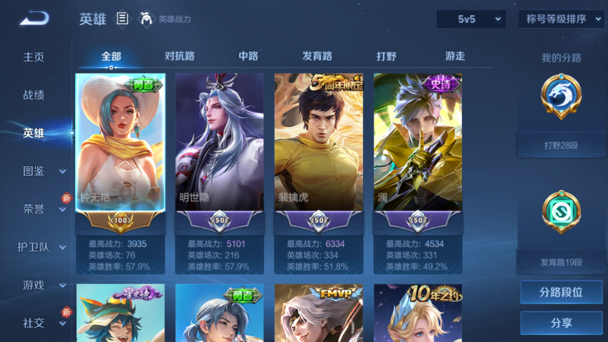 韩信典藏+炽阳镜+云鹰曜皮肤数量164印记总数8V5绝世王者