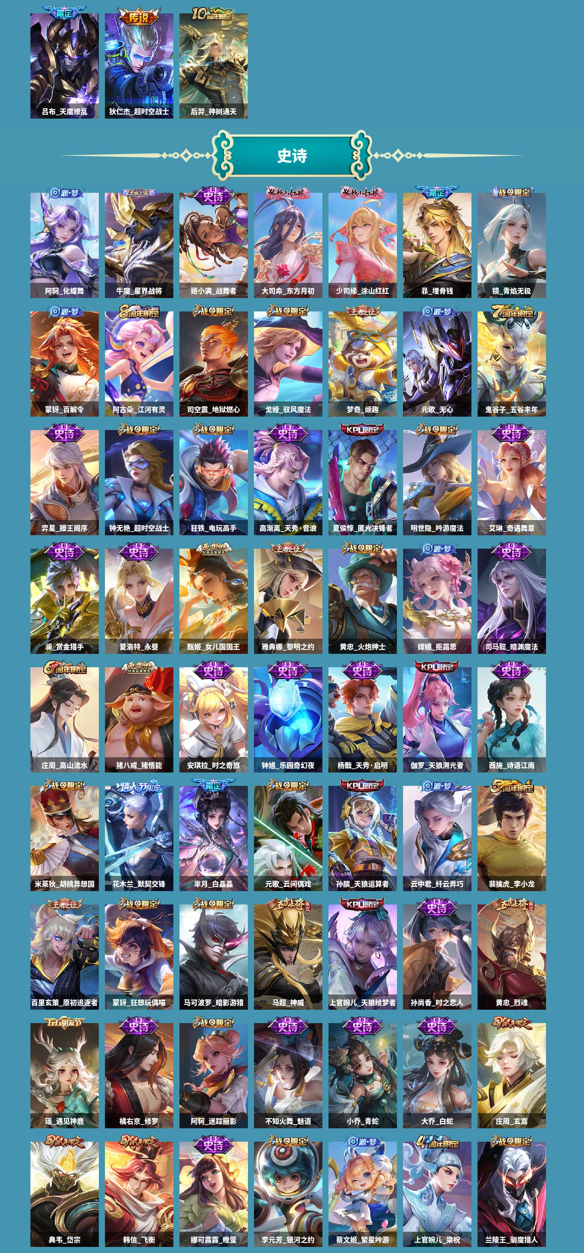韩信3典藏/白虎志/霜北刀/诗剑行/补天皮肤数量406印记总
