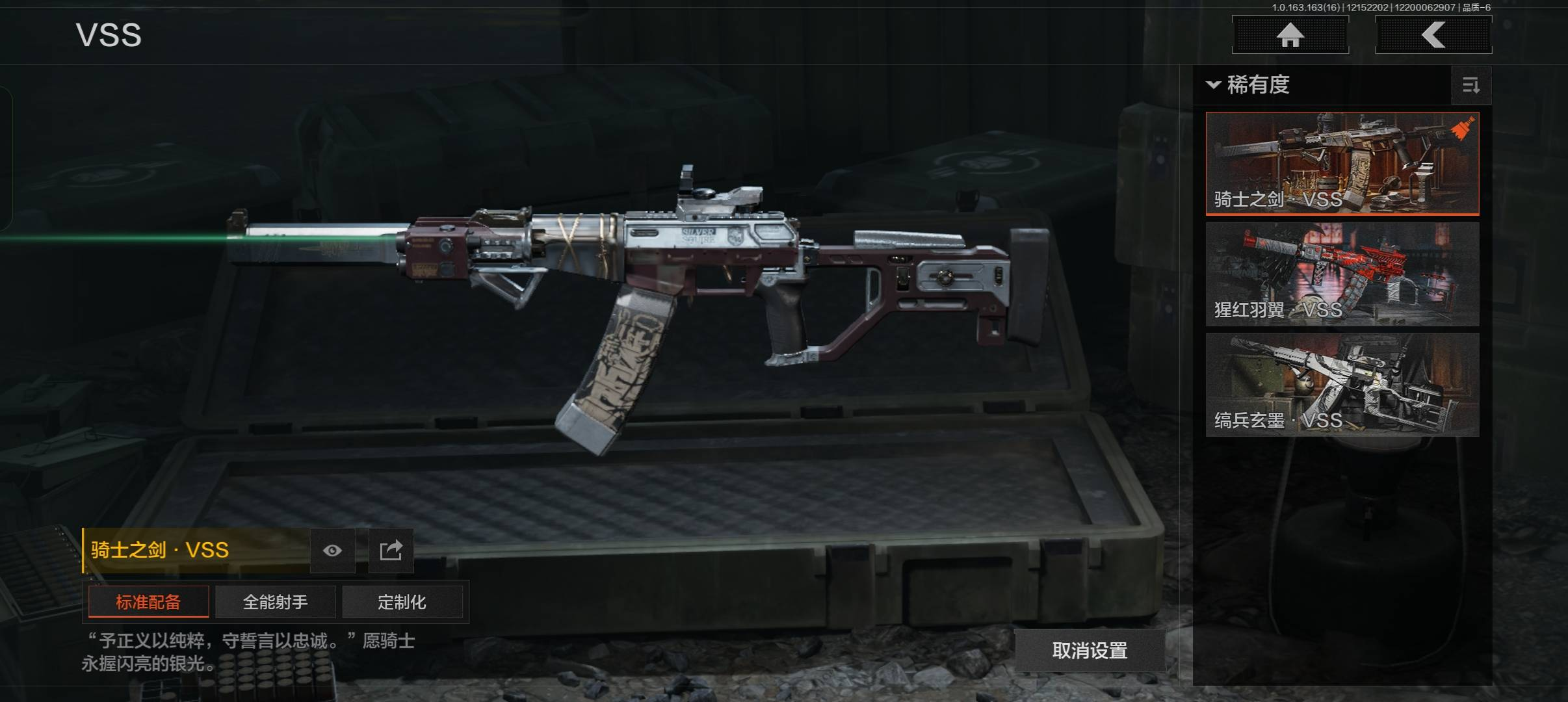 【金色枪皮】棱光裂变·QBU191,骑士之剑·VSS,利齿风暴·MPX,浮鳞影青·QBZ192