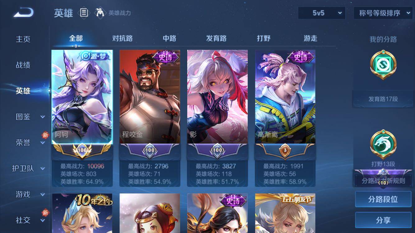 【小国标阿轲】V4-最强王者段位-120英雄-87皮肤-1典藏皮肤-2传说-3