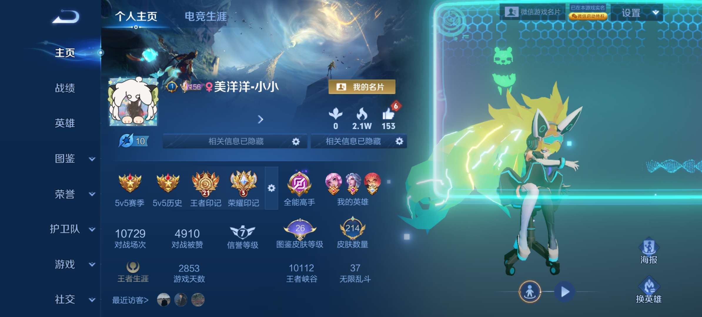 安卓微信-6传说-214皮肤-125英雄-荣耀黄金-C3WGJW号 贵族6 星元皮肤3 传说皮肤6 史诗皮肤52 皮肤数量214 皮肤价值:131024