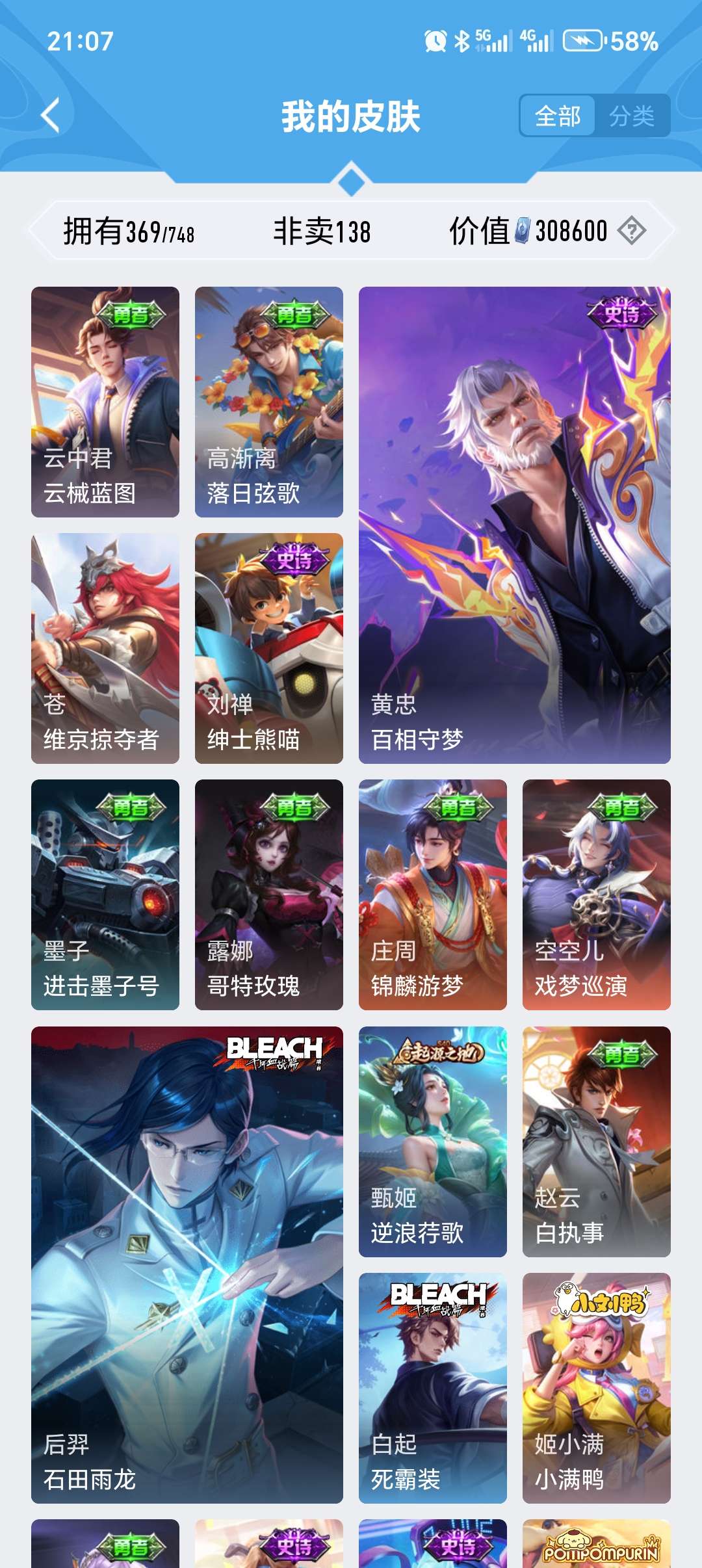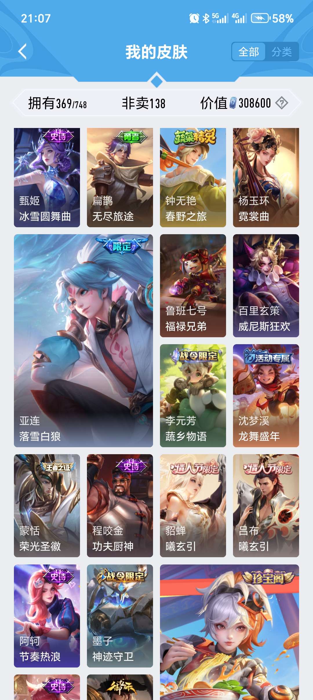 安卓微信-3典藏-25传说-369皮肤-127英雄-至尊星耀-v9便宜处理关羽全皮肤