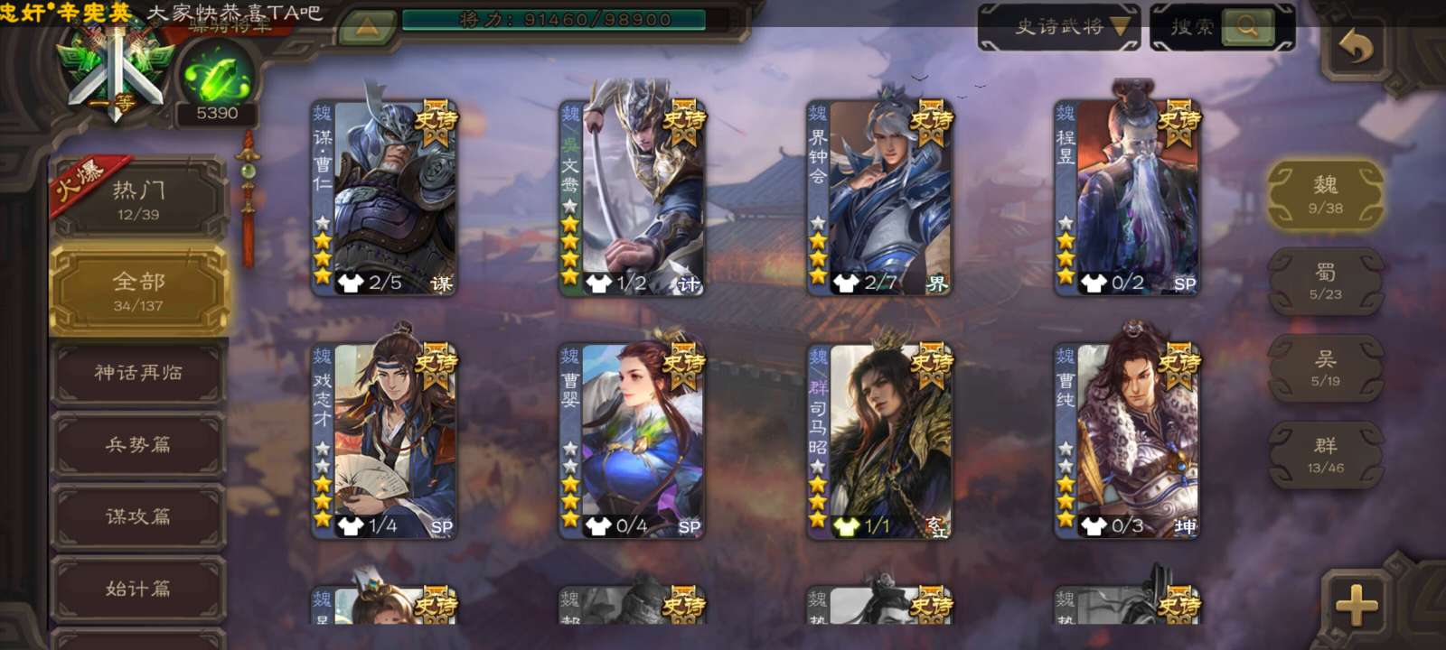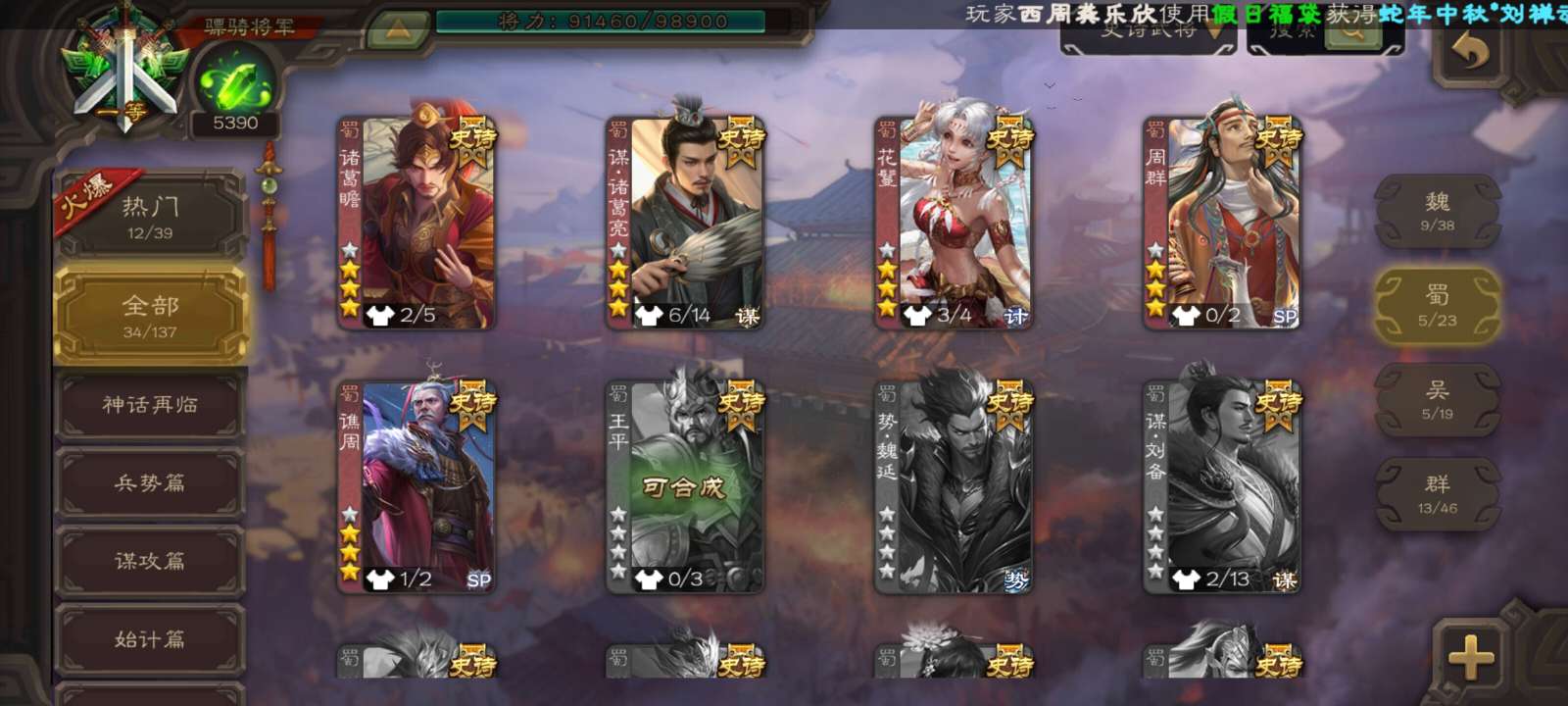 史诗武将数量:
