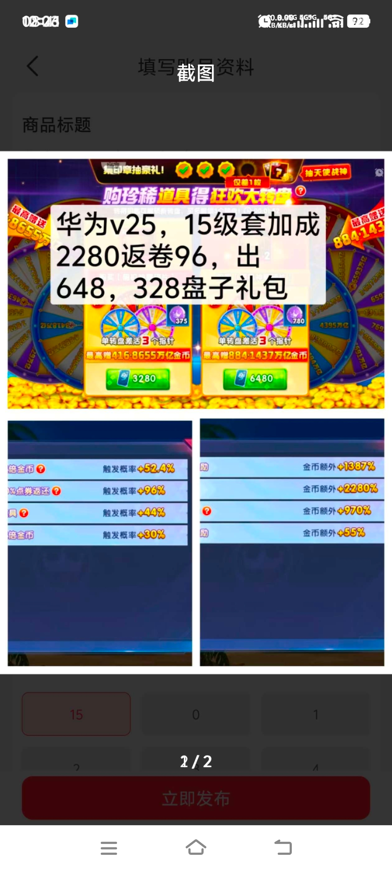 华为顶配15套V25加成2301/2280双反96/58出自转盘子,礼包分上分可回。