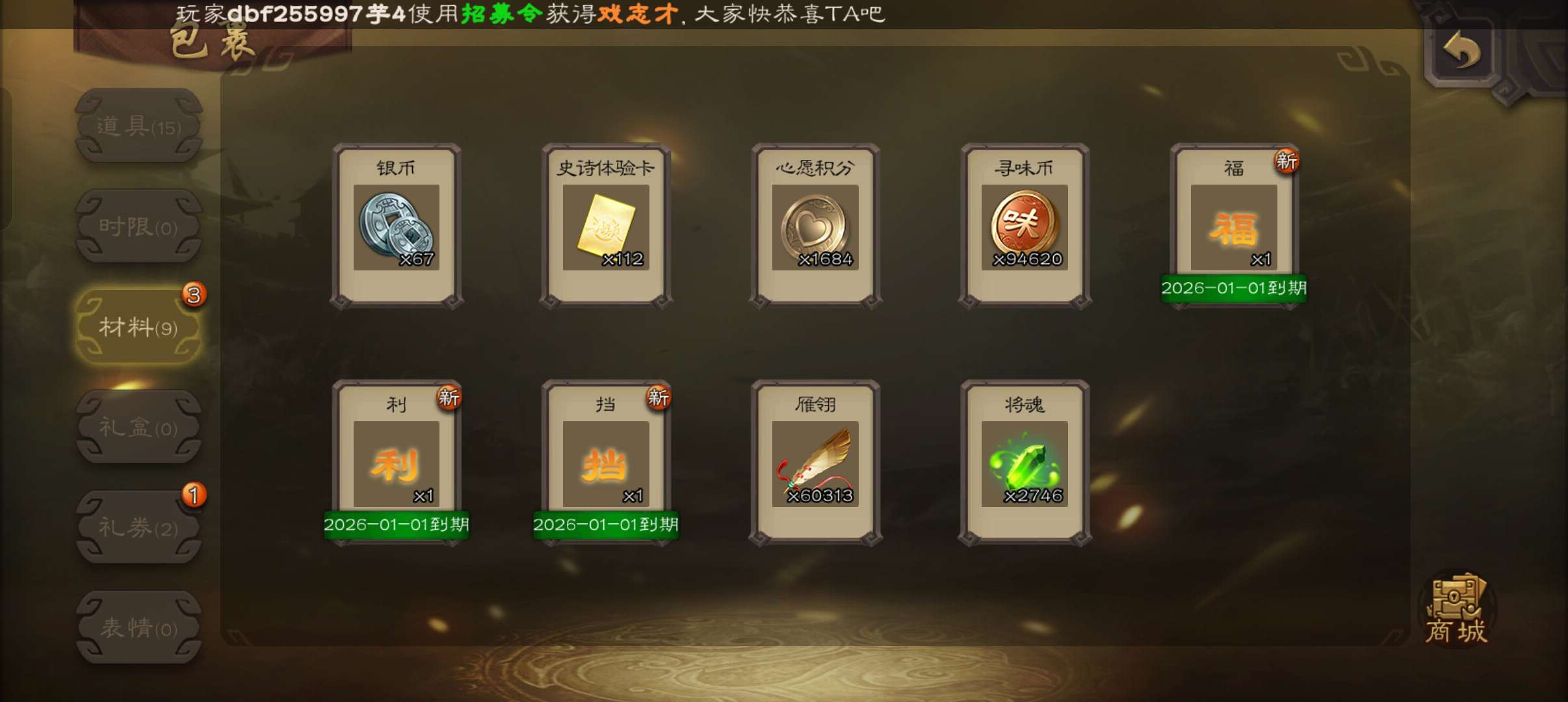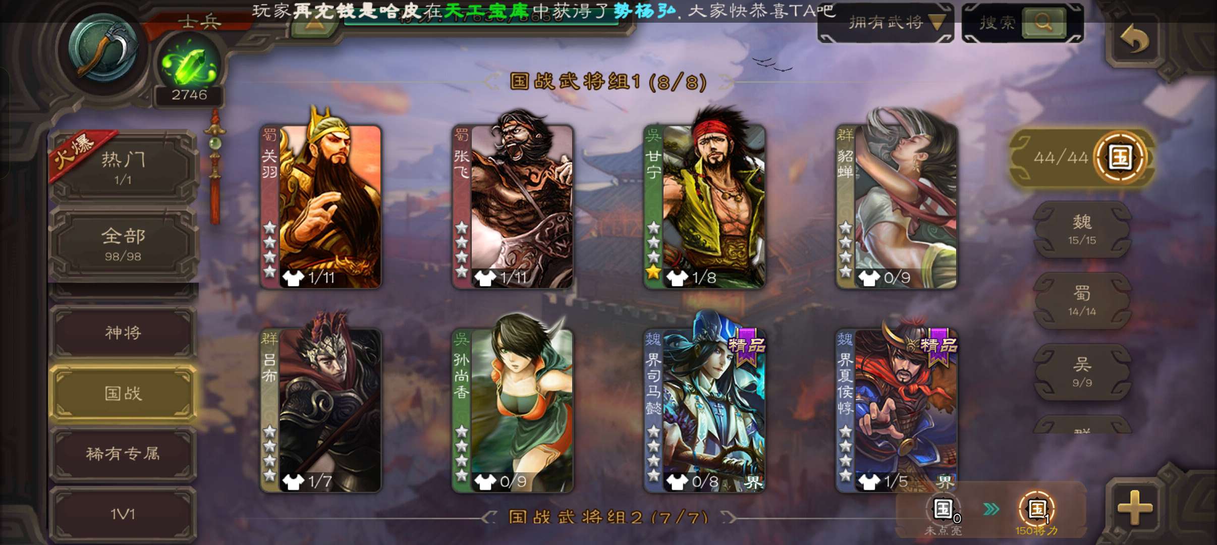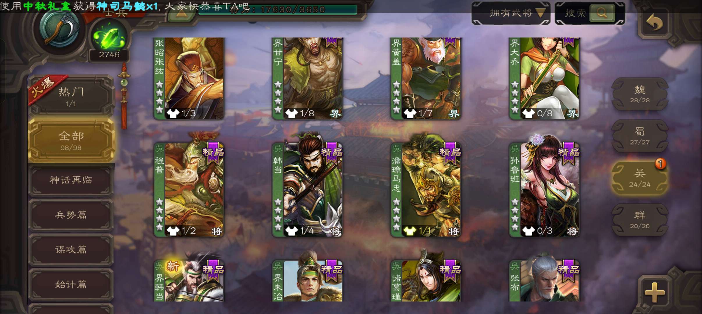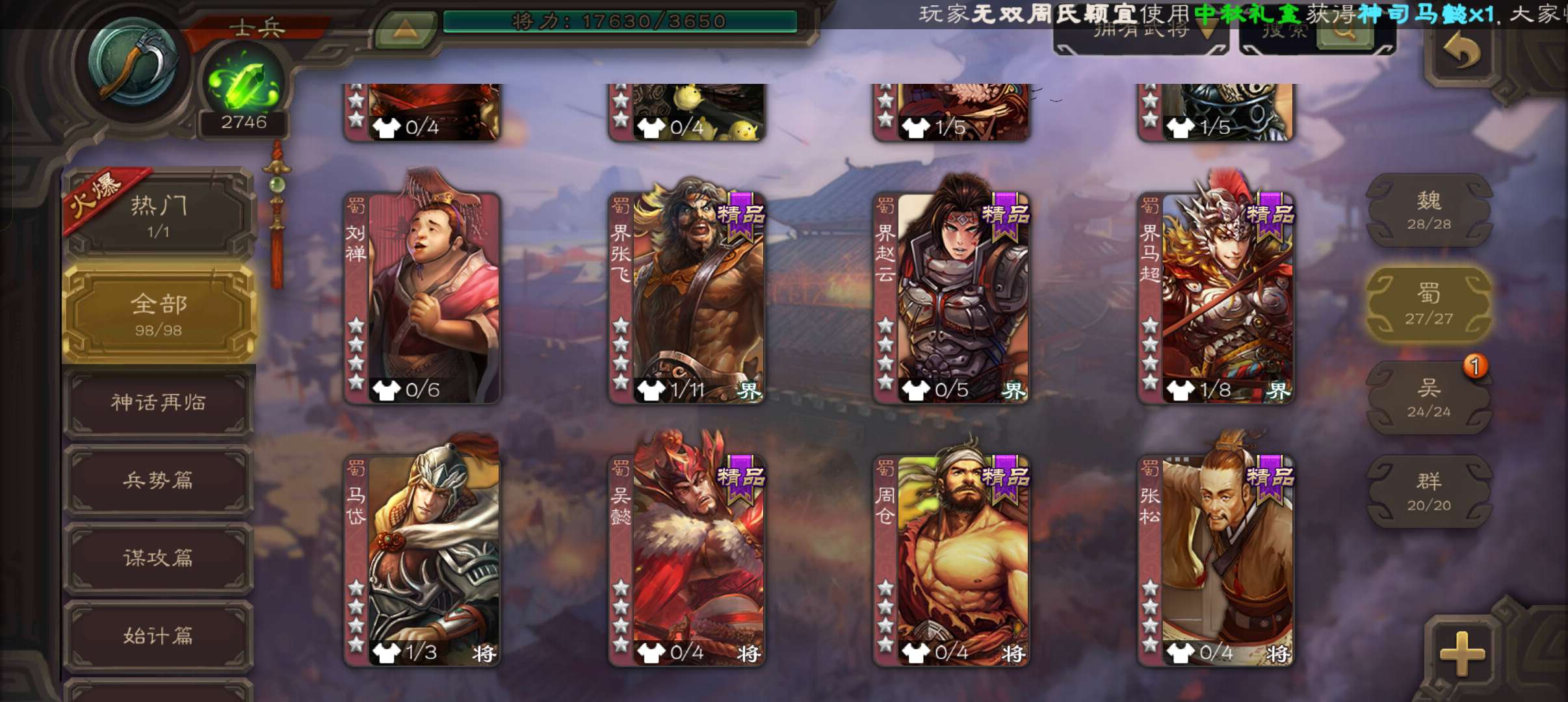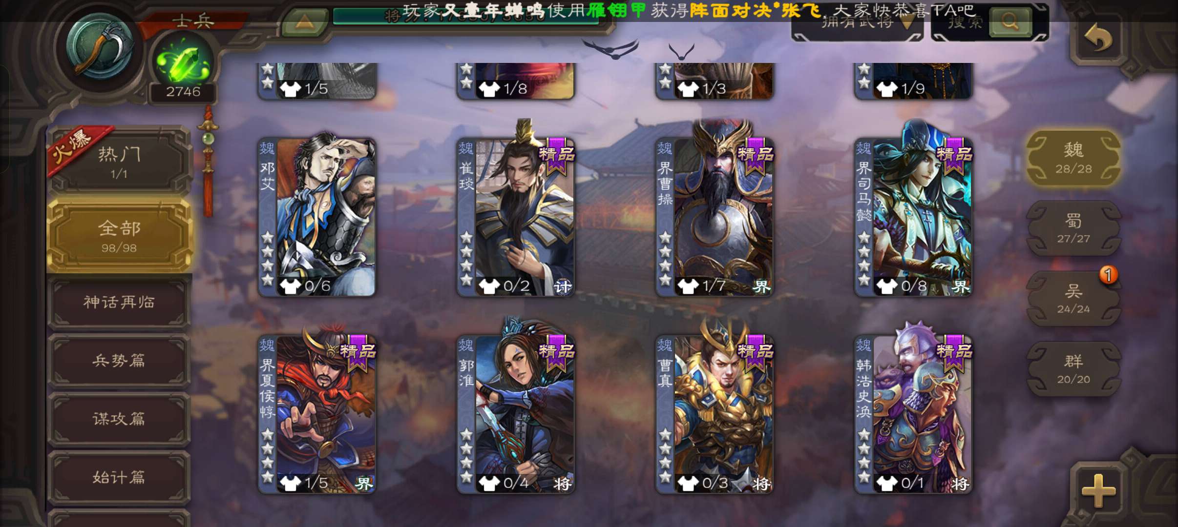 士兵,2700魂6万羽毛,友徐庶,界钟会谯周双史诗,霍峻谋卢植张布崔琰,58招募令4.5万豆