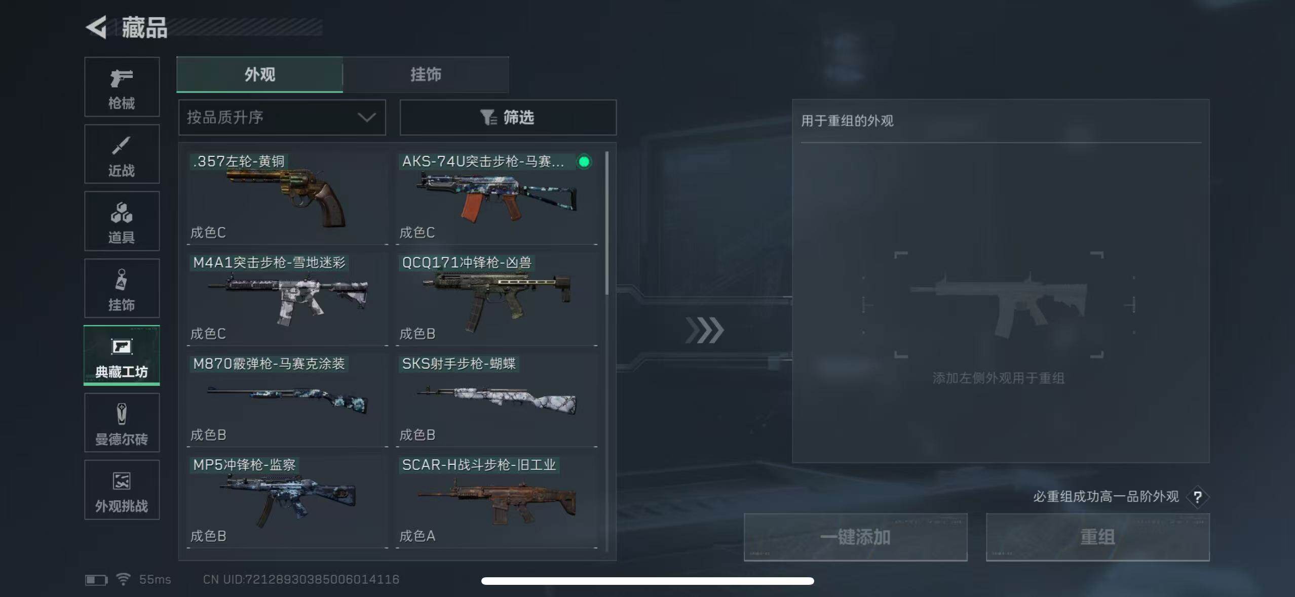 【传说外观】:M4A1突击步枪-阿米娅,ASh-12战斗步枪-鹅鸭杀,M16A4突击步枪-狩猎时刻,SG552突击步枪-运动员,SCAR-H战斗步枪-启航,G3战斗步枪-狩猎时刻,G3战