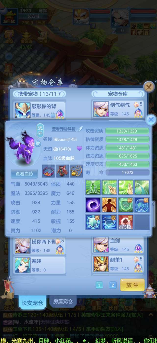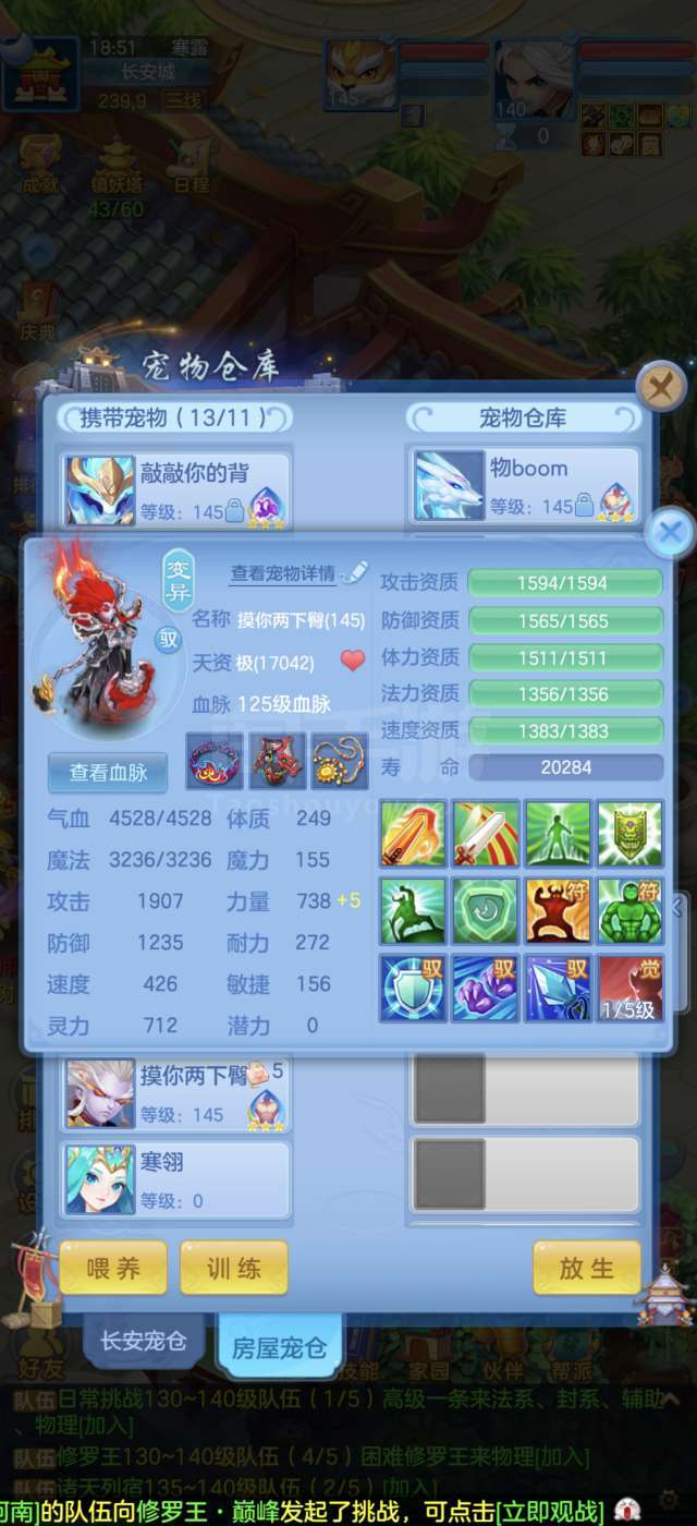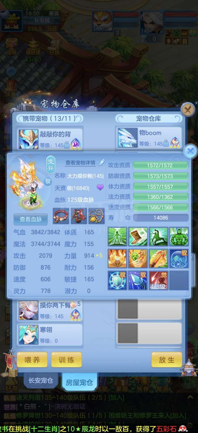 13混14冥月,装备毕业宠物毕业带内丹蛇,多个高级坐骑。