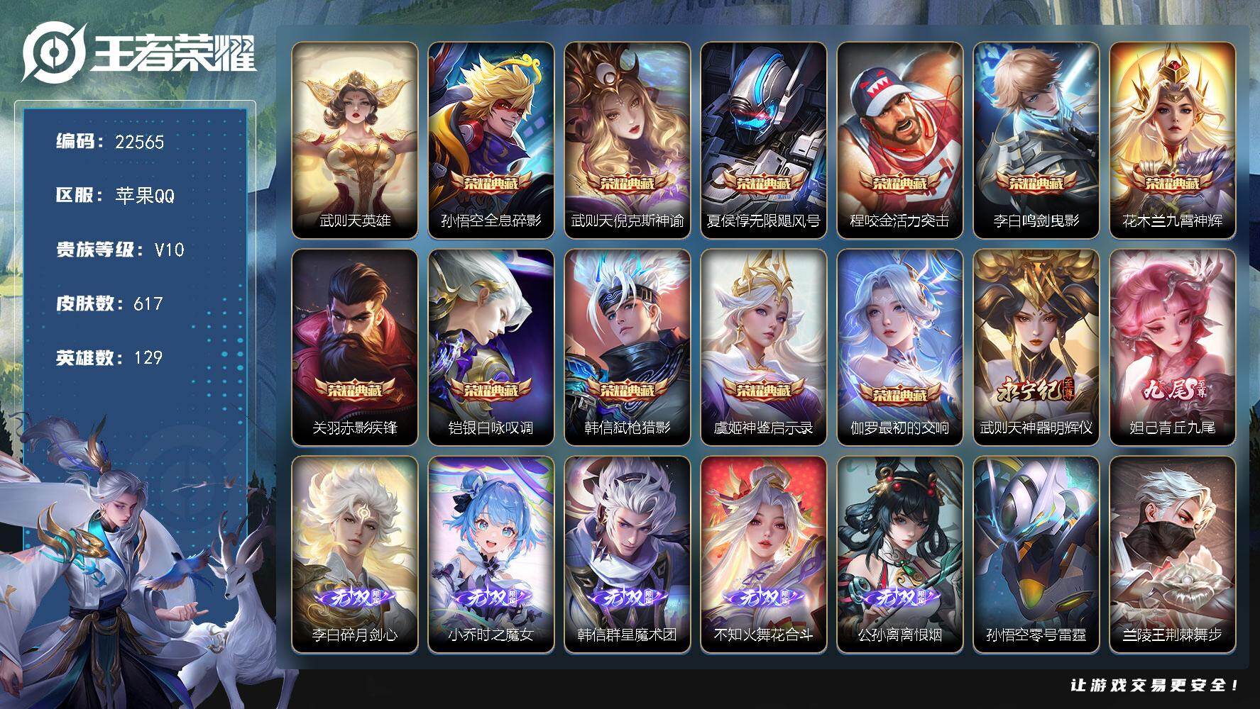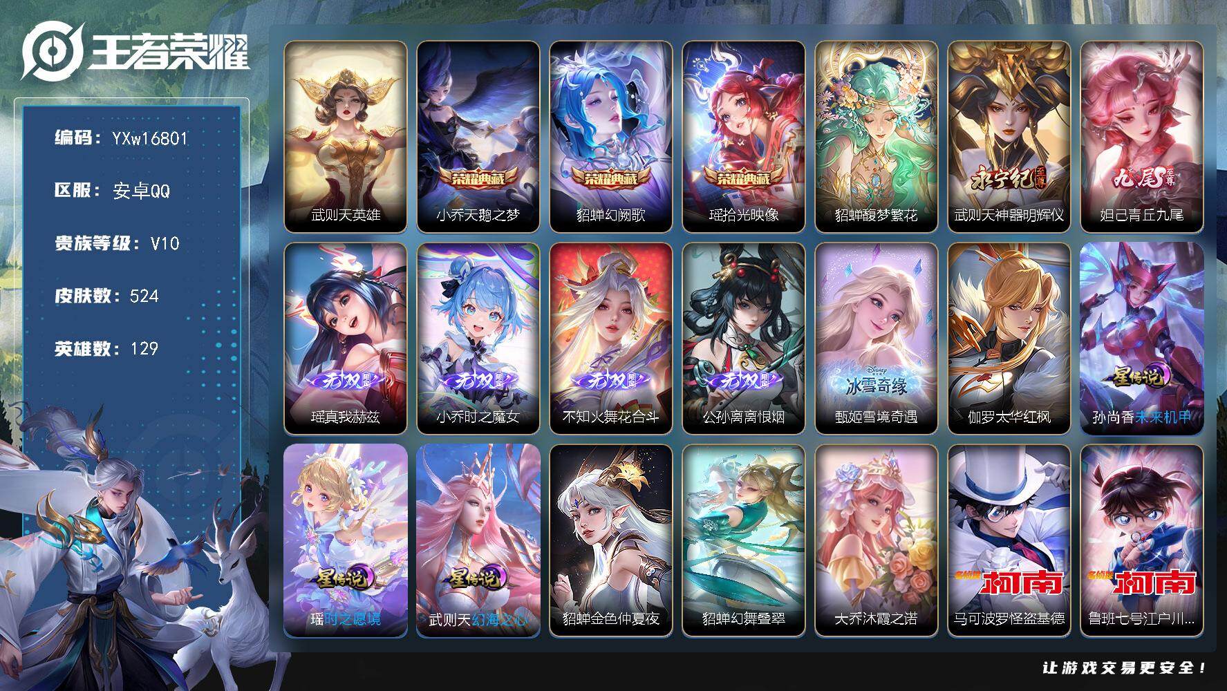 安卓微信-17典藏-99传说-3无双-602皮肤-128英雄-荣耀王者-背包多余两颗水晶未兑换 不议价