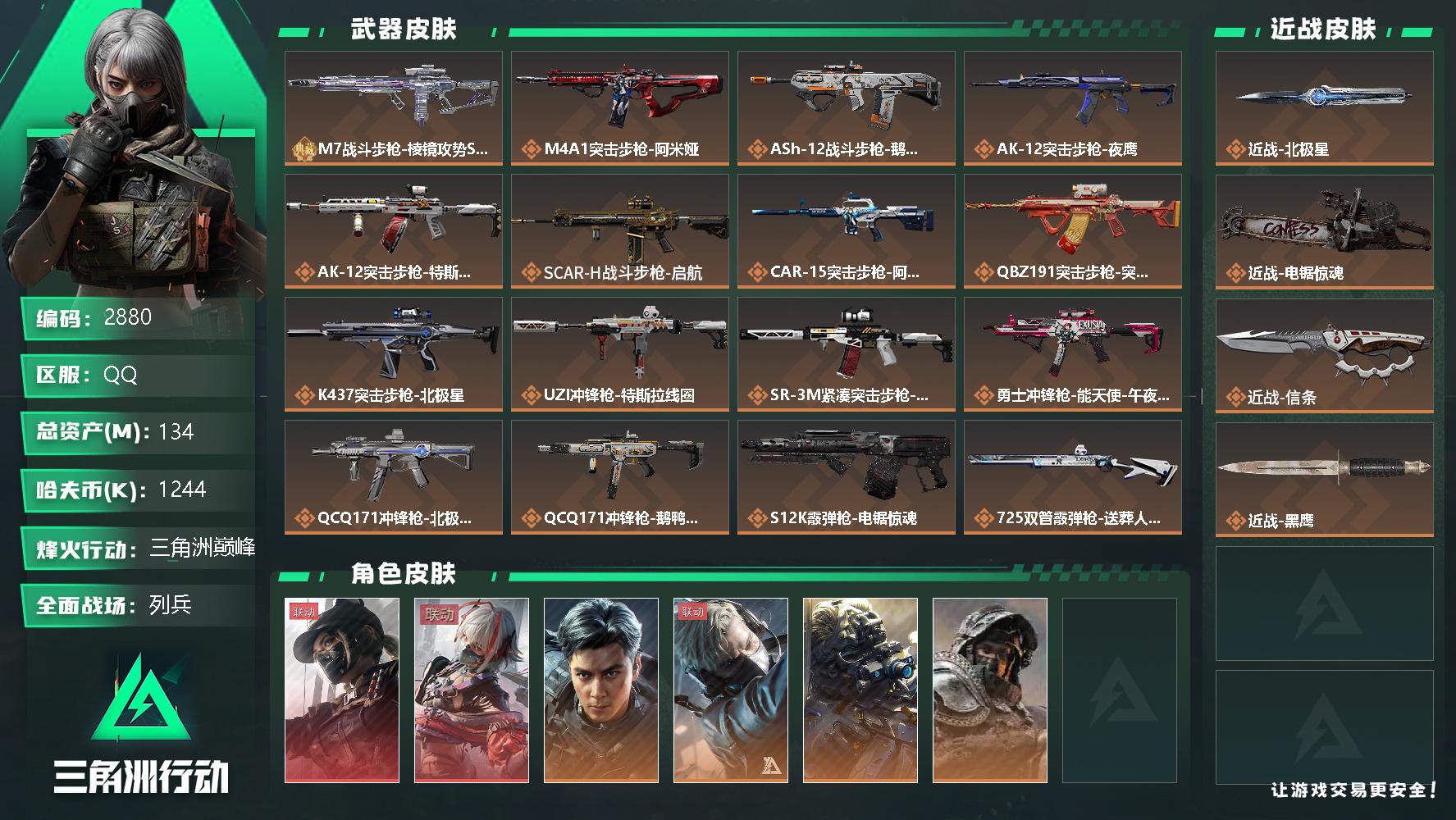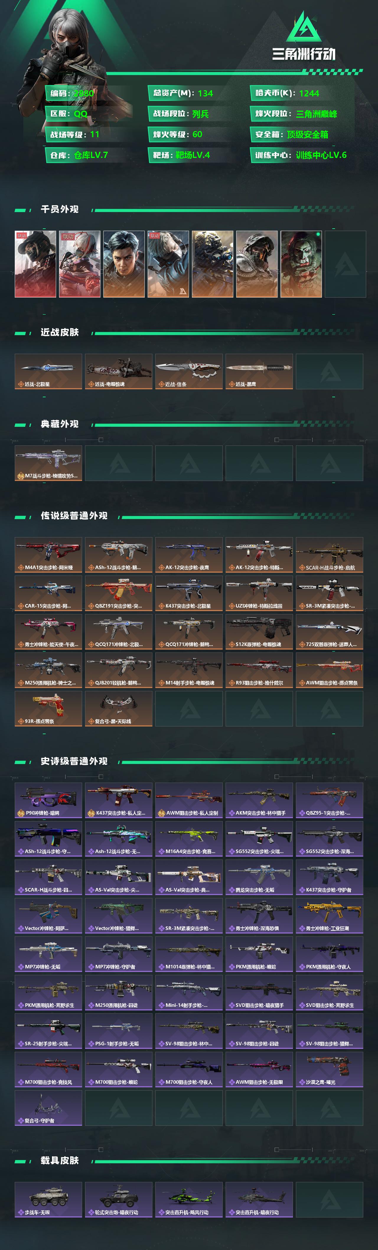 总资产(M):134M/哈夫币(K):1244K/哈夫币(K):1244K/传说枪皮数:22/全面战