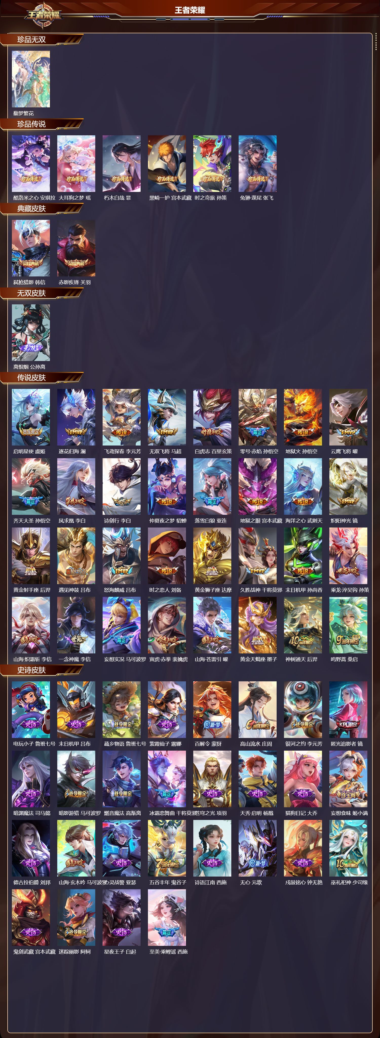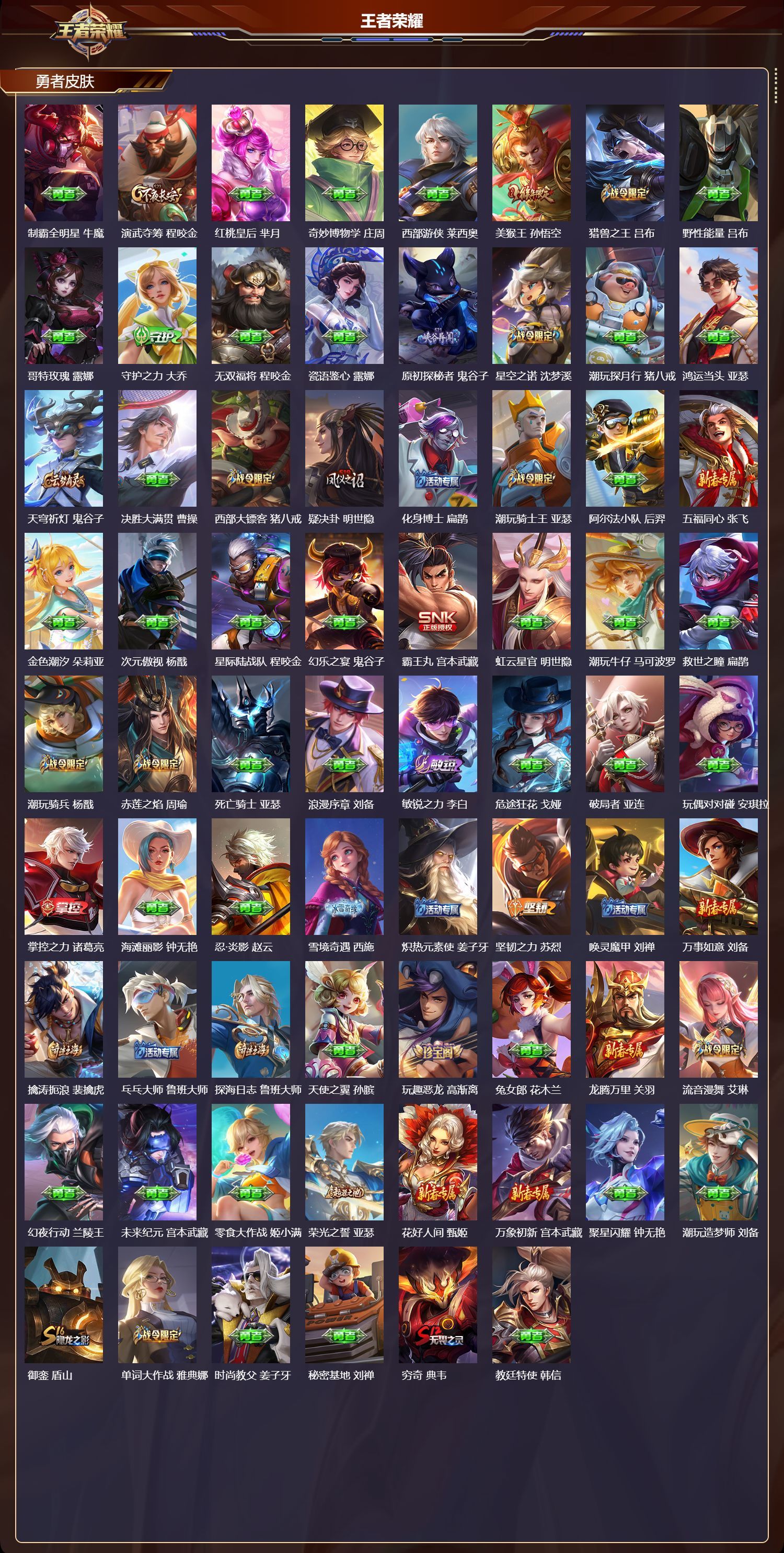 安卓QQ/永恒钻石/389皮肤/127英雄/2典藏/1珍品无双/1无双/6珍品传说/32传说/129