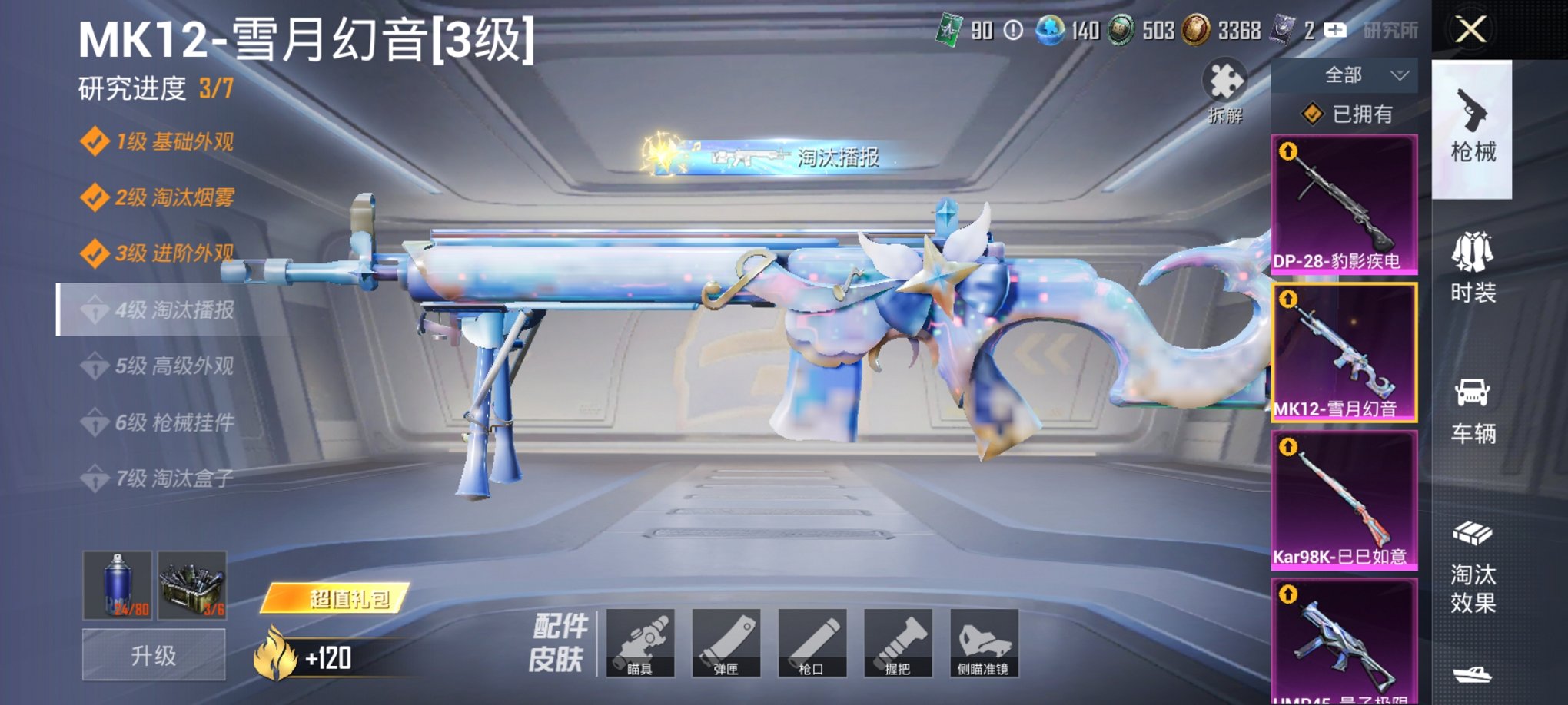 【满级AKM梦之光华12粉装9特效枪1载具】、安卓V区-97414热力值-15印记-218套装-293枪皮、【1载具】、玛莎拉蒂Q蓝色【2稀有】、Mark.06蓝螳螂、奇异狩猎者【12粉装】、山涧鹿灵、彩虹鹿灵、憨憨奶龙、莲影清波、纯珍童话、仲夏莫吉托、瑰丽时代、未来歌姬、天禅智恒、角色-樱桃泡泡、角色-烟云彩露、角色-千金淑猫【9特效枪】、P90-沙丘之主(3级)、AKM-梦之光华(7级)、Mk14-闲梦青缨(7级)、SCAR-L-纯梦嫁纱(6级)、GROZA-巴啦啦小魔仙(7级)、MK12-