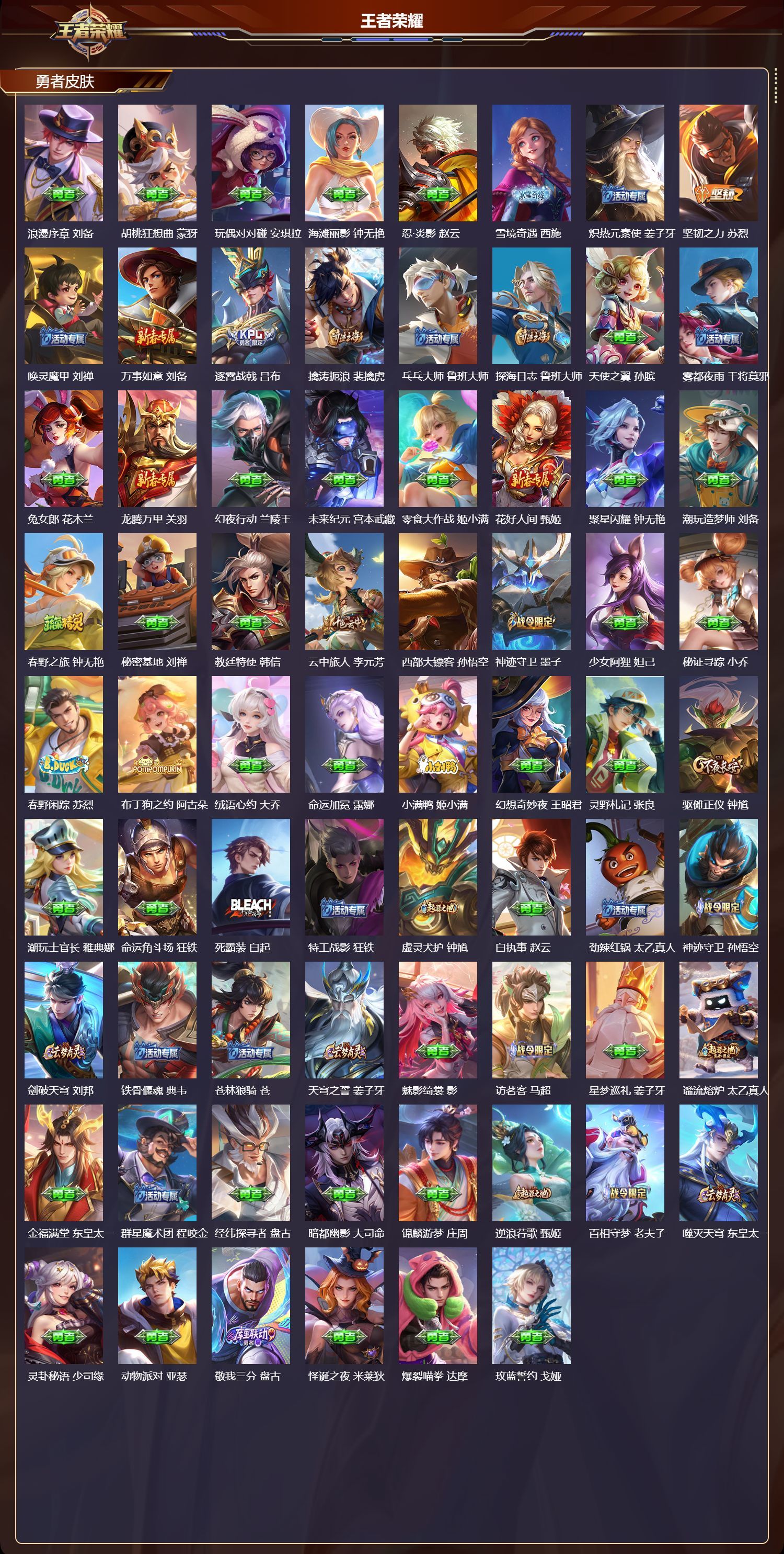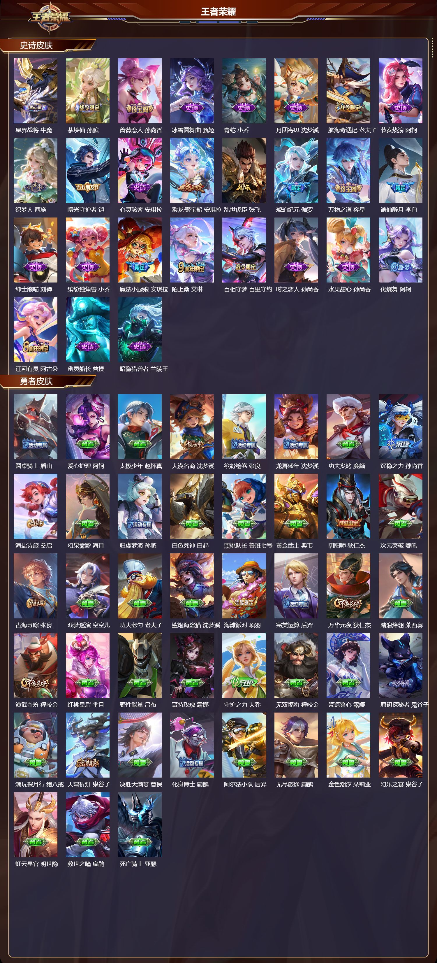 苹果QQ/永恒钻石/256皮肤/124英雄/1典藏/0珍品无双/3无双/5珍品传说/15传说/73史