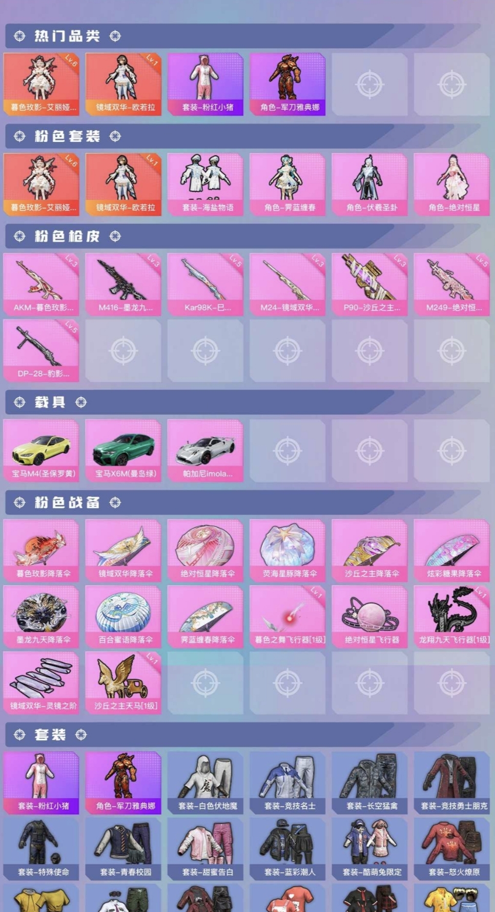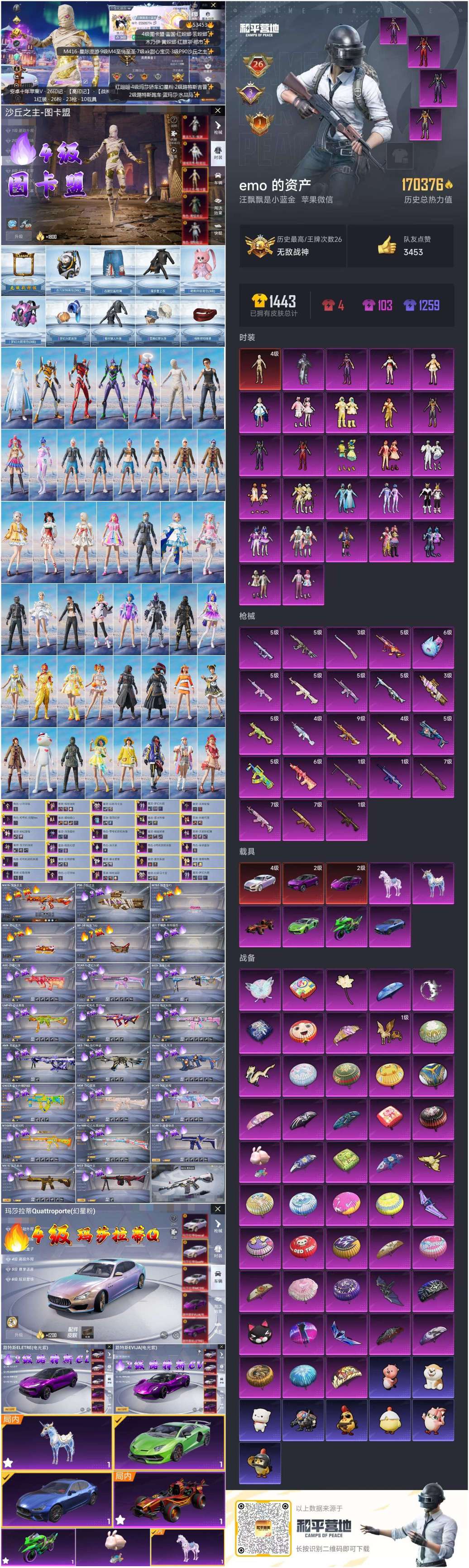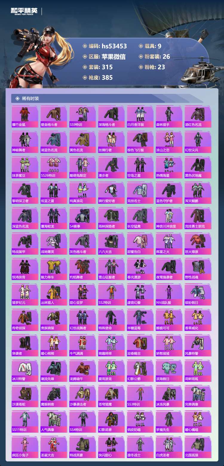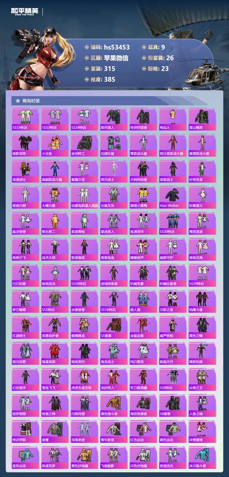 hs53453 苹果微-26王牌印记-有战神框-1红装-26粉装-23特效枪-9载具-170376