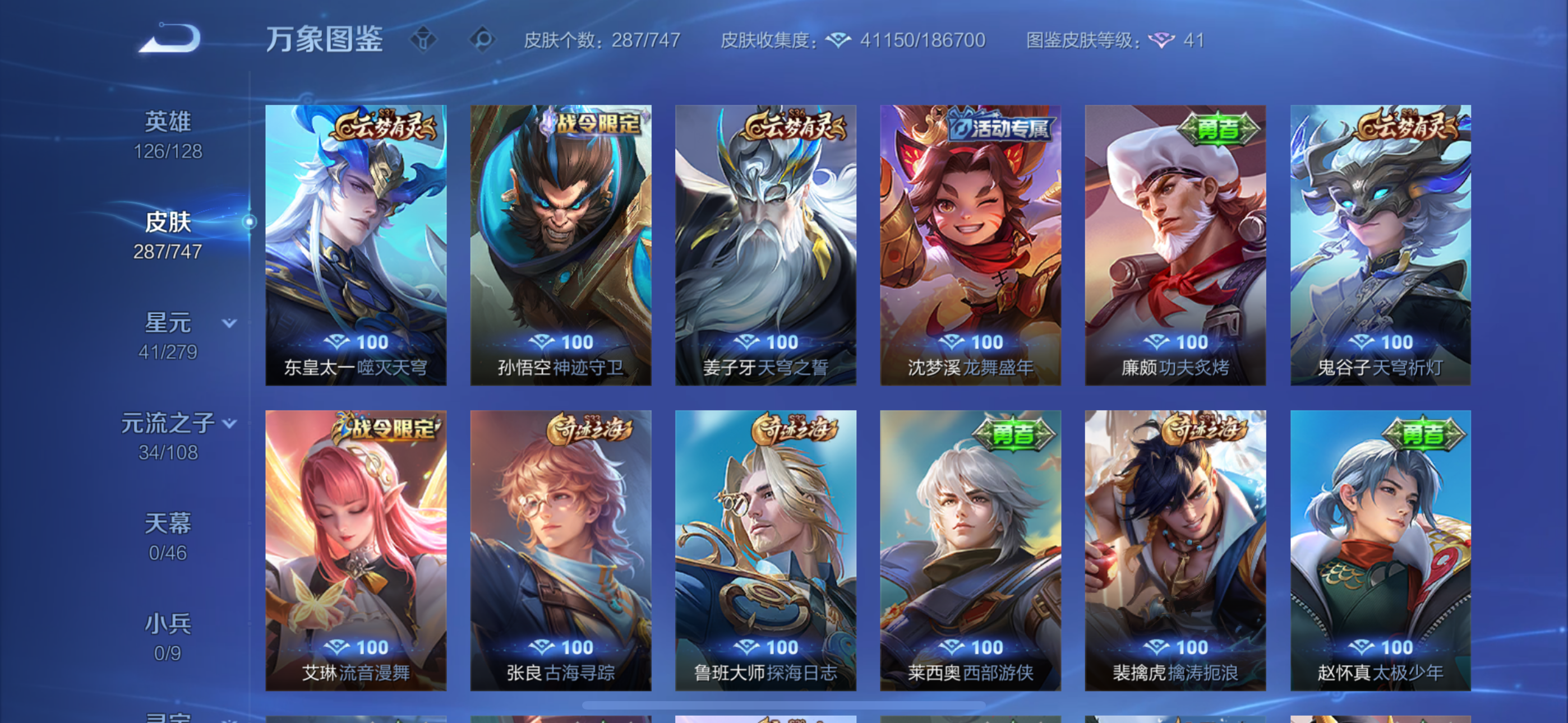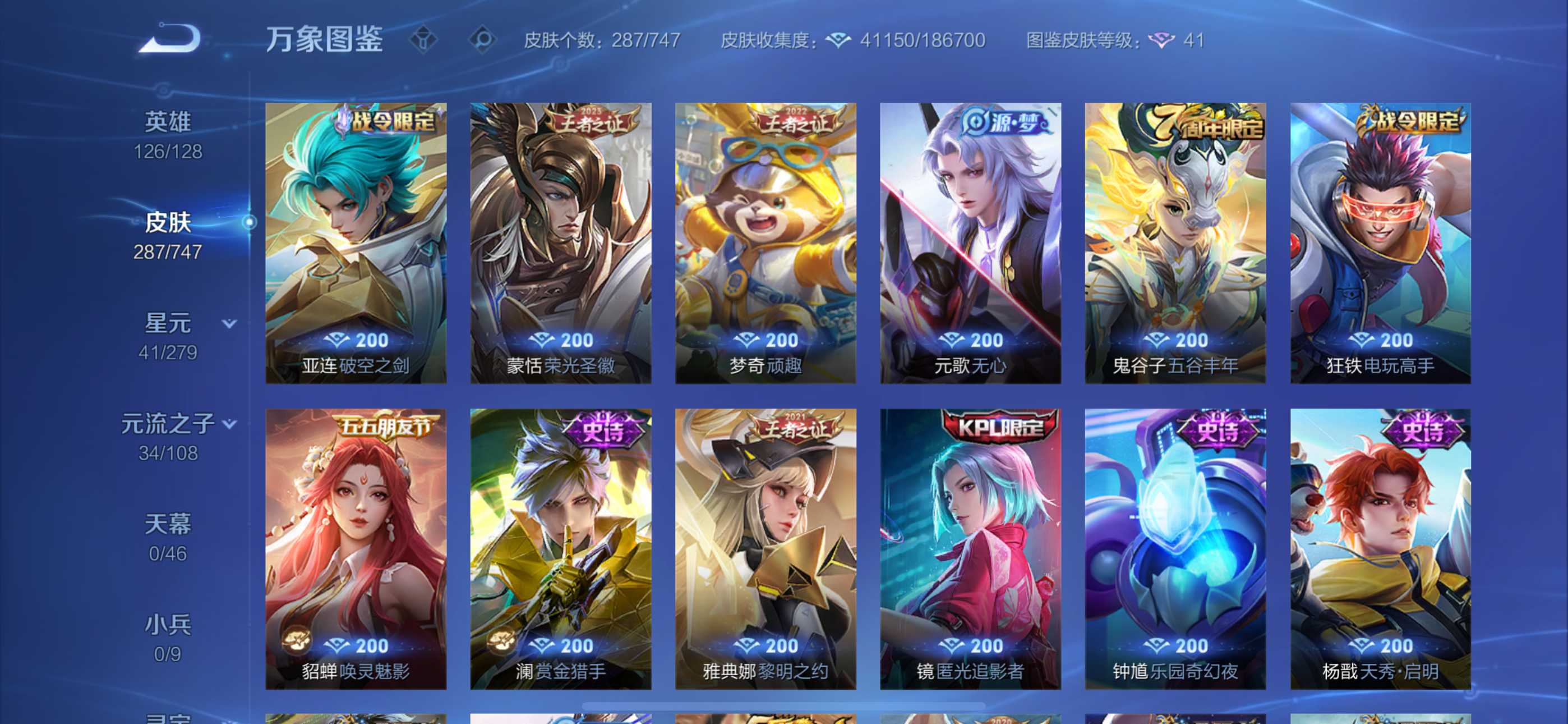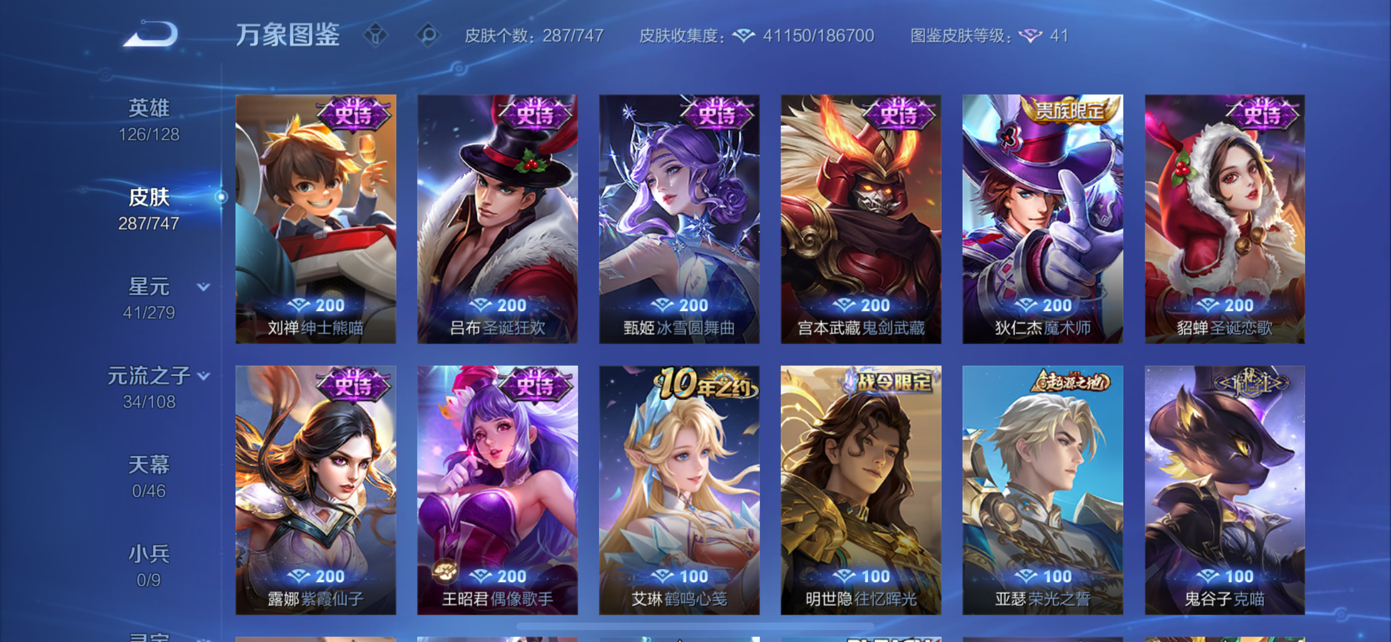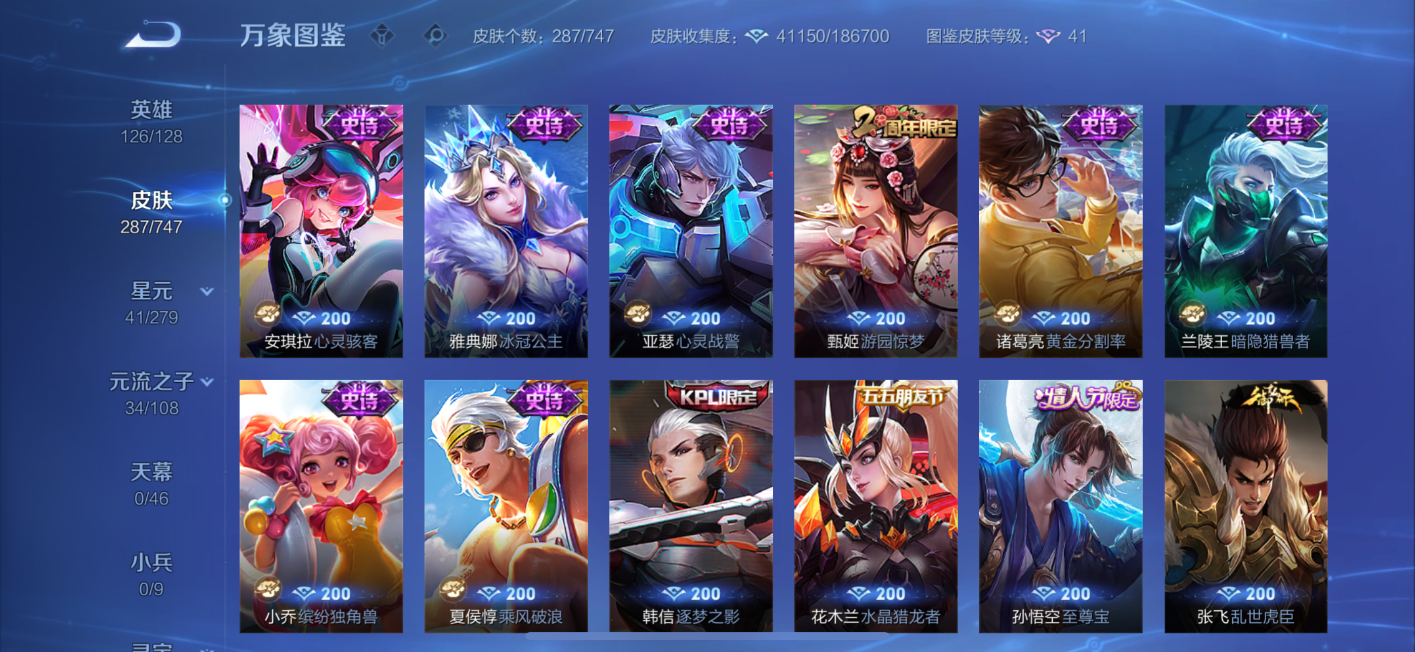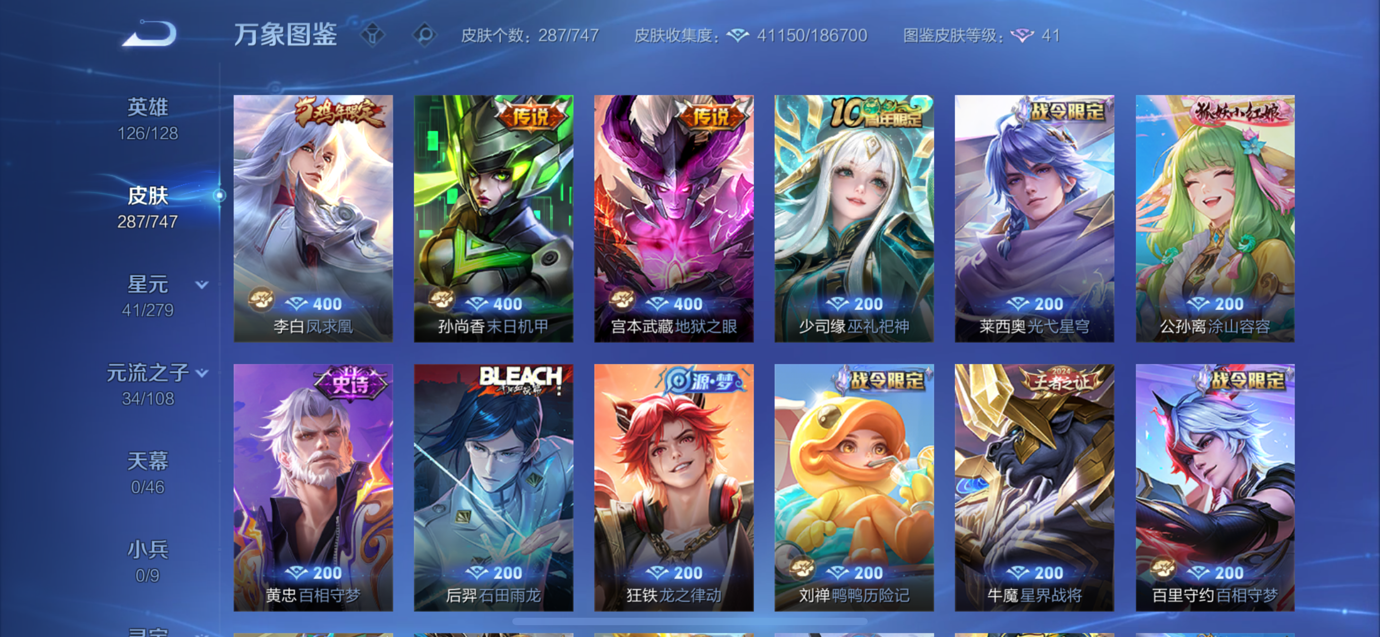 苹果QQ-2典藏-12传说-1无双-287皮肤-126英雄-至圣王者-历史省标李白 百星印记 两荣耀一无双还有很多传说和限定