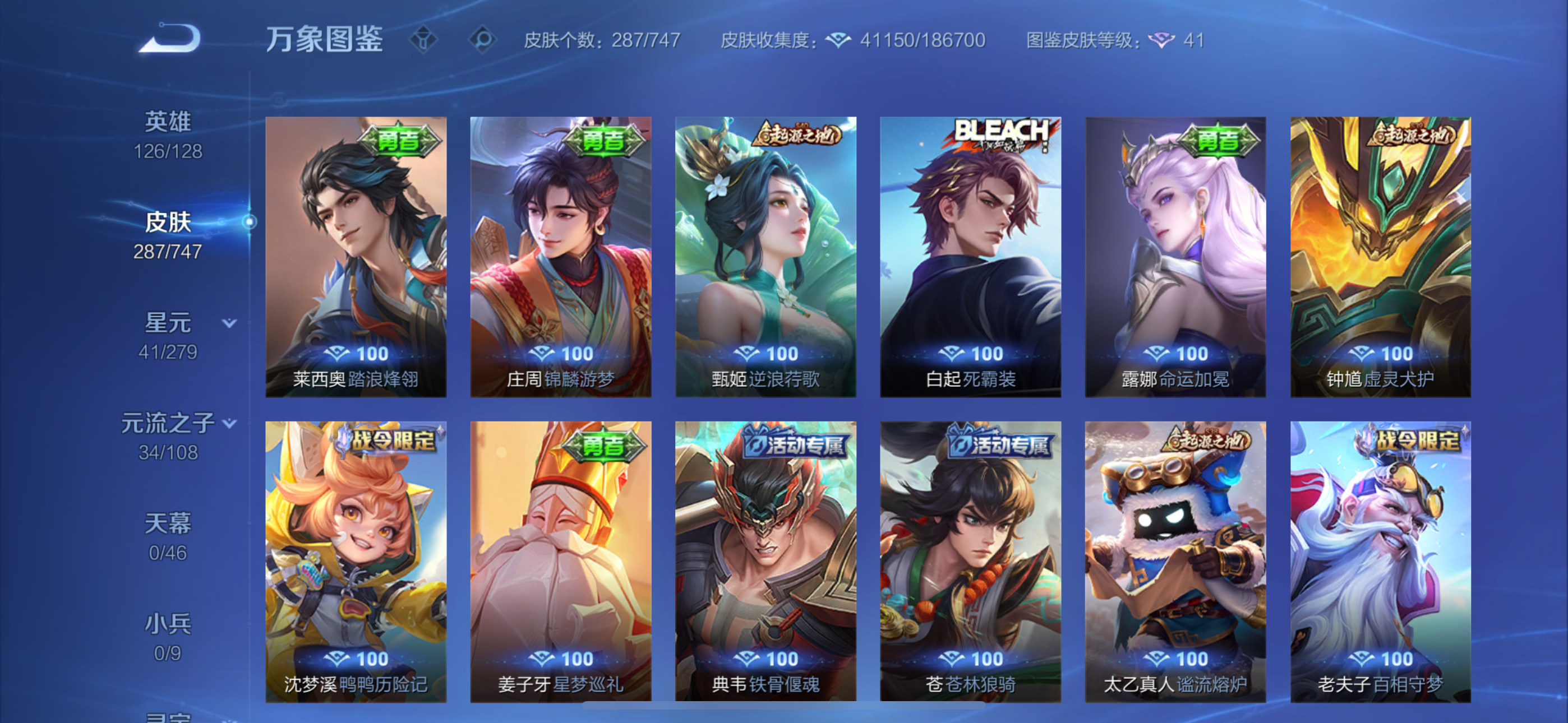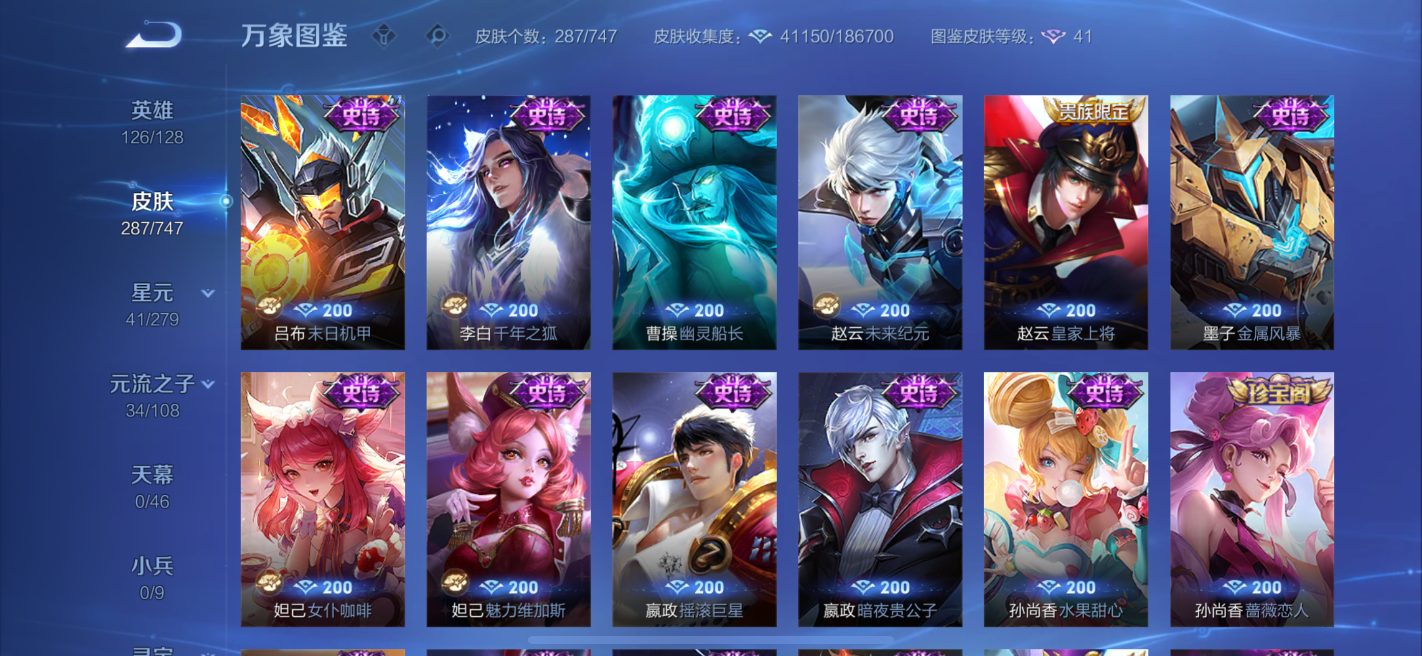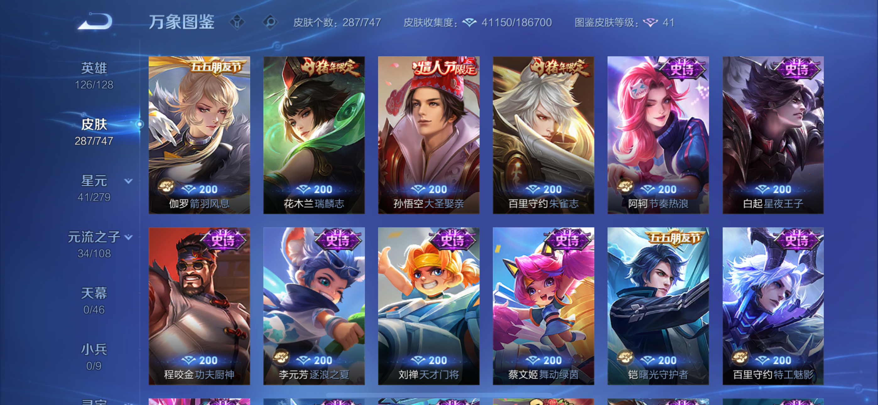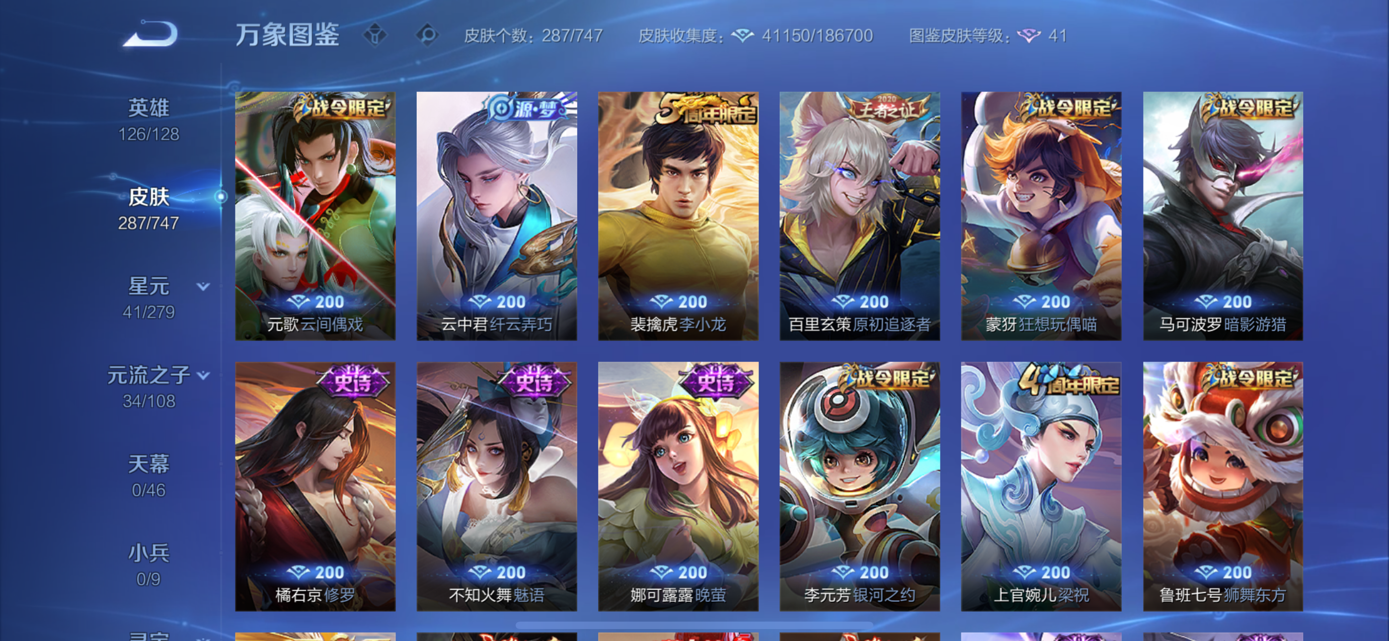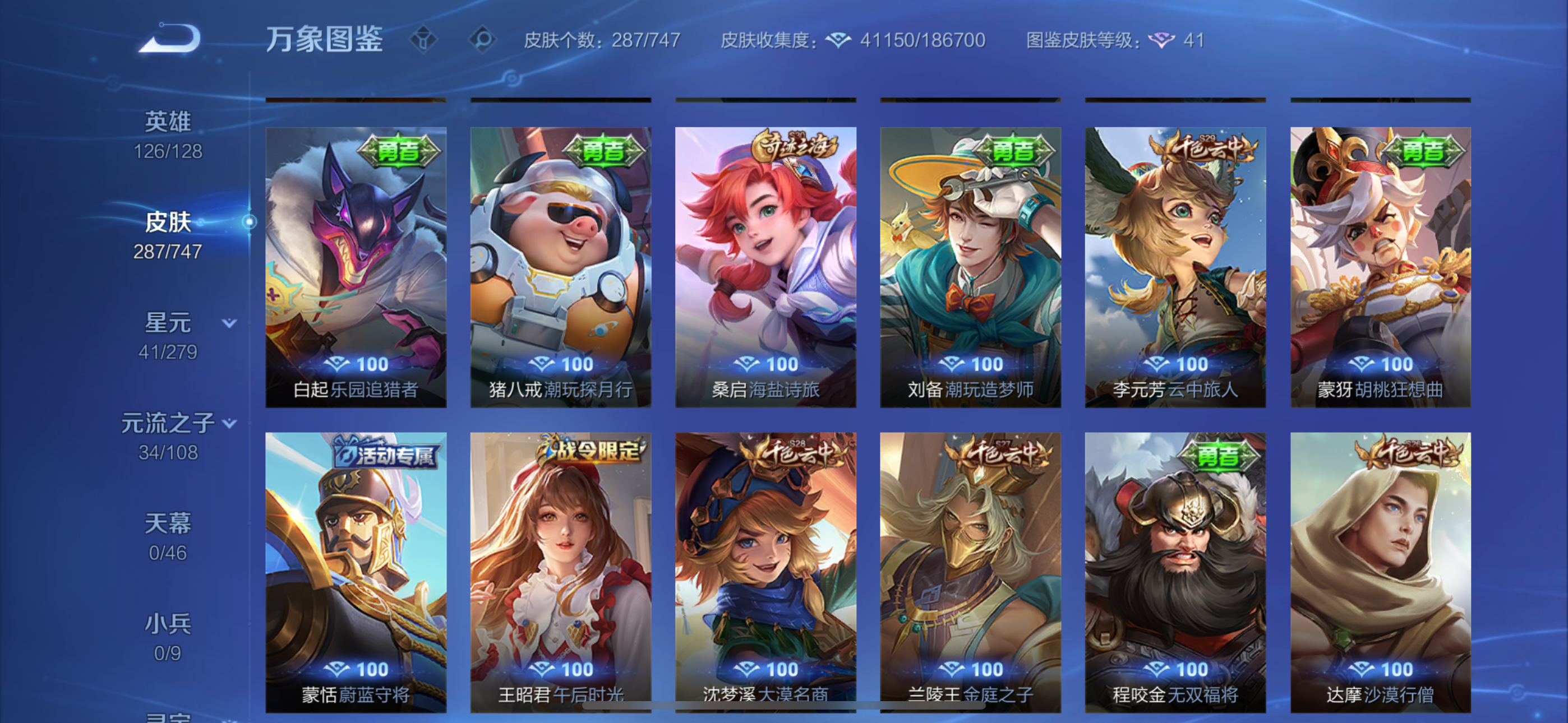 李白荣耀典藏 无双 至尊宝宫本星传说 还有很多限定皮肤
