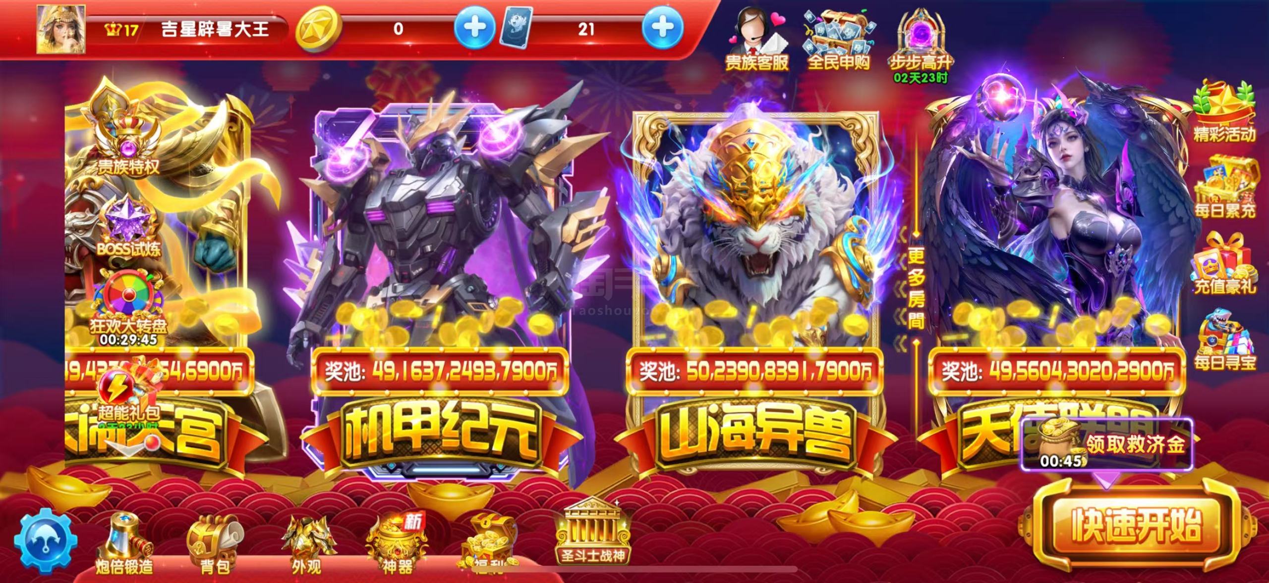 官方 不过户 纯救济2.2兆 v17 14套1527加成 圣器满 巅峰满 炮满 技能都有 详情看图