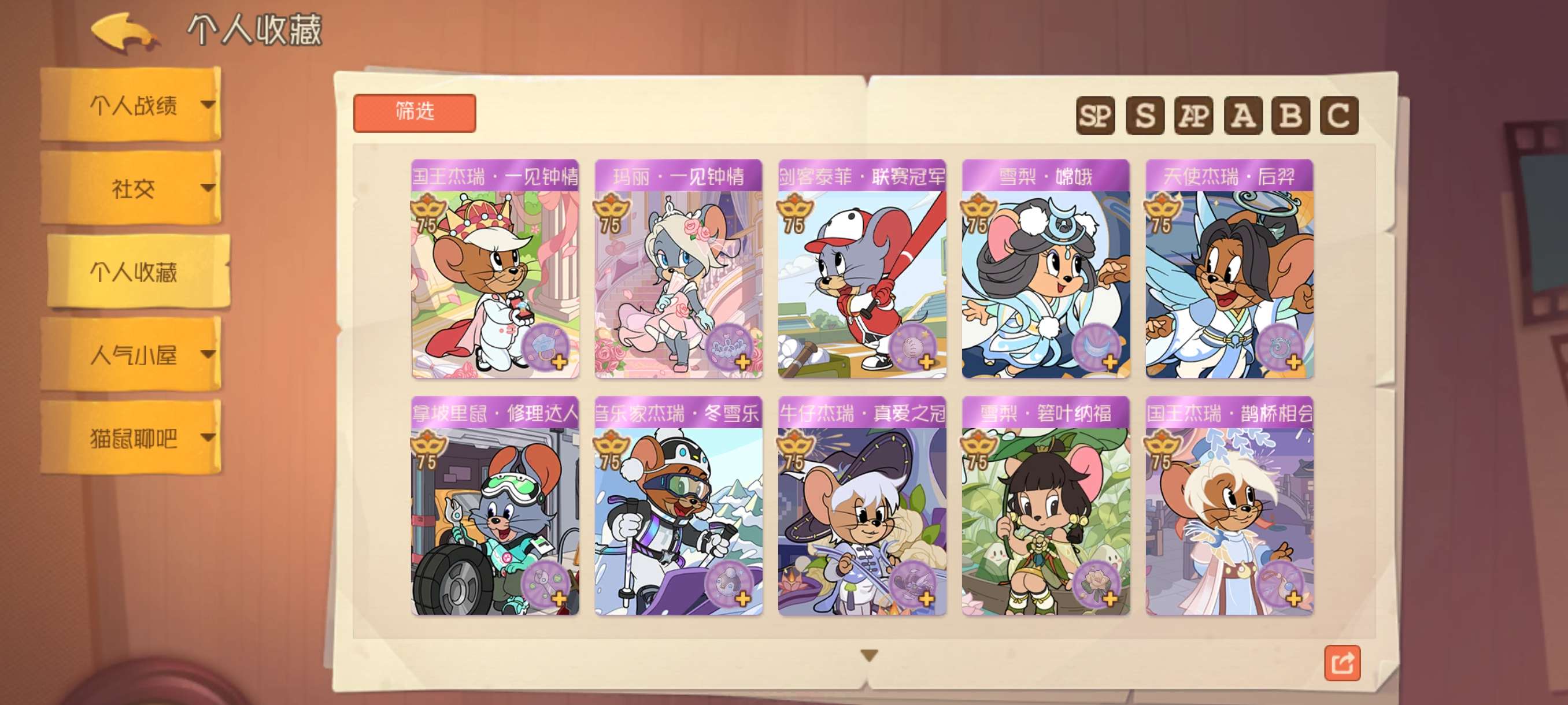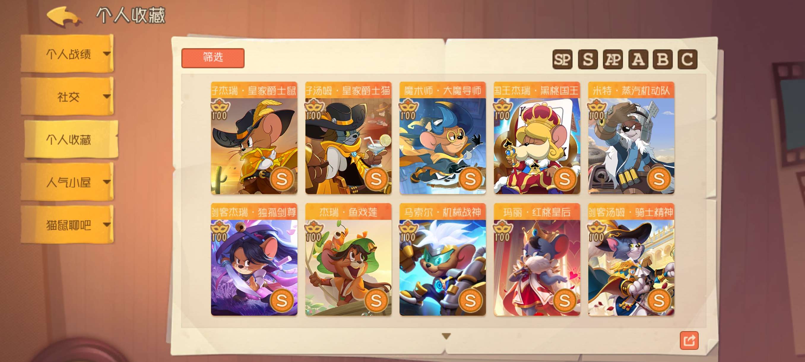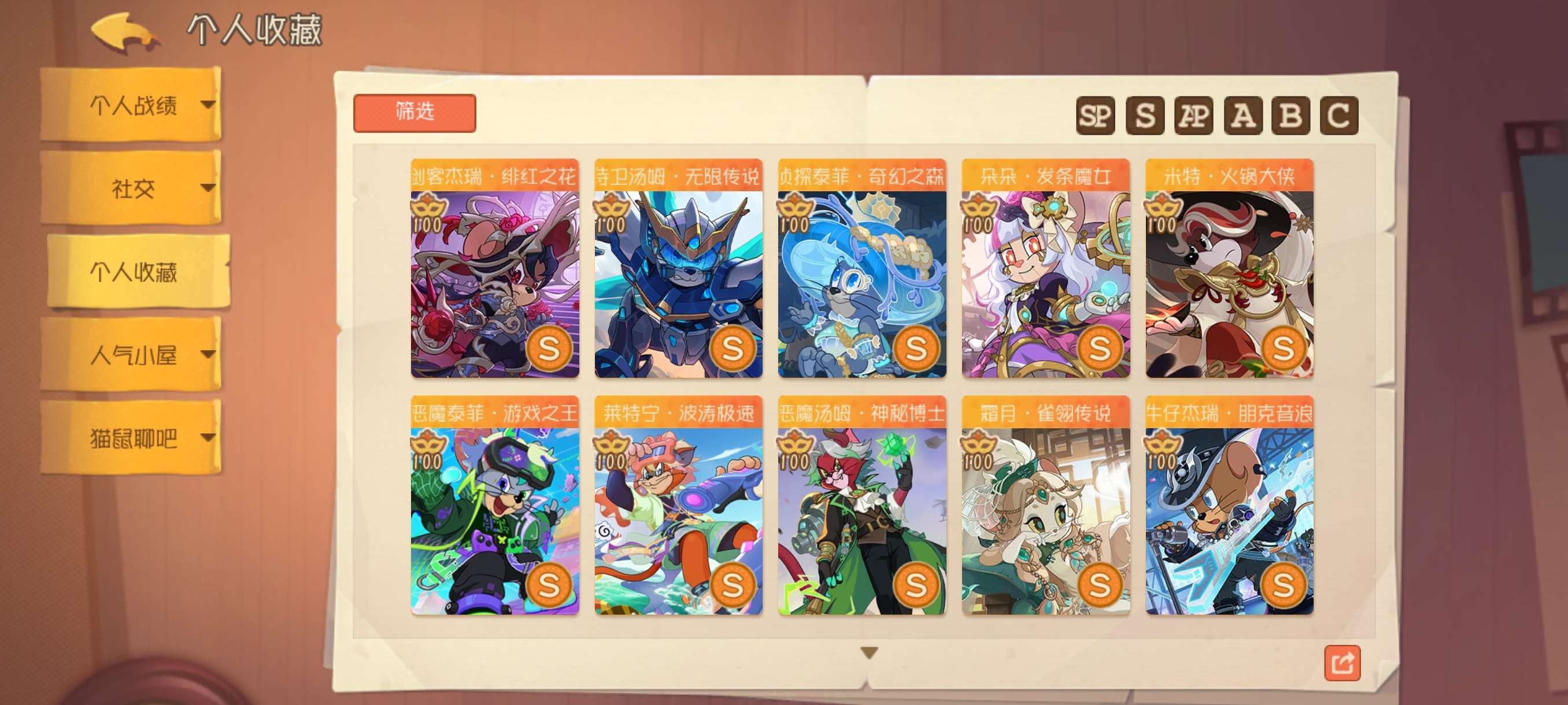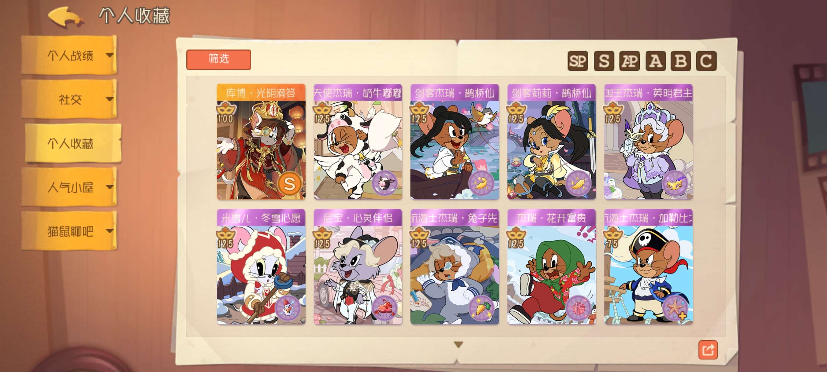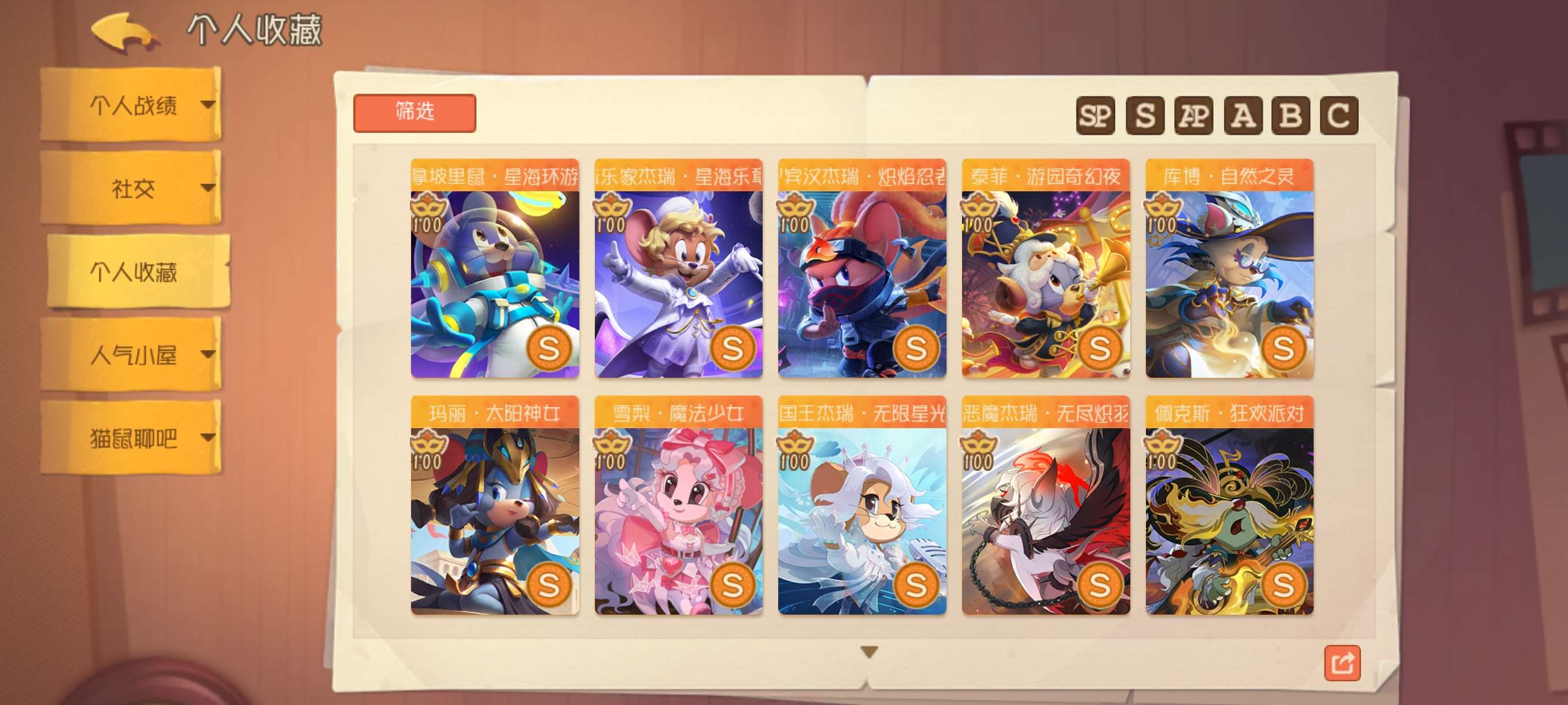 1sp4sss2ss41S万氪全角色21个AP皮2个S染色皮2个S机器鼠2个S足迹155邮局幸运值