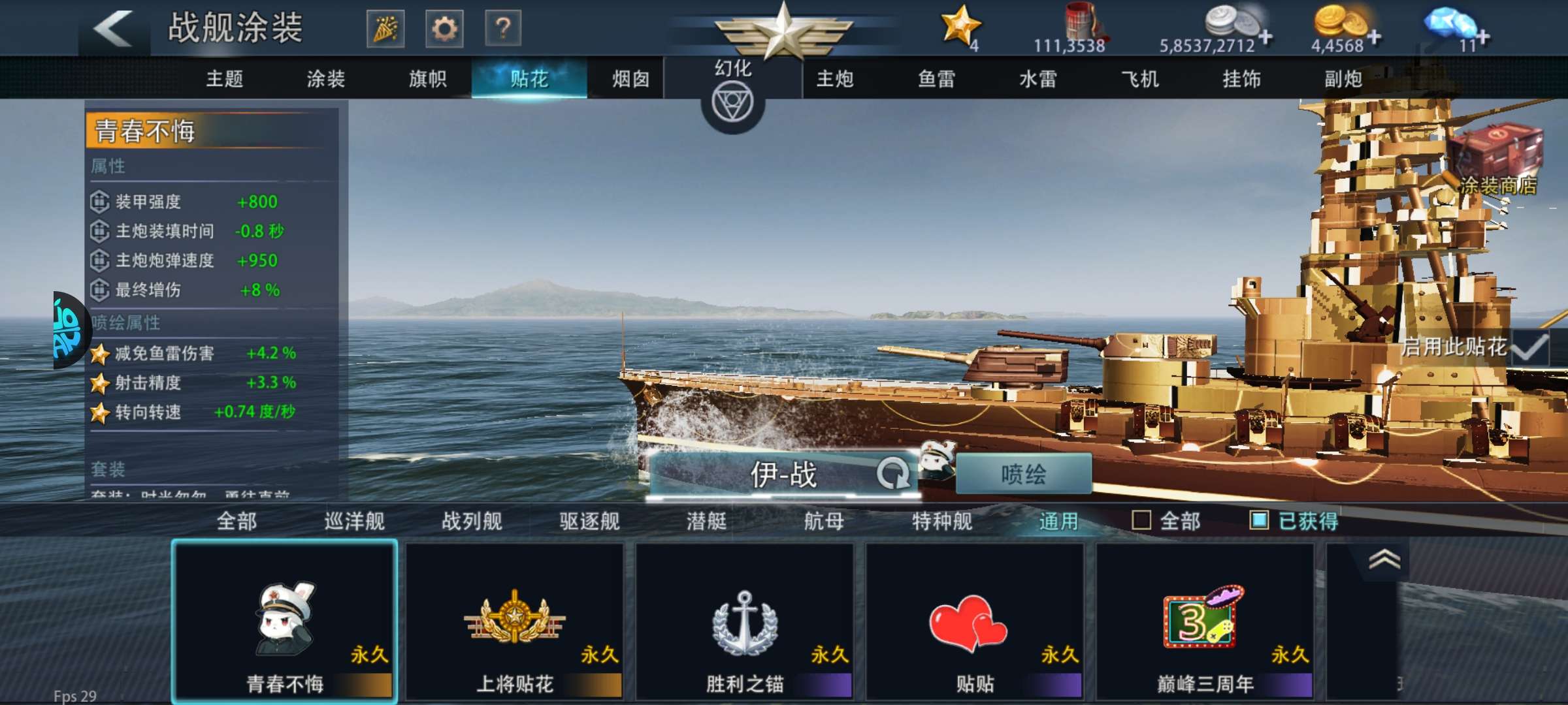 苏联 沙皇 桑 定远 五星动力系统 钢盔 3个四红s6配件,全4属性涂装 满级神舰舰队天梯主力船
