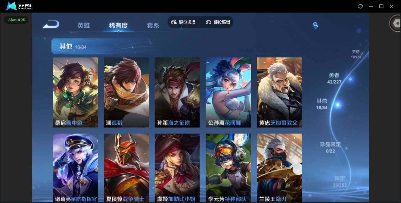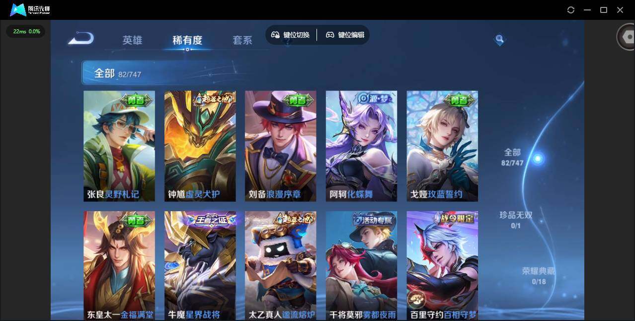 实名: 可修改 贵族等级: V6 英雄数: 120 皮肤数: 82 传说皮:
