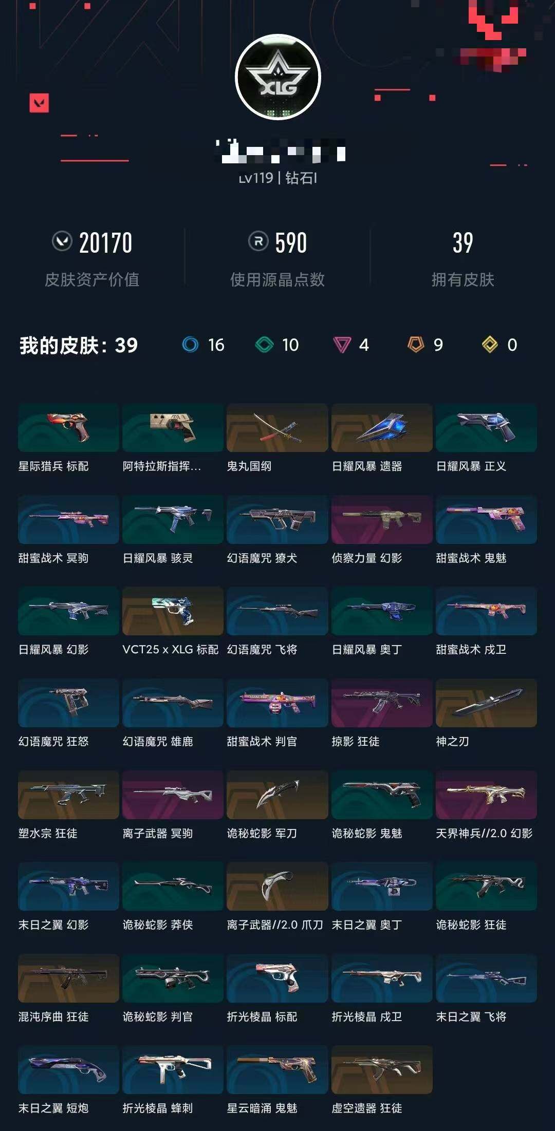 终极*9/卓越*4/皮肤*39/等级*119/段位:钻石