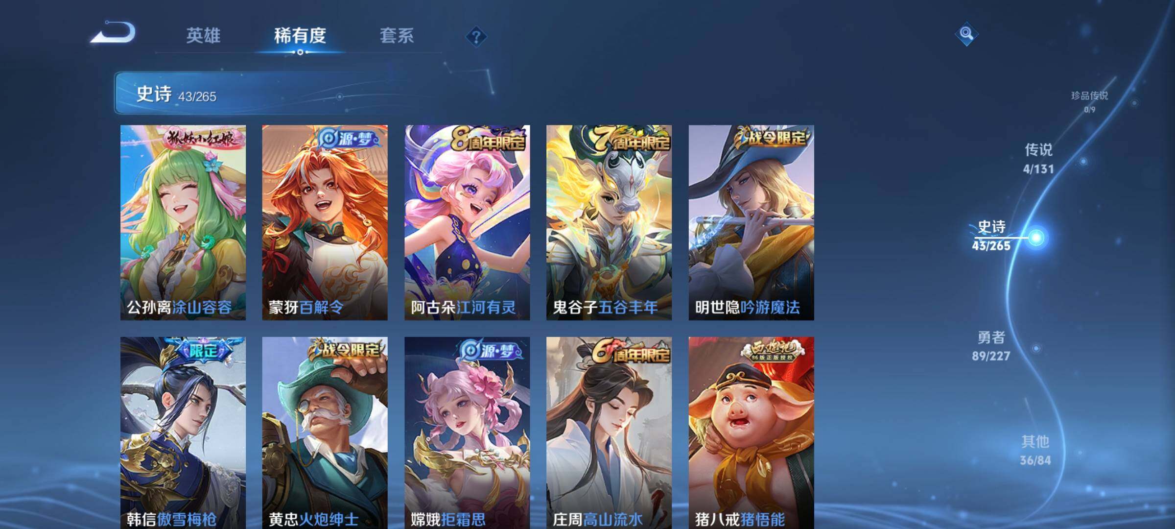 【WZN5455】贵族0/皮肤173/典藏1/传说4/史诗43/英雄127/猪八戒全皮/李白-鸣剑·曳影/后羿神树通天/李信-一念神魔/达摩-黄金狮子座/梦奇-胖达荣荣/姜子牙-天穹之誓/狄仁杰-阴阳师/赵云-皇家上将/墨子-神迹守卫/孙尚香-蔷薇恋人/鲁班七号-狮舞东方/庄周-高山流水/高渐离-玩趣恶龙/白起-夜都怪侠/芈月-幻夜卜梦/元歌-云间偶戏/马可波罗-暗影游猎/狄仁杰-魔术师/狄仁杰-万华元夜/达摩-星际陆战队/达摩-沙漠行僧/项羽-海滩派对/老夫子-醍醐杖/老夫子-航海奇遇记/程咬