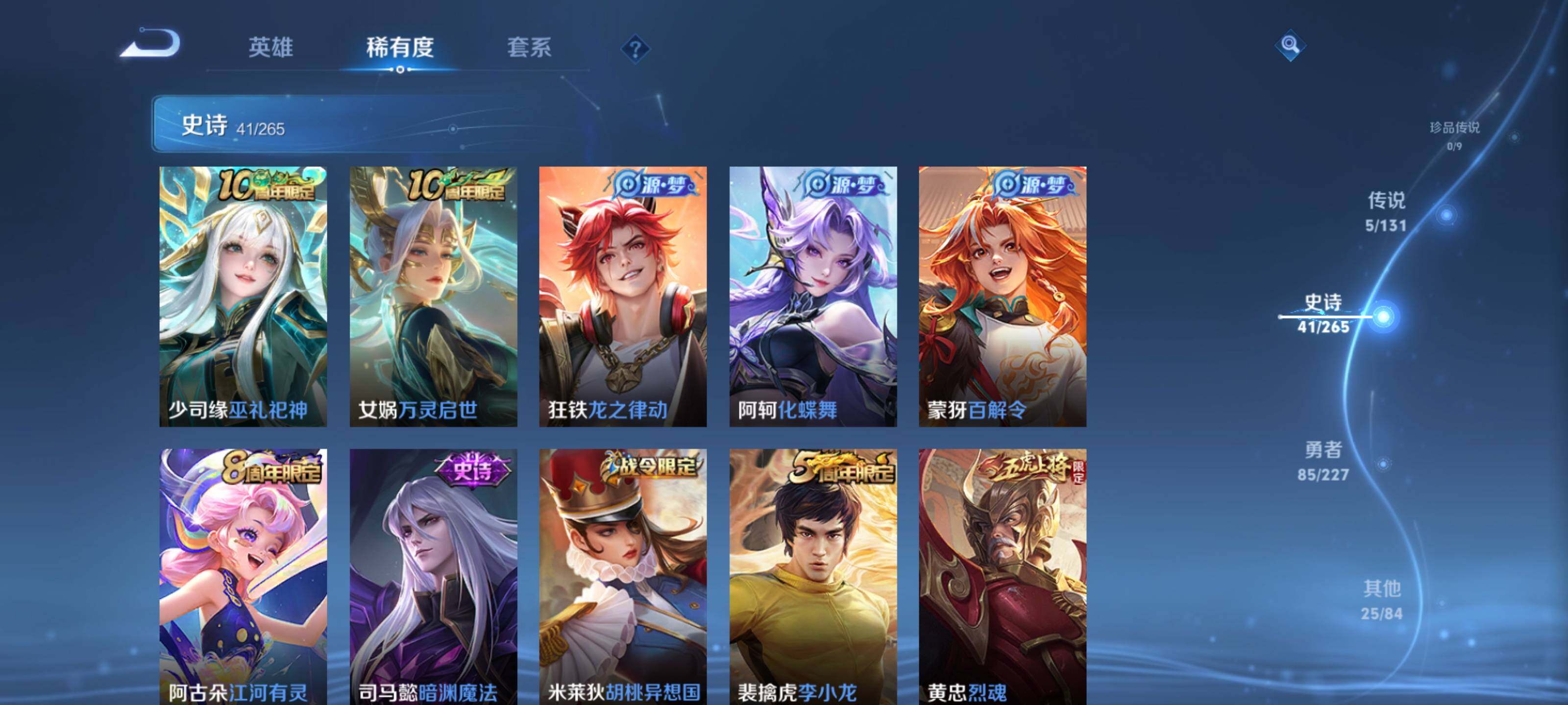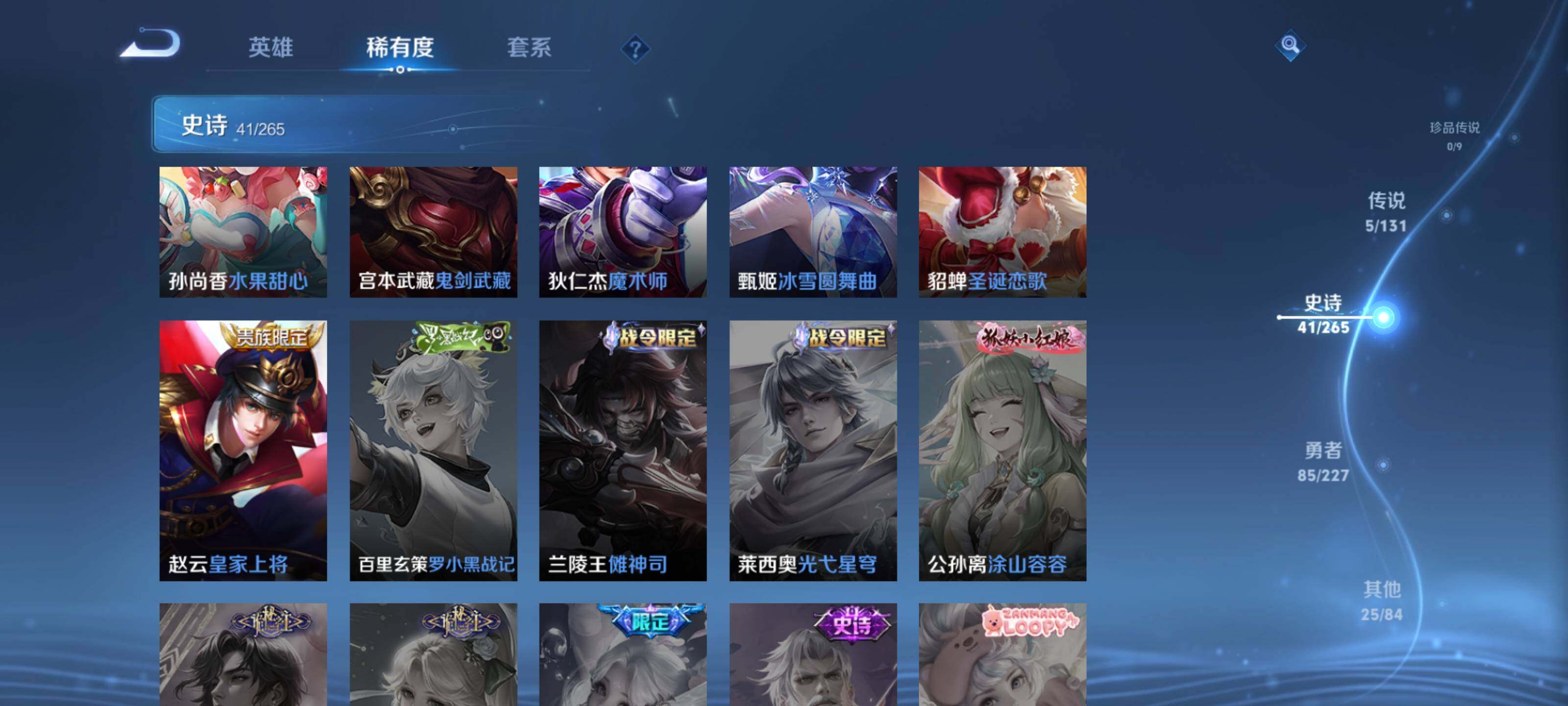 贵族7/皮肤156/传说5/史诗41/英雄126