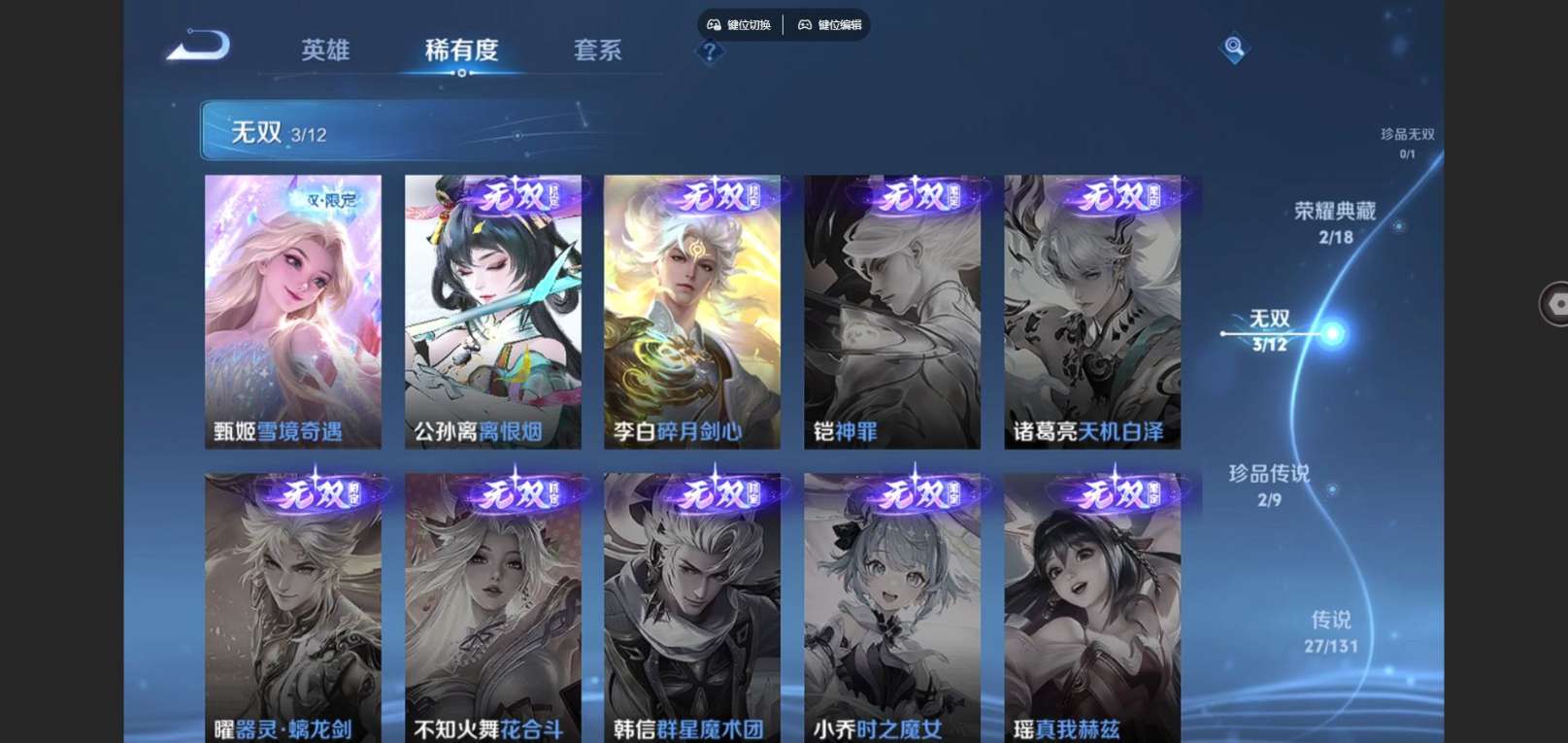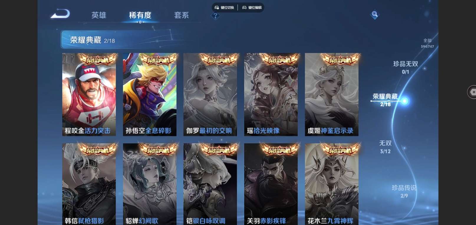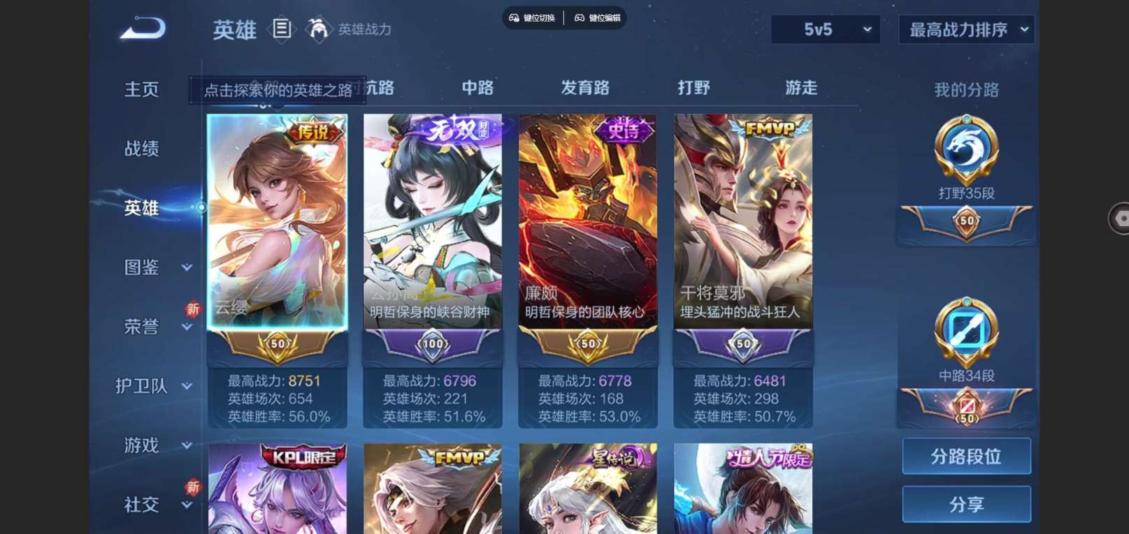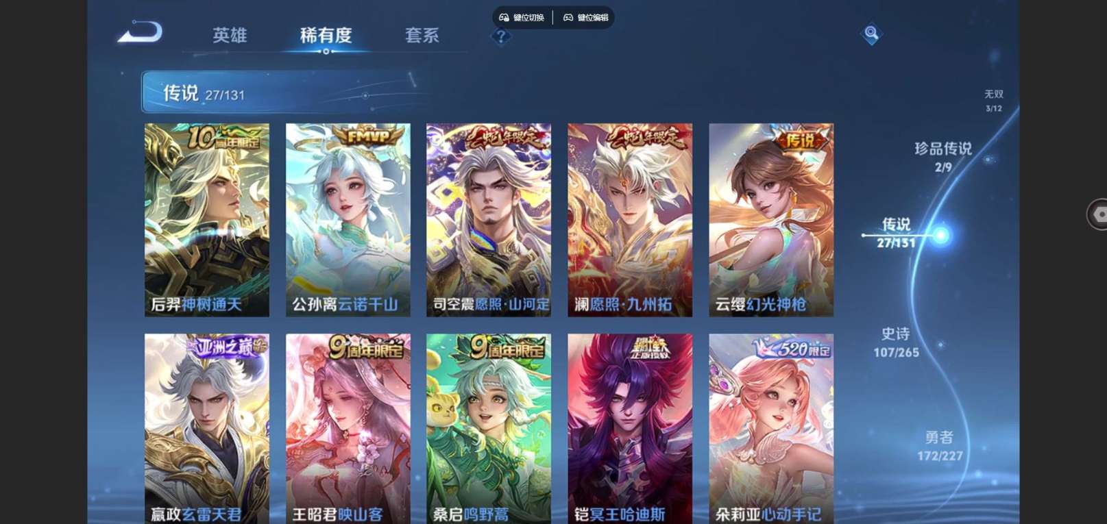125英雄-394皮肤--V9-2典藏3无双2珍品传说27传说 打野35段 中路34段 金标云缨 金
