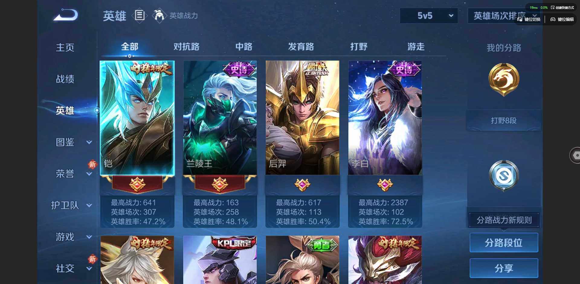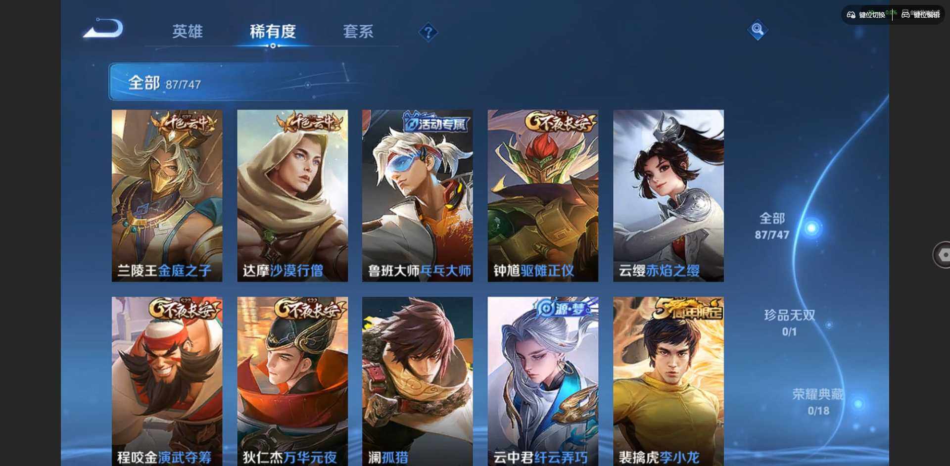 实名: 可修改 贵族等级: V6 英雄数: 101 皮肤数: 87 传说皮: