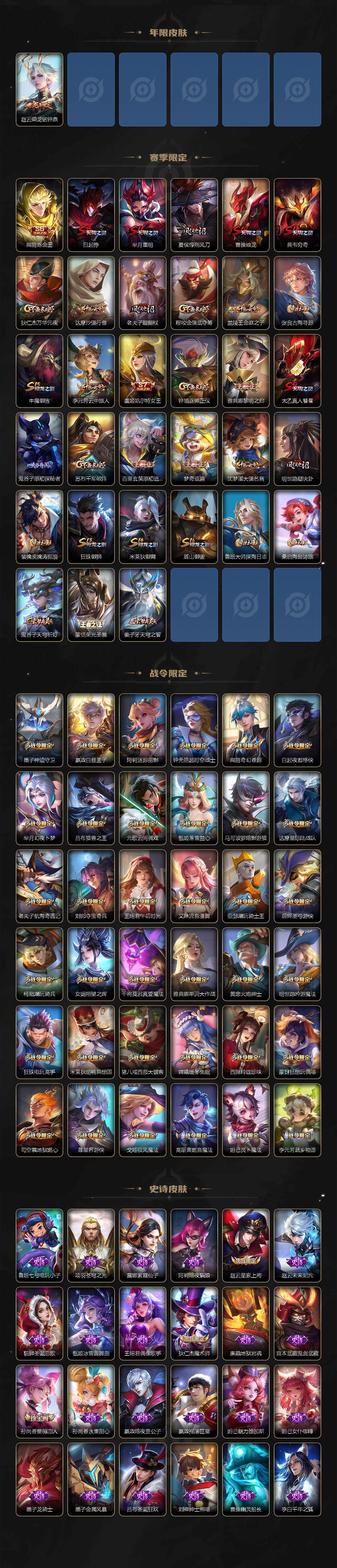 【传说皮肤】:后羿神树通天,孙尚香乘龙问璇玑,孙策乘龙淬吴钩,赵云乘龙铭钟鼎,上官婉儿妄想