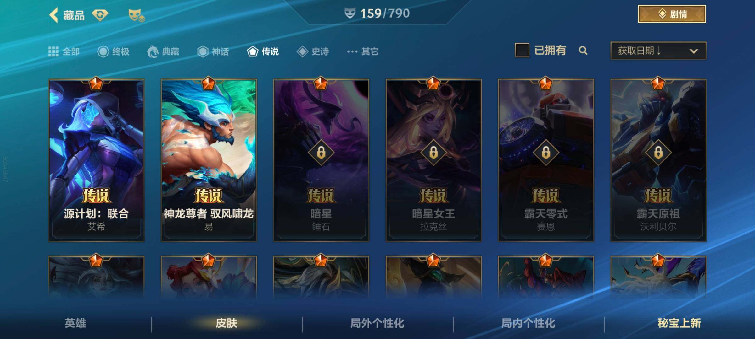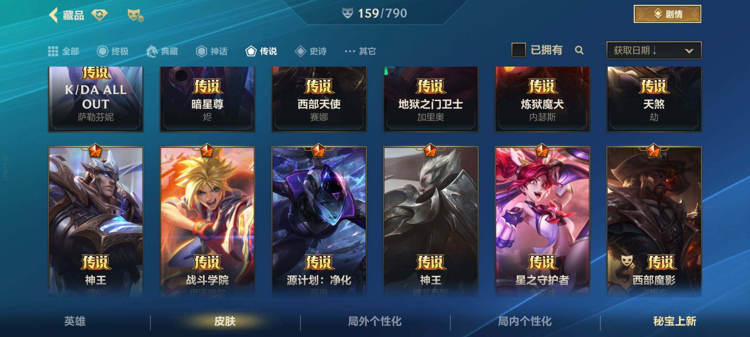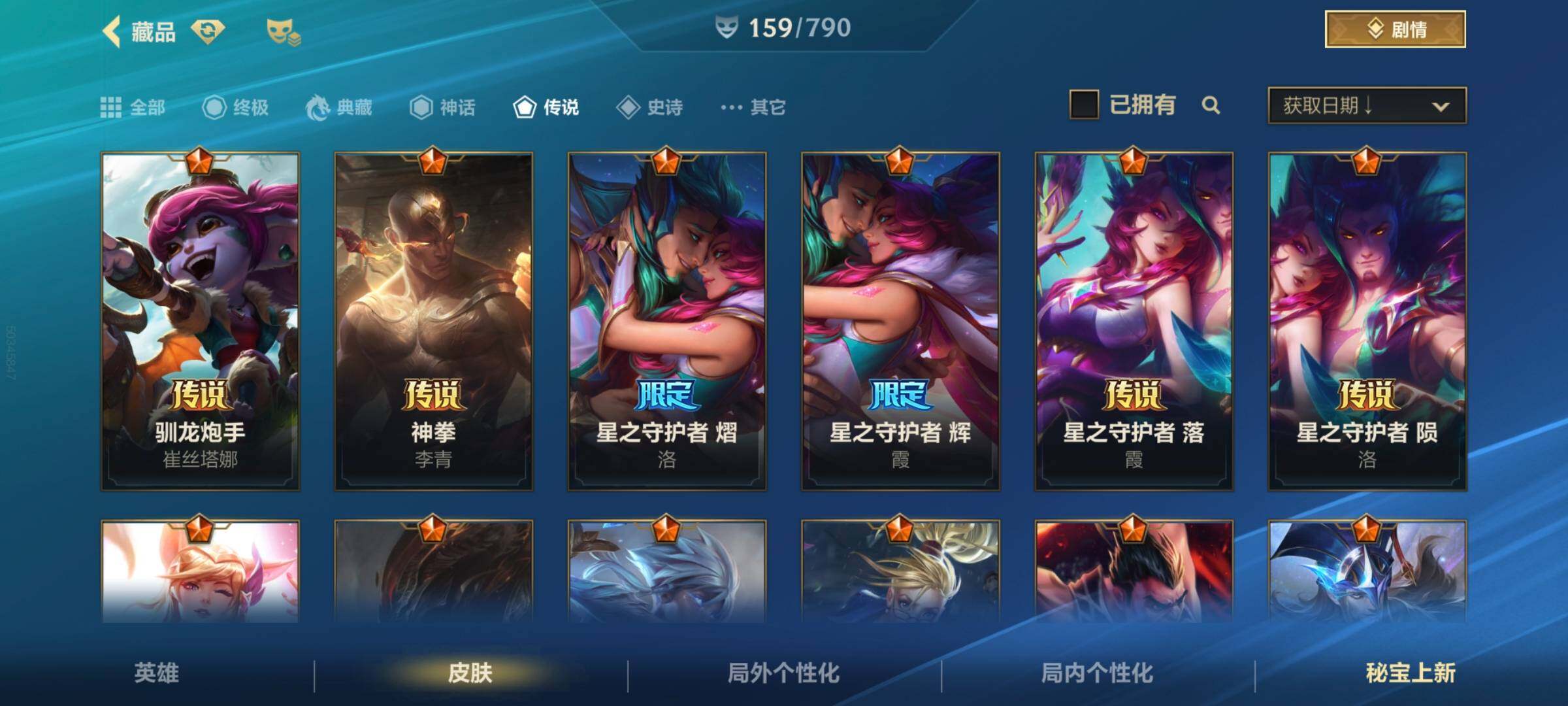 159皮肤32传说!龙的传人李青星守霞洛灌篮高手天煞劫神王盖伦洛手,神王 盖伦,星之守护者 阿狸,天煞 劫,星之守护者 辉 霞,星之守护者 落 霞,星之守护者 陨 洛,星之守护者 熠 洛,女主播 迦娜,源计划:联合 艾希,西部天使 艾希,黎明使者 锐雯,战斗学院 伊泽瑞尔,地狱之门卫士 加里奥,西部天使 赛娜,源计划:毁灭 派克,神王 德莱厄斯,炼狱魔犬 内瑟斯,暗星尊 烬,光明哨兵 薇恩,星域游侠 崔斯特,日蚀骑士 蕾欧娜,月蚀骑士 蕾欧娜