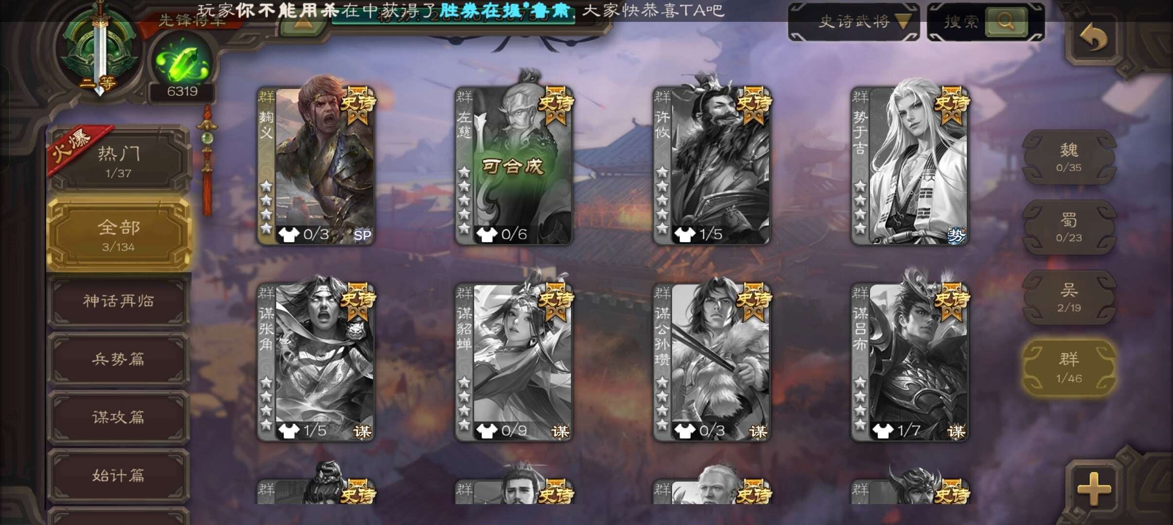 史诗武将数量: