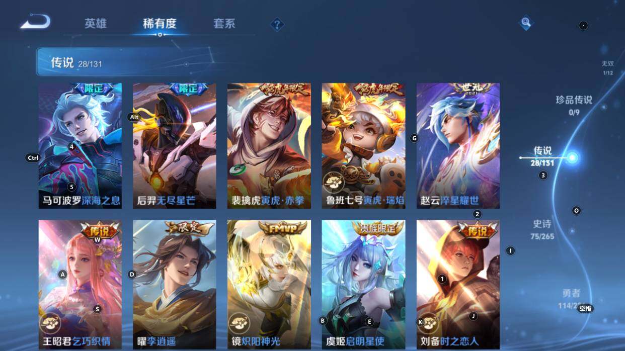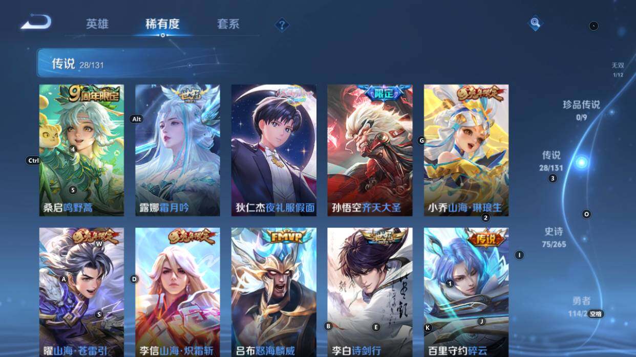 【传说皮肤】:桑启鸣野蒿,露娜霜月吟,狄仁杰夜礼服假面,孙悟空齐天大圣,小乔山海琳琅生,曜山海苍雷引,李信山海炽霜斩,吕布怒海麟威,李白诗剑行,