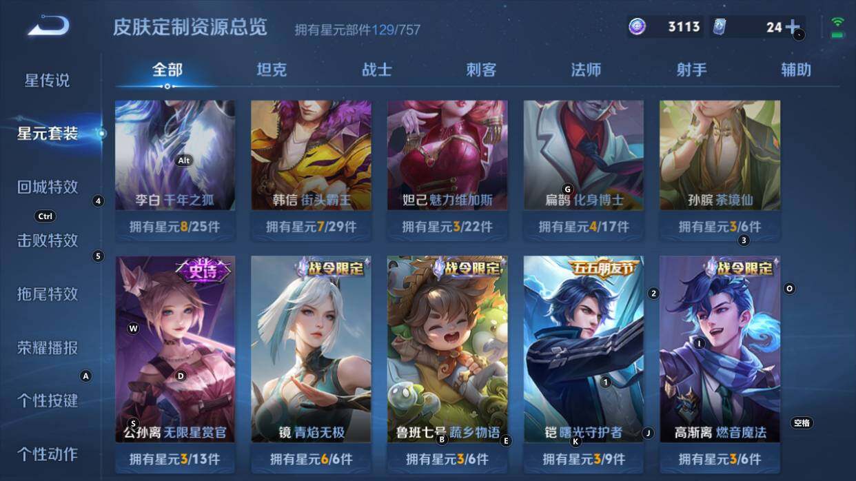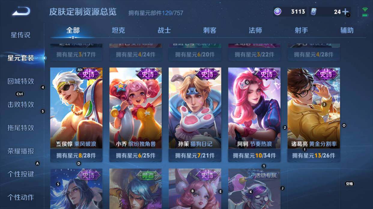 3天幕,2星元,金标猴子,金标暃,12按键,打野42段,发育29段,对抗20段,星币3113 苹果Q-V8-126英雄-290皮肤--1无双--28传说-75史诗