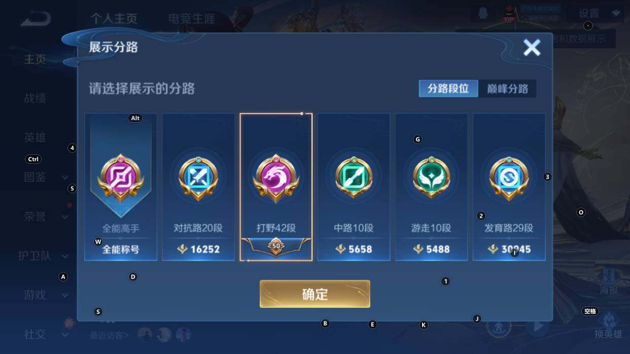3天幕,2星元,金标猴子,金标暃,12按键,打野42段,发育29段,对抗20段