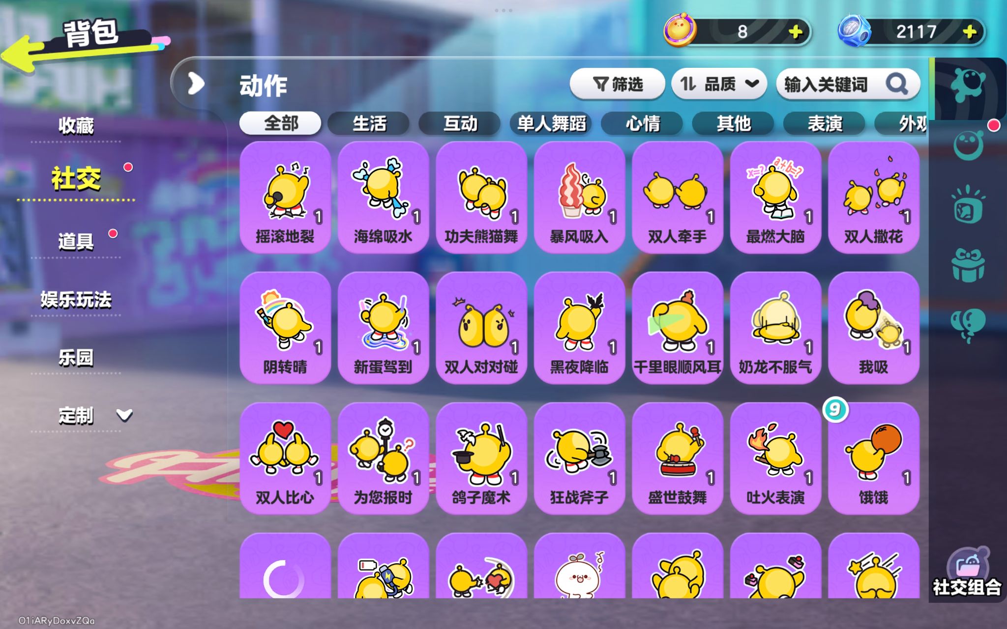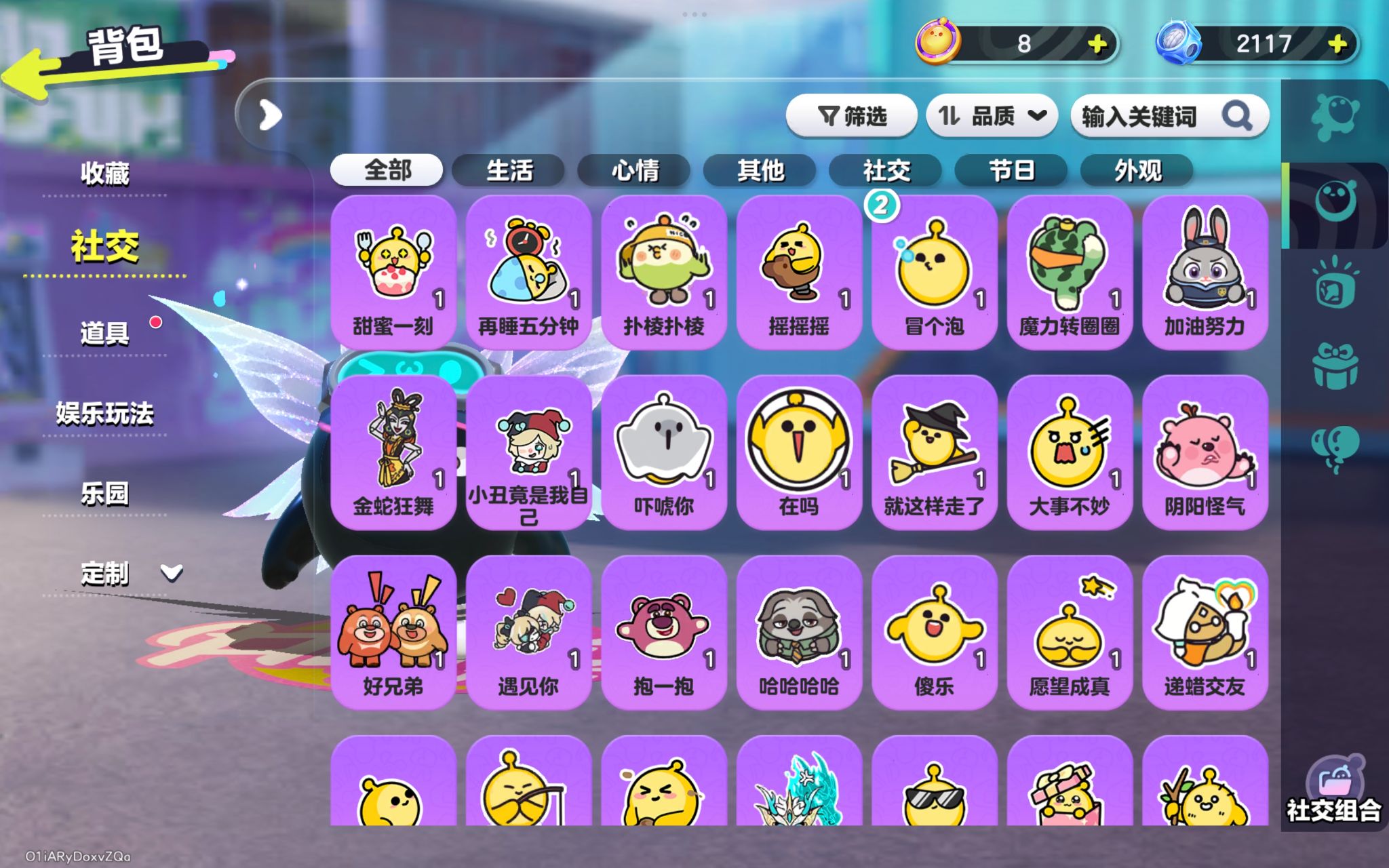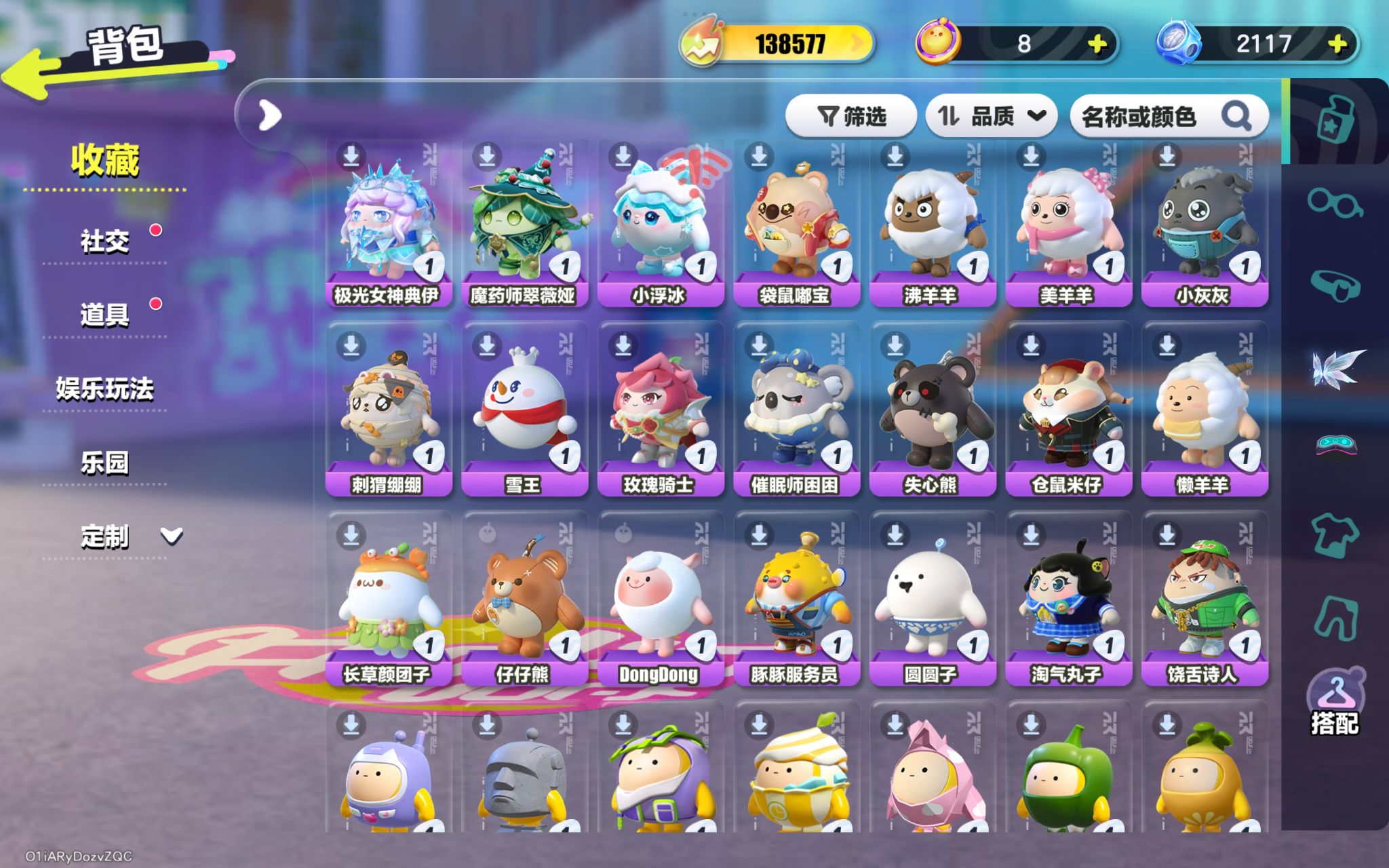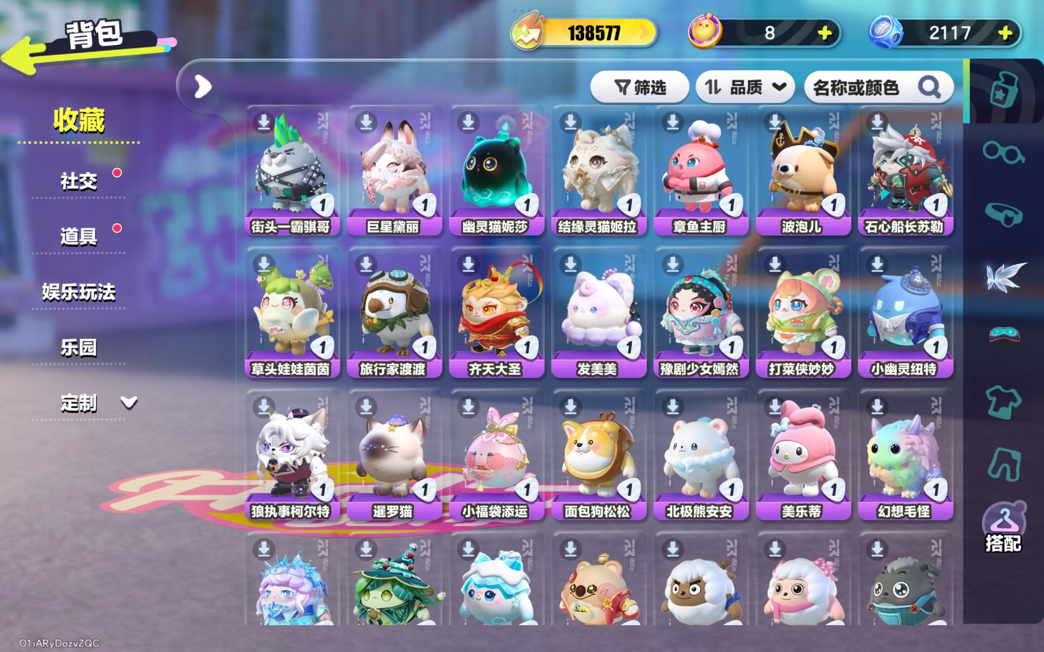 紫色套装:双面教师林野,饶舌小子,淘气妹妹,元气丸子,暴龙化石斯坦,莓莓DongDong,冷面千金竹月,海盐布丁嘟嘟,柠檬汽水啵啵,甜甜圈诺奇,海绵宝宝蛋,木偶鸭松果,控球手迅风,布偶米米,超燃蛋小红,超燃蛋小绿,超燃蛋小粉,超燃蛋小黄,劝学小子,大