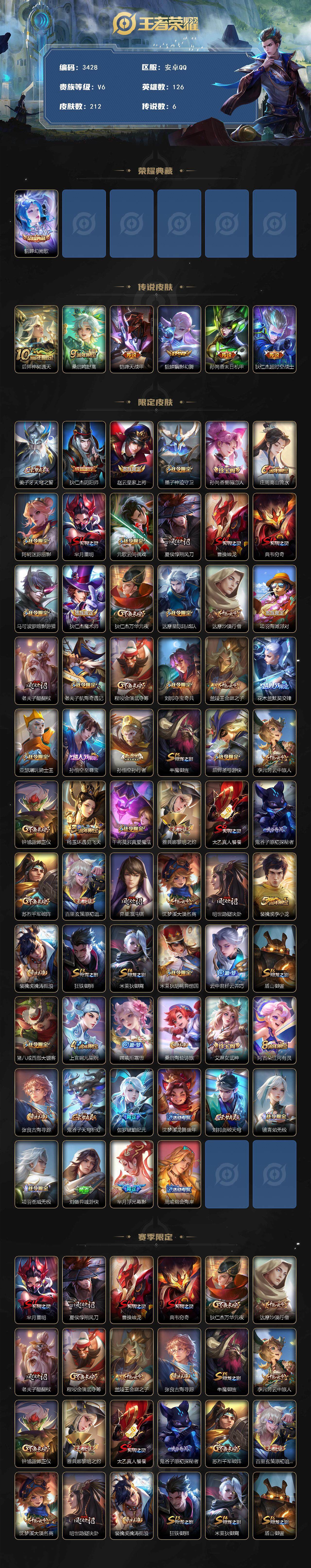 安卓Q-V1-最强王者段位-126英雄-212皮肤-1典藏皮肤-6传说-57史诗