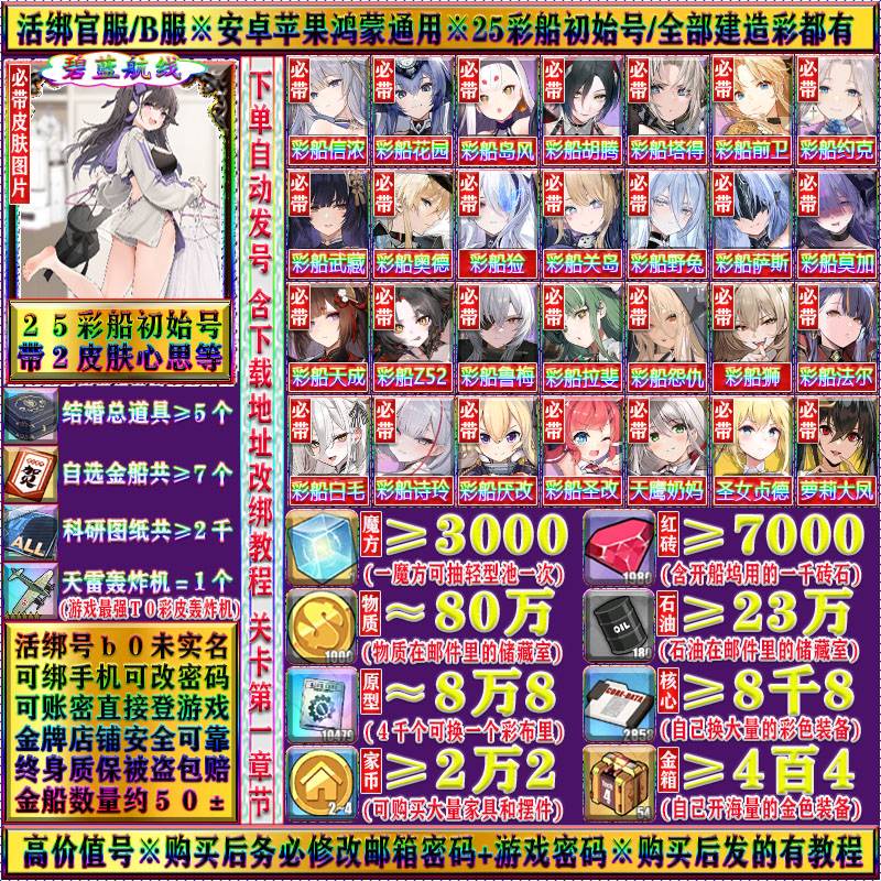 碧蓝航线b服25彩船怨仇Z52狮鳐关岛前卫芒猃活绑成品初始号自抽号