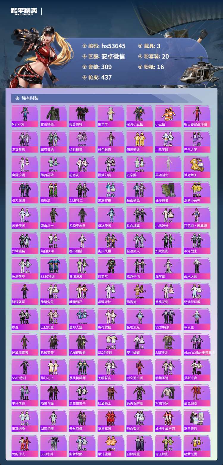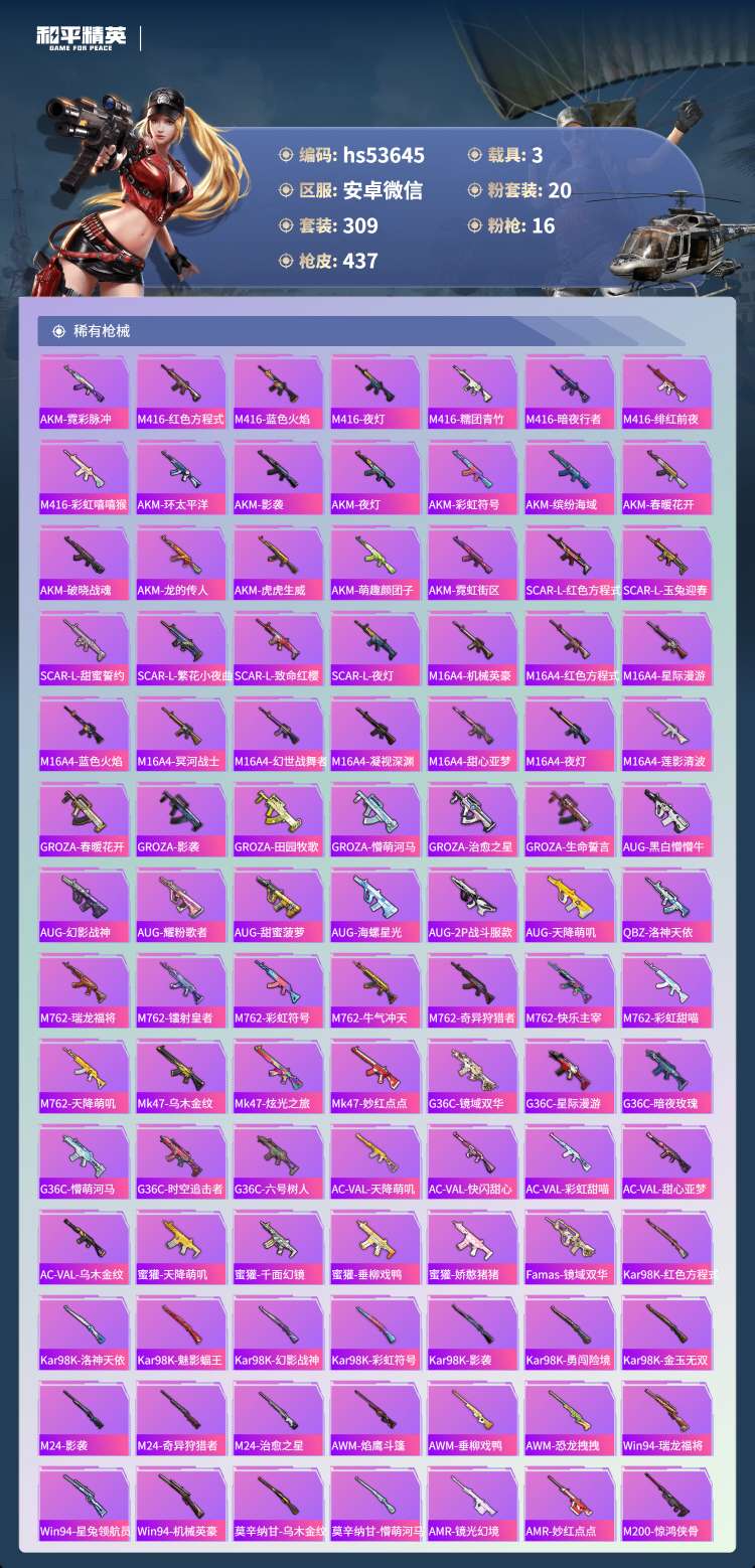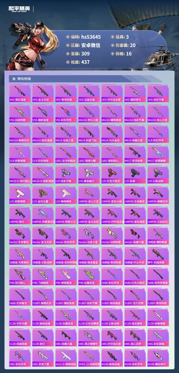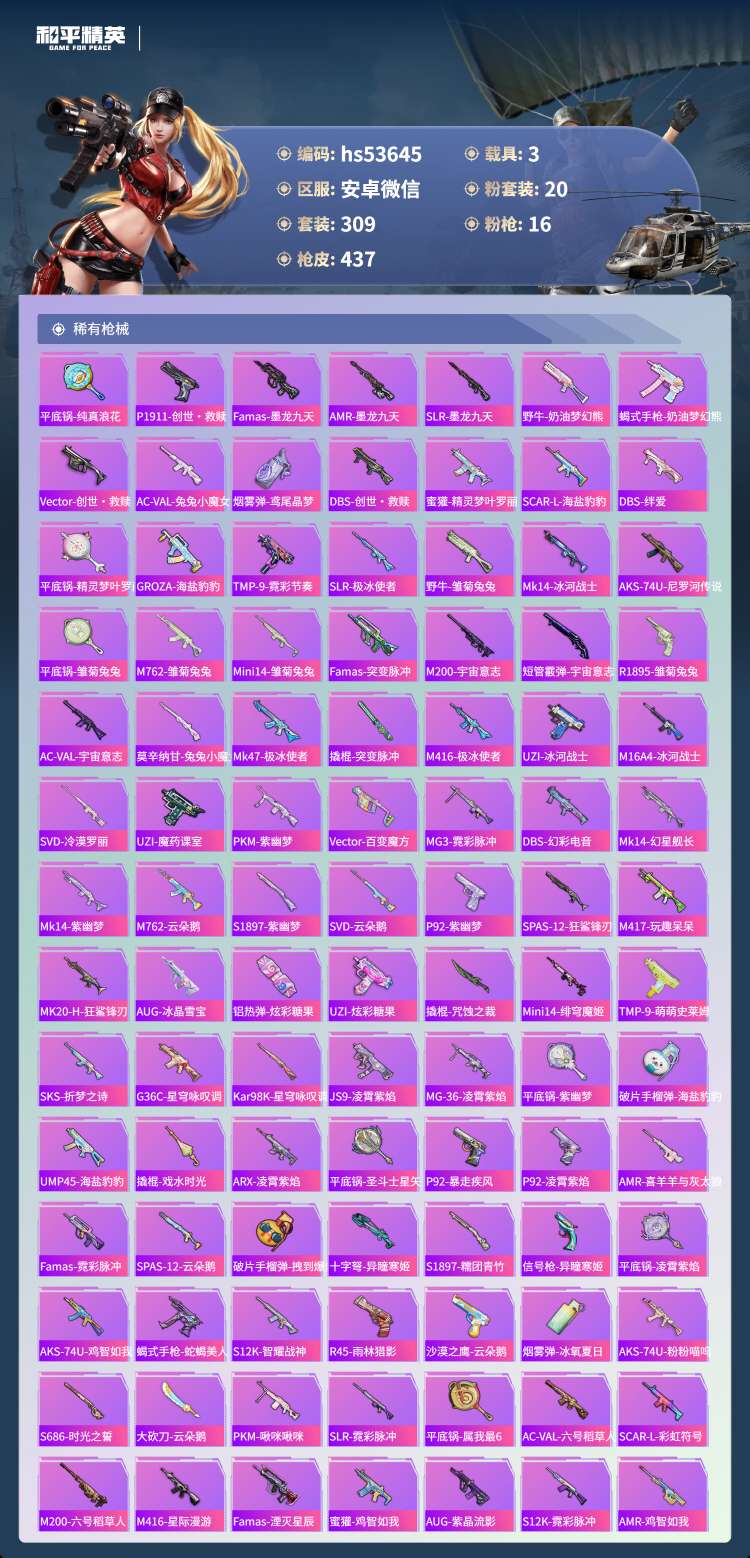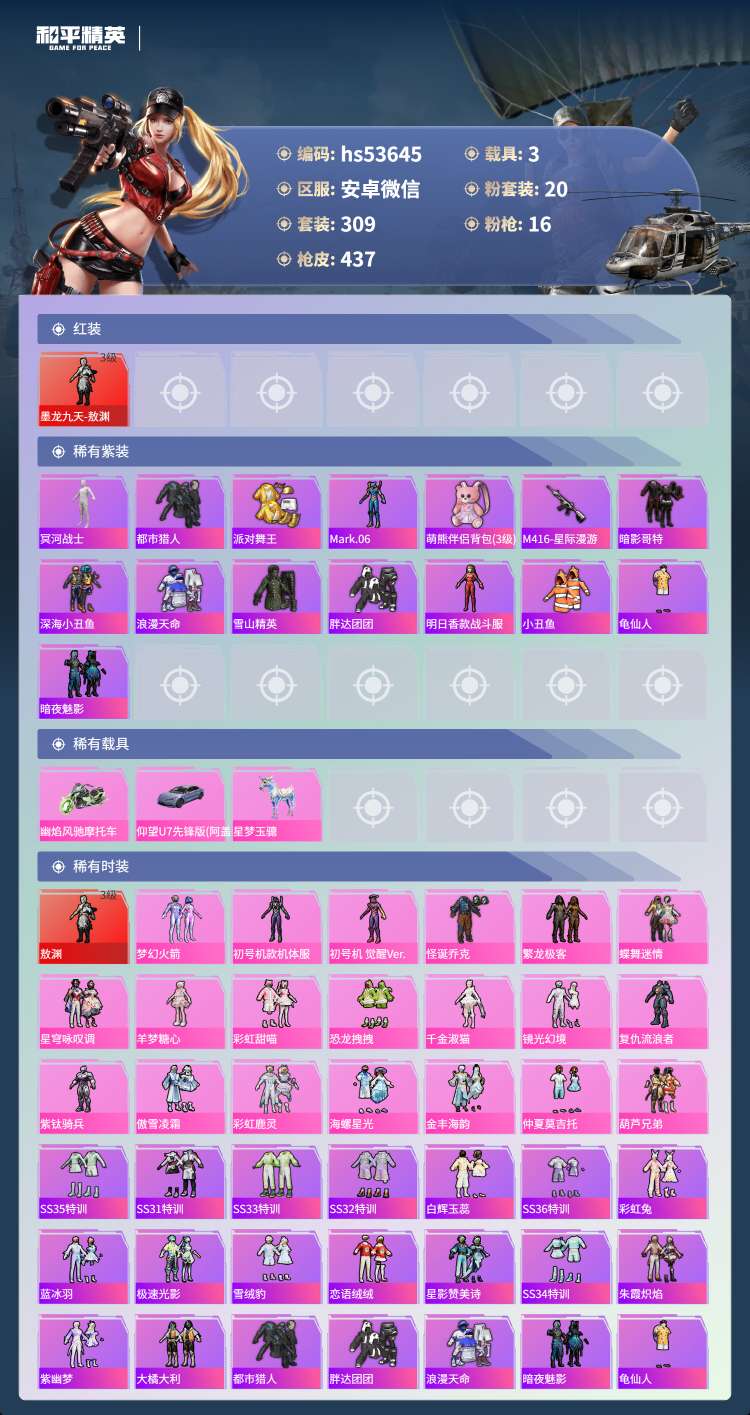 hs53645 安卓v-19王牌印记-有战神框-1红装-20粉装-16特效枪-3载具-159173