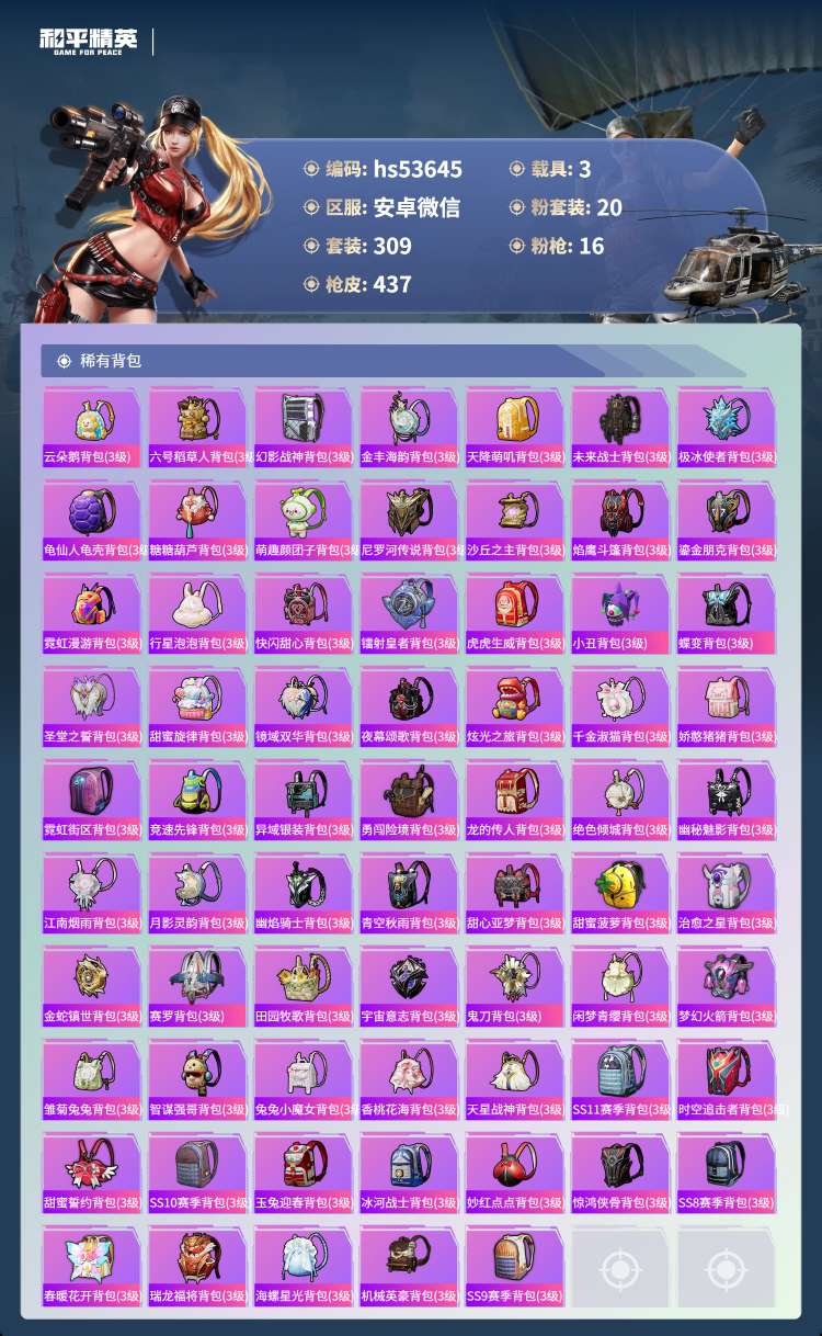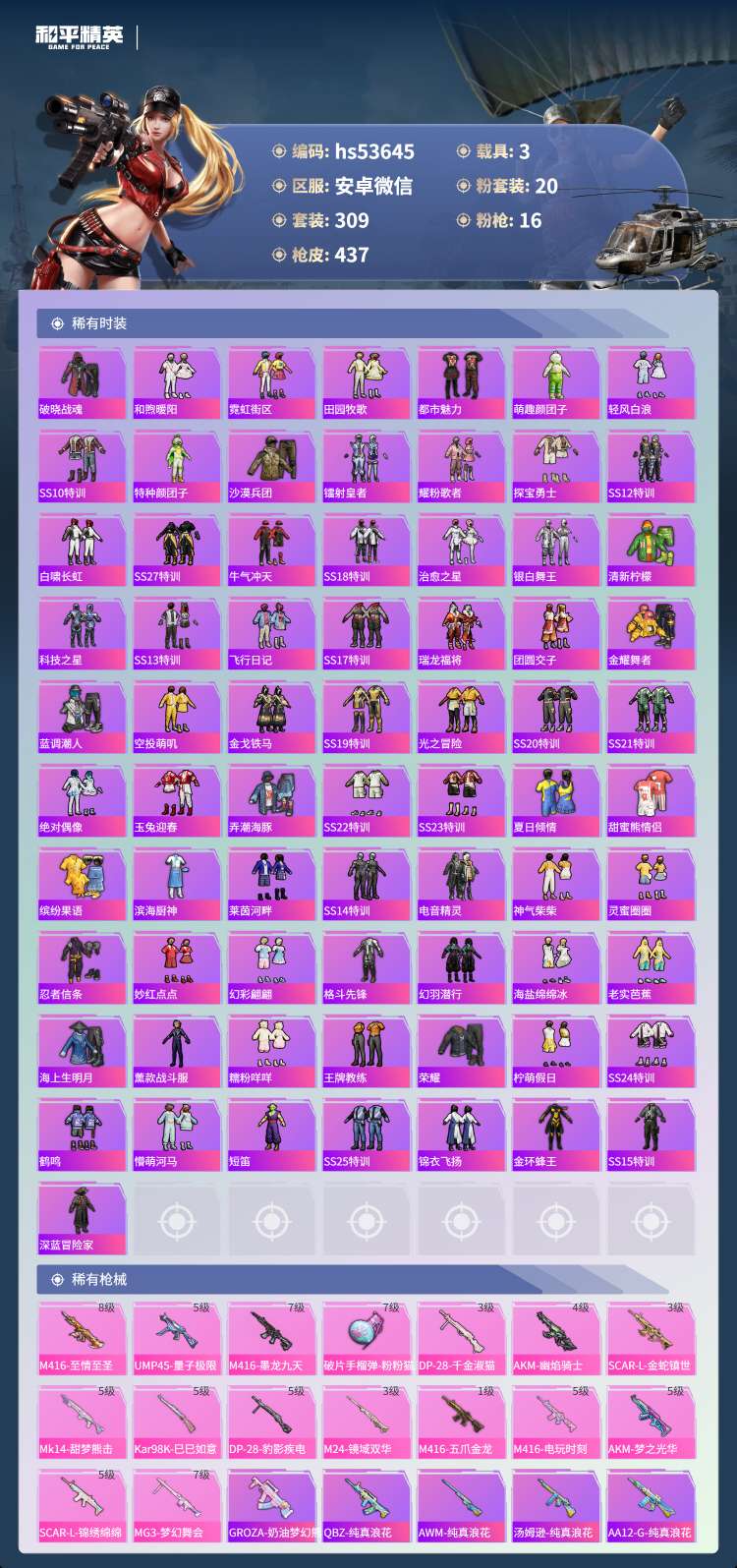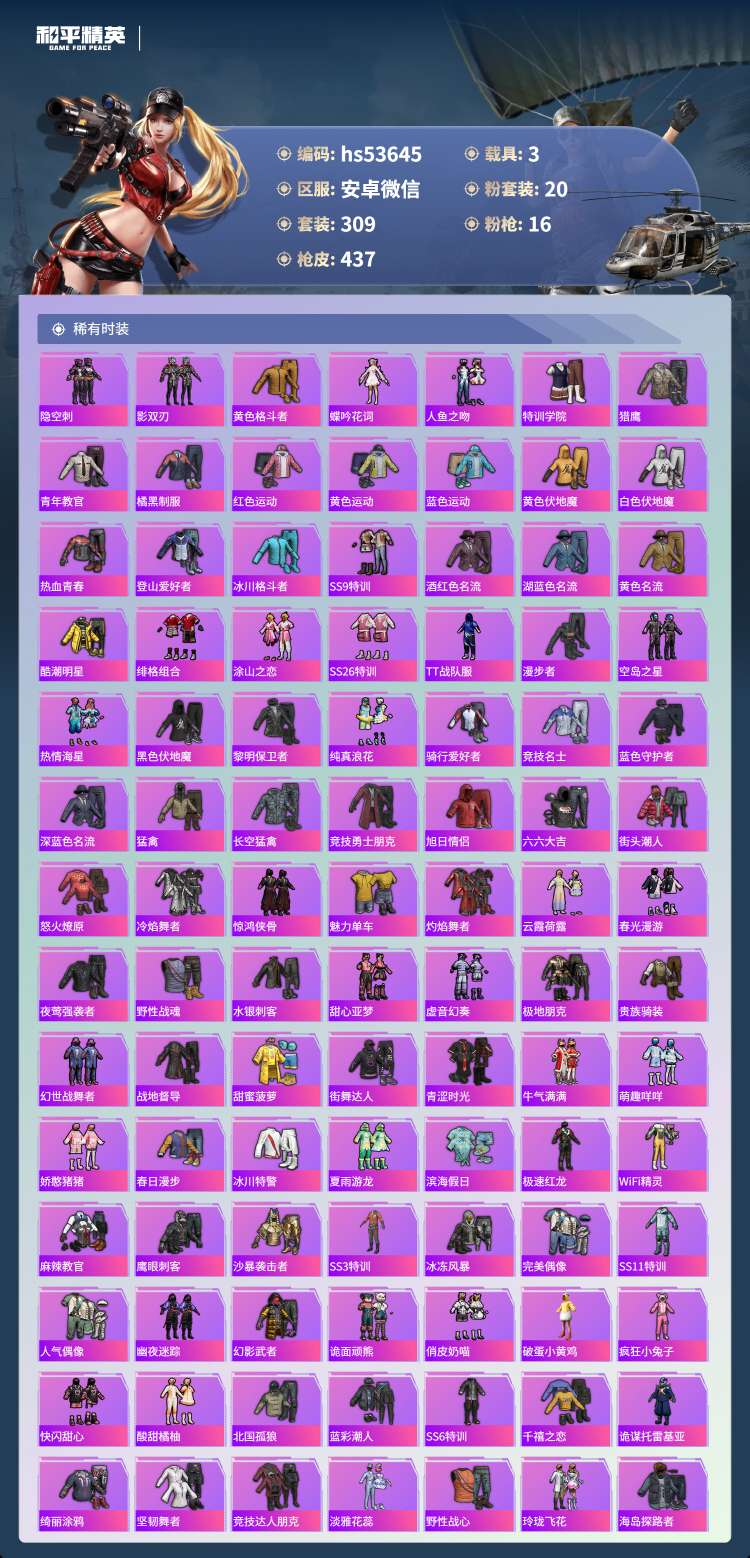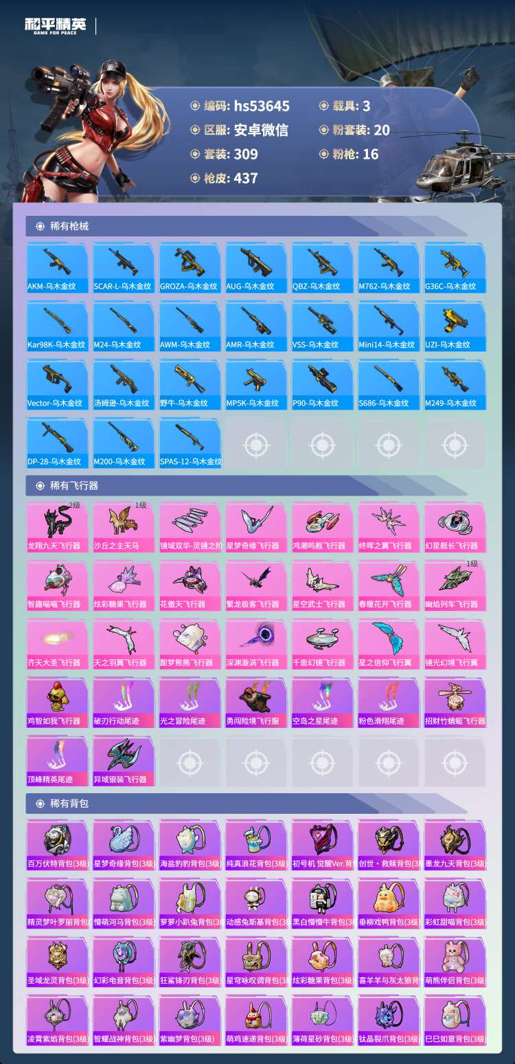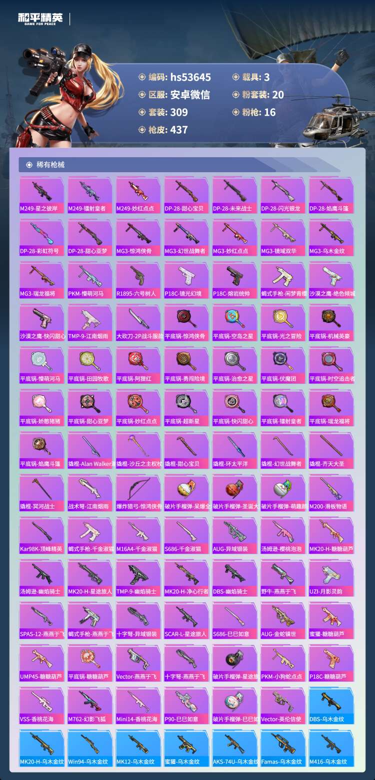 hs53645 安卓v-19王牌印记-有战神框-1红装-20粉装-16特效枪-3载具-159173