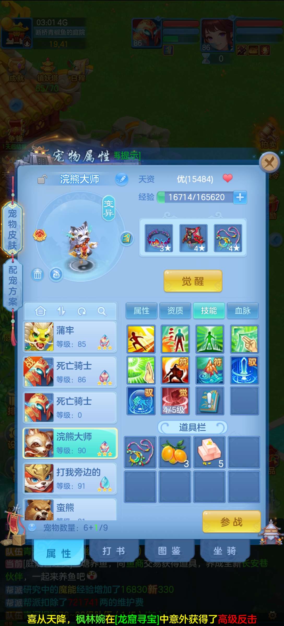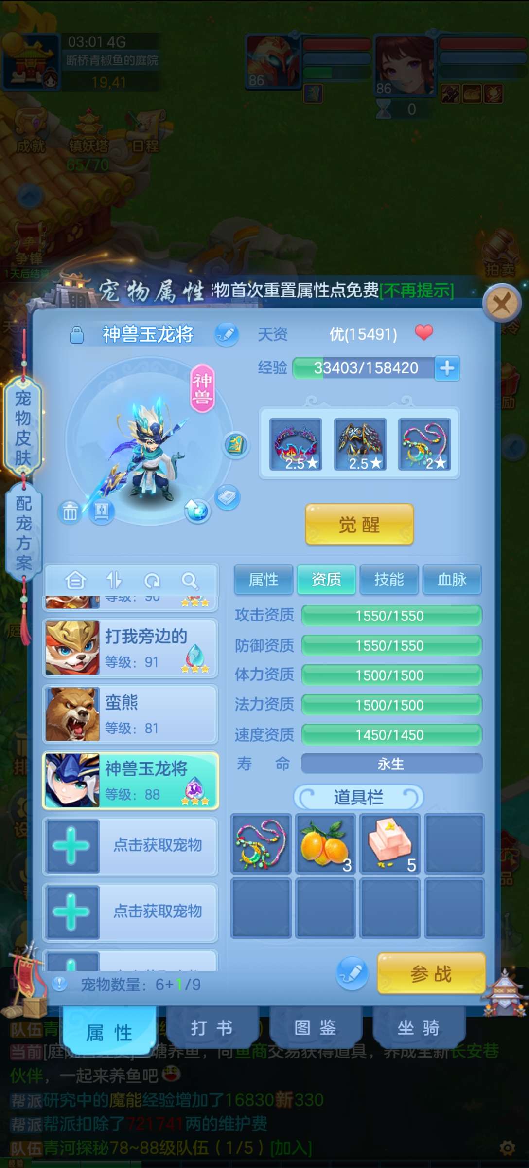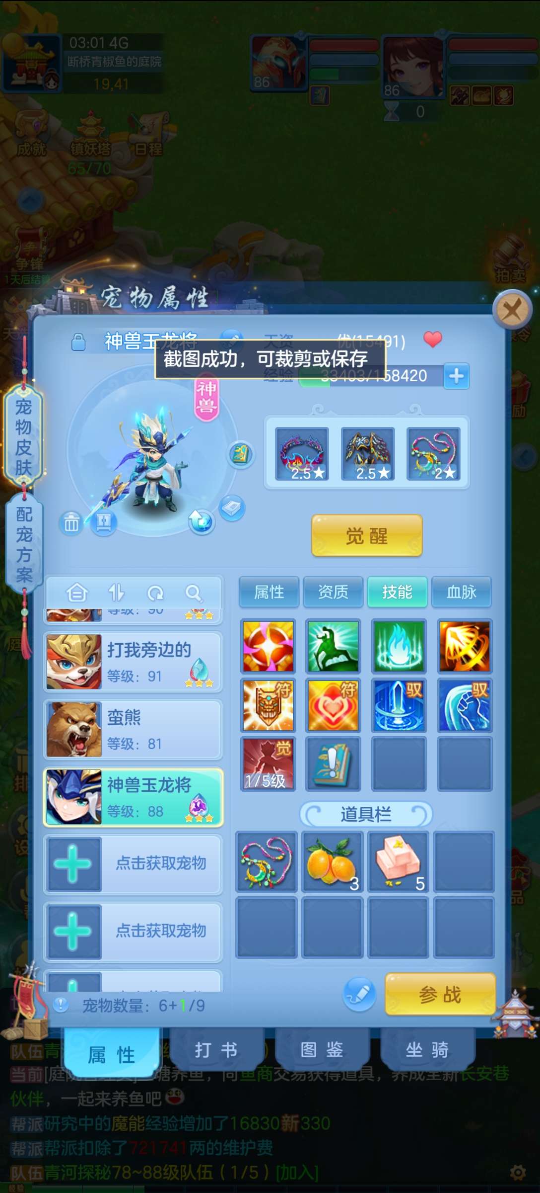 有玉龙,内丹差15碎片,三个五技能宠物,上手可玩,日常最高难度无压力