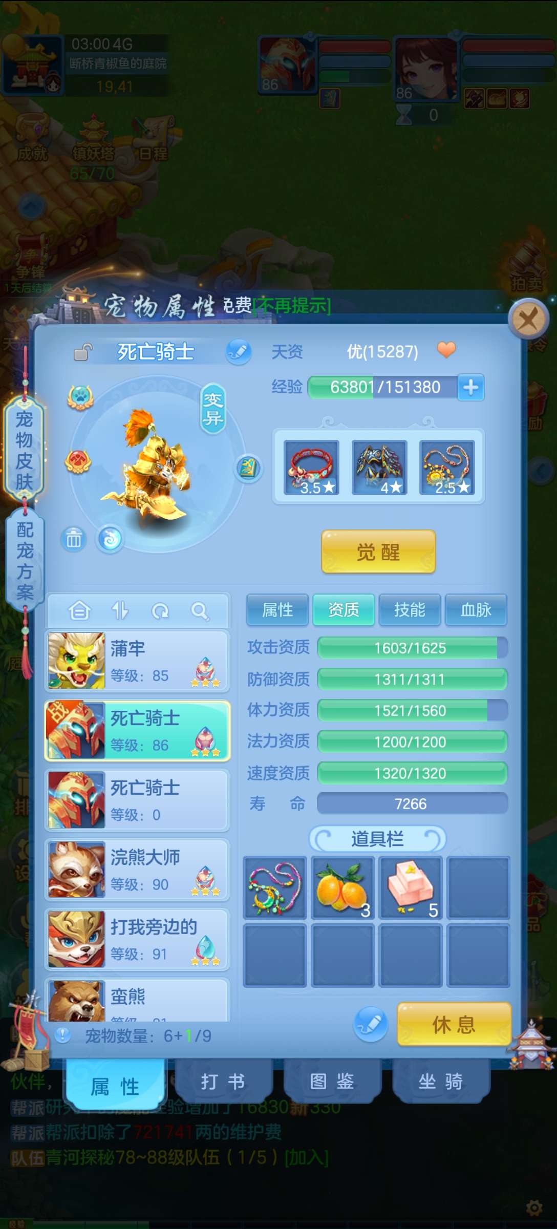 全勤神兽天策玉龙内丹38碎片10神兽灵各种五技能宝宝,基金已开,宝宝齐全,有五技能死骑胚子,死骑专属