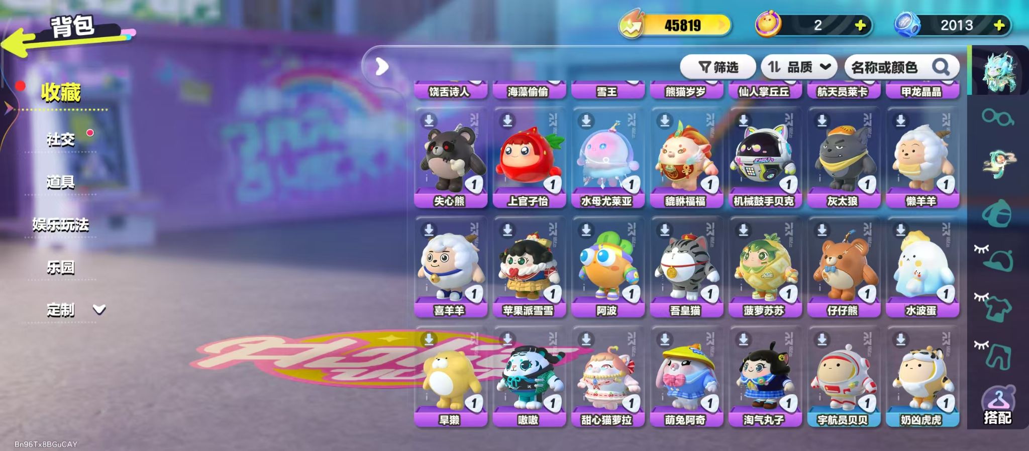 八音盒温妮,仓鼠米仔,涂山浅浅,吉他手卡萝,抹茶游侠,巧脆骑士,胡桃可露丽,哞哞,圆圆子,狗蛋阿甜,饶舌诗人,海藻偷偷,雪王,熊猫岁岁,仙人掌丘丘,航天员莱卡,甲龙晶晶,失心熊,上官子怡,水母尤莱亚,貔貅福福,机械鼓手贝克,灰太狼,懒羊羊,喜羊羊,苹果派雪雪,阿波,吾皇猫,菠萝苏苏,仔仔熊,水波蛋,旱獭,嗷嗷,甜心猫萝拉,萌兔阿奇,淘气丸子