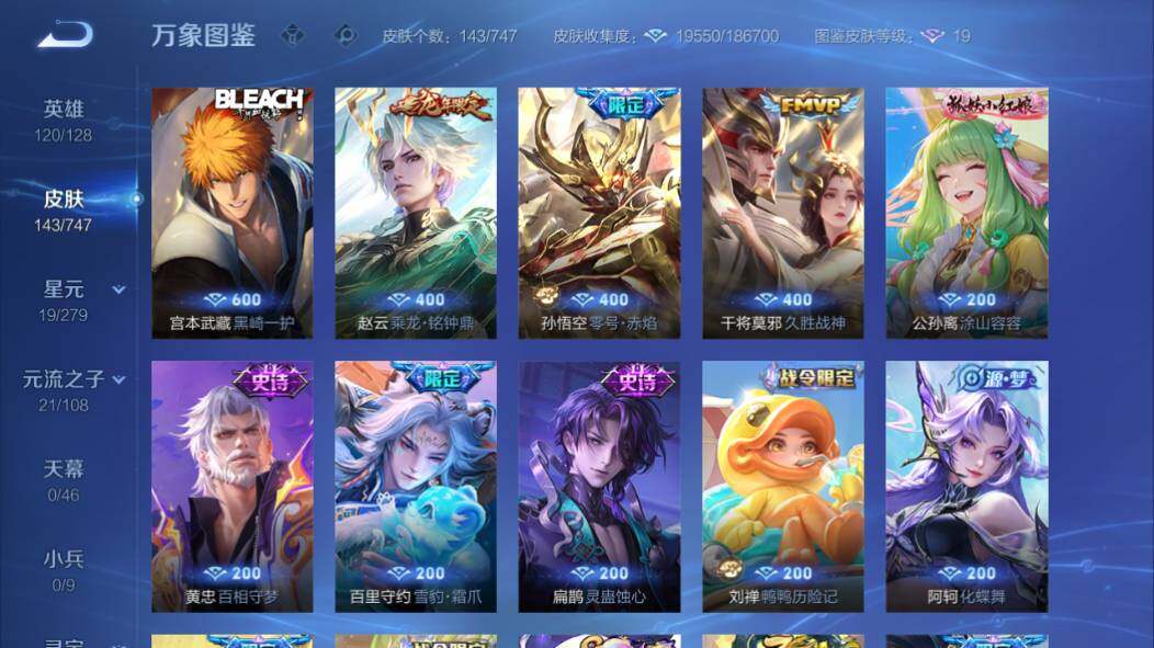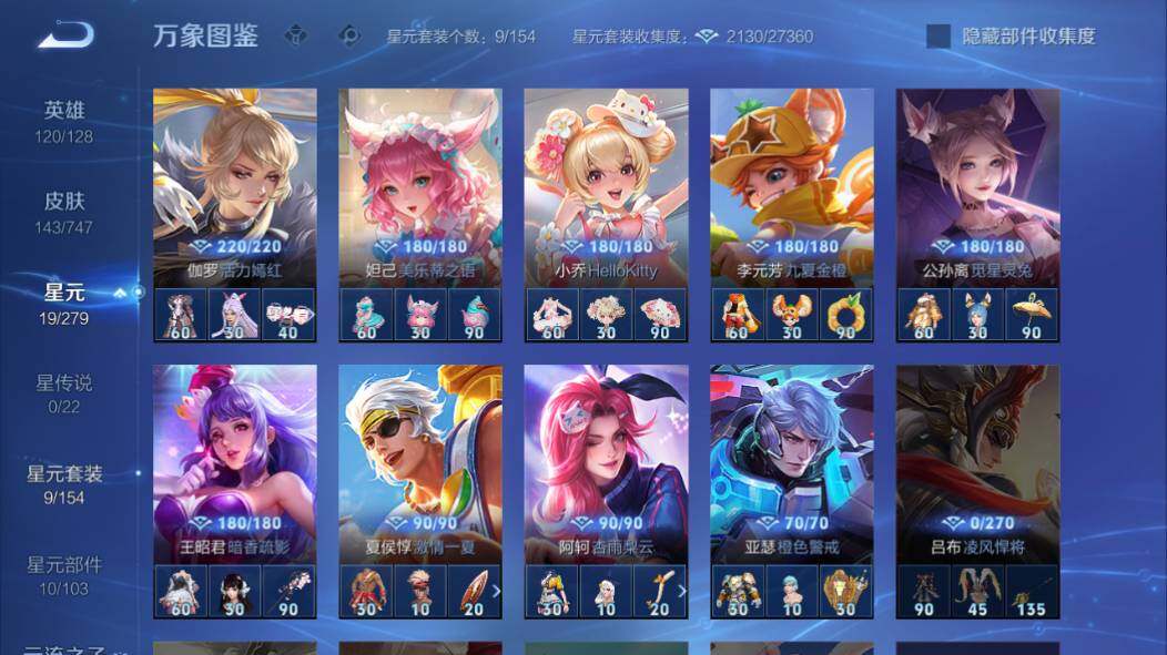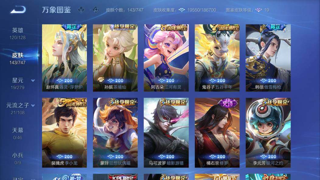 安卓Q-V6-120英雄-143皮肤-1珍品传说-3传说-48史诗-紫星币32